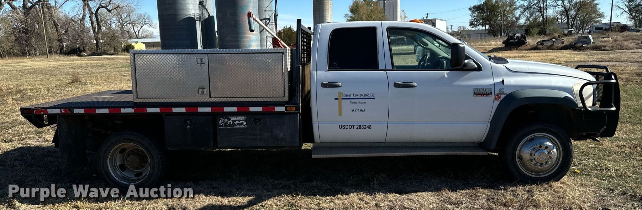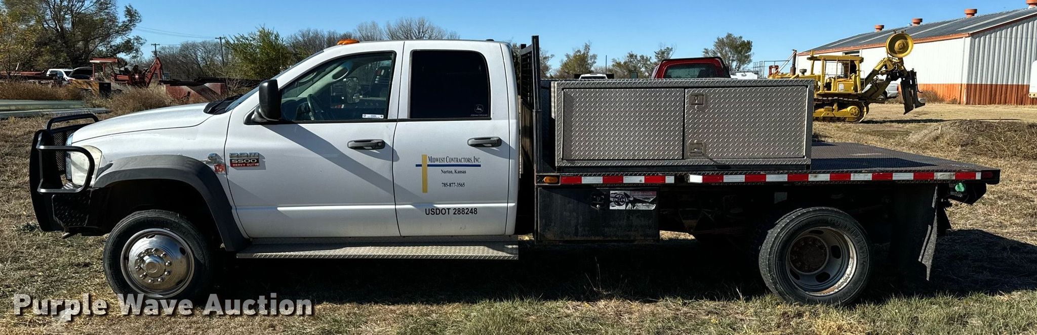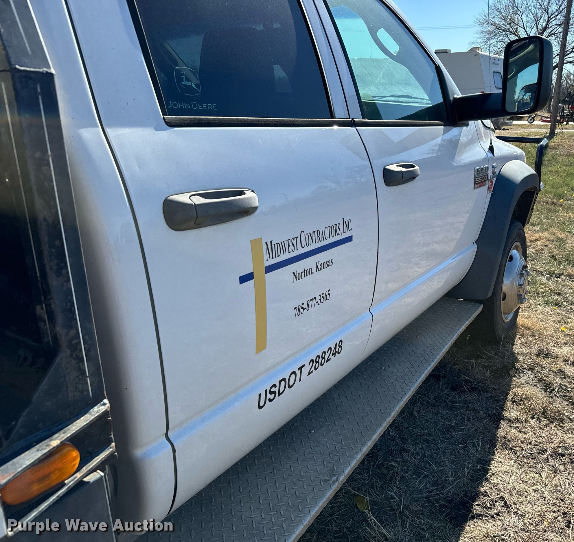 Purple Wave is selling a used Flat Bed Truck in Kansas. This item is a 2008 Dodge Ram 5500HD Quad Cab flatbed truck with the following: Miles: 91,335 on odometer, VIN: 3D6WD78A38G210307