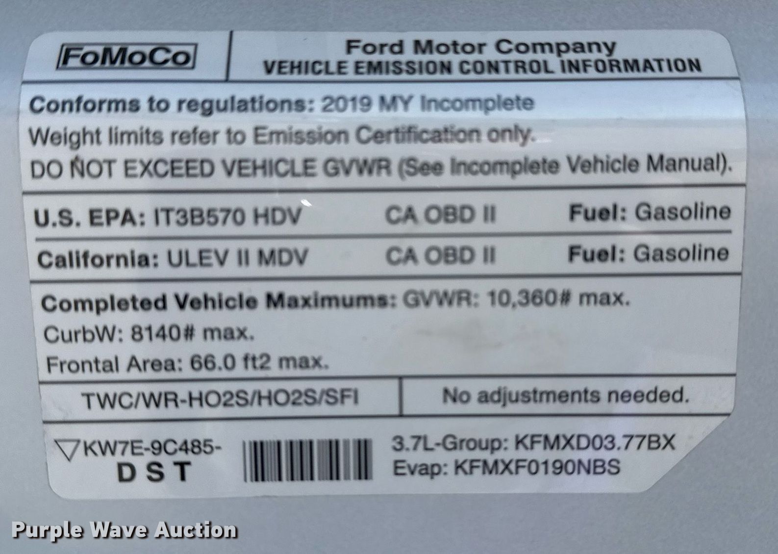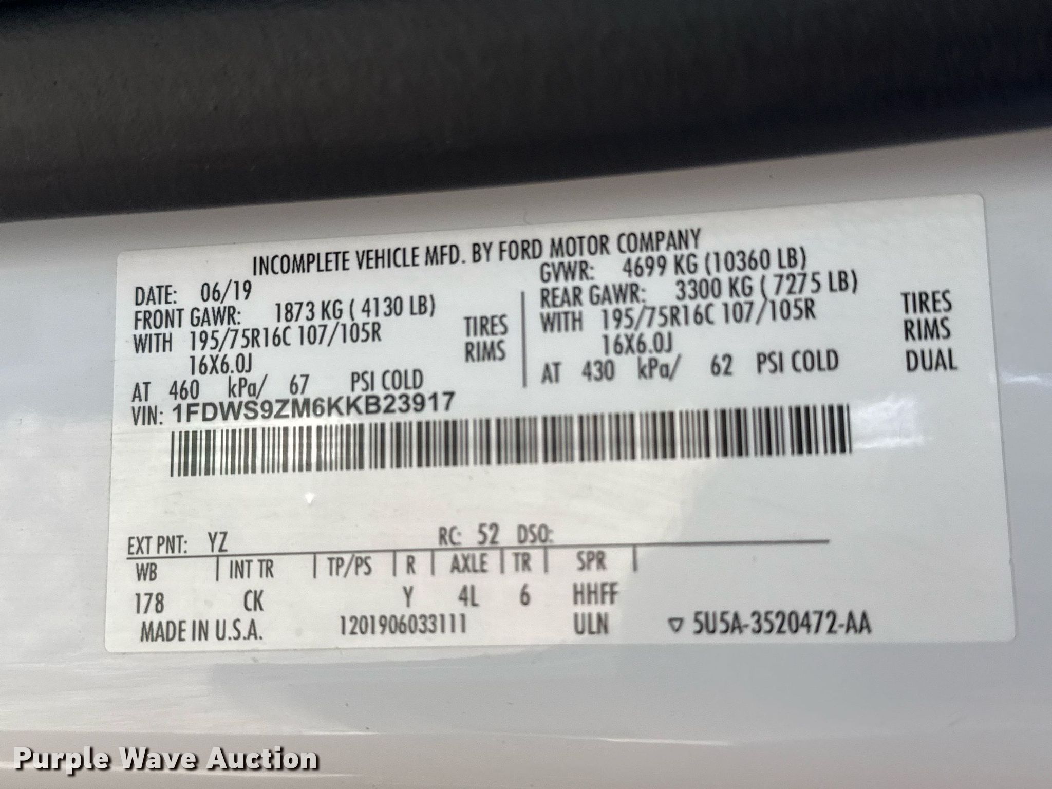 - VIN: 1FDWS9ZM6KKB23917