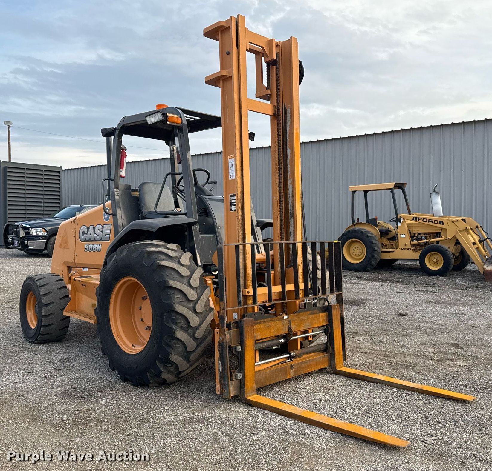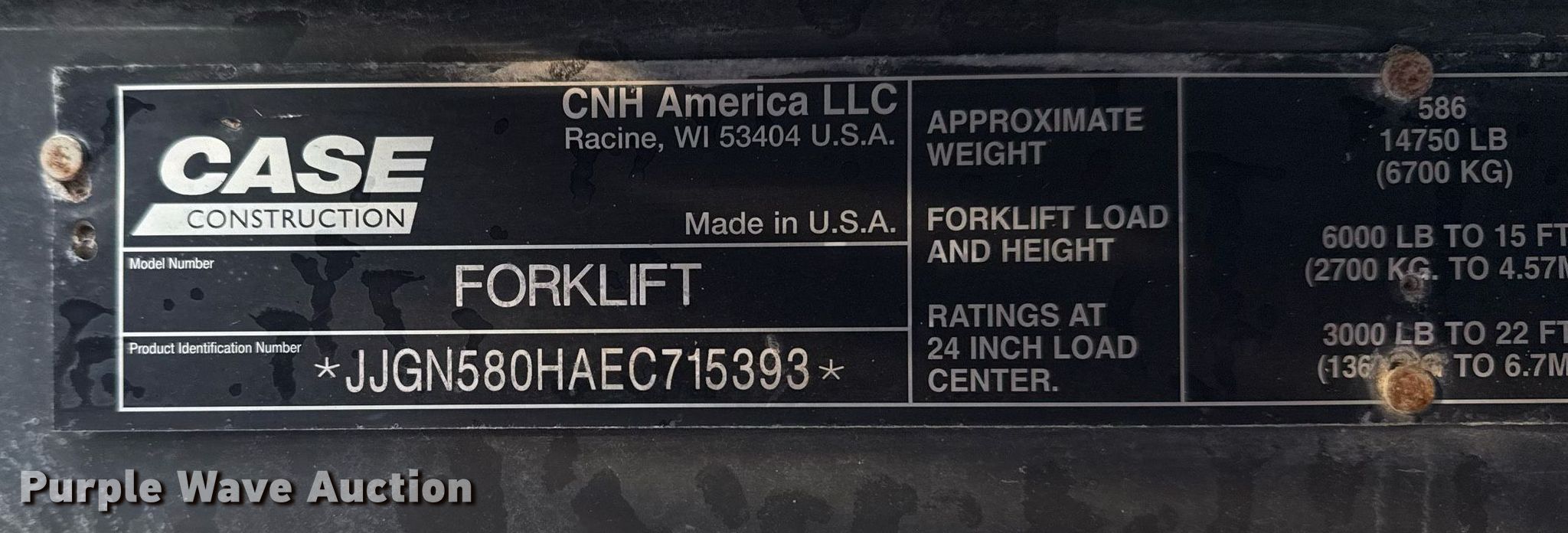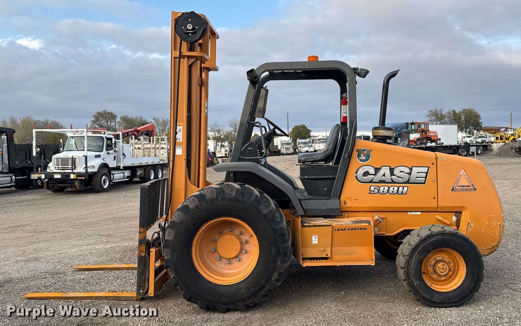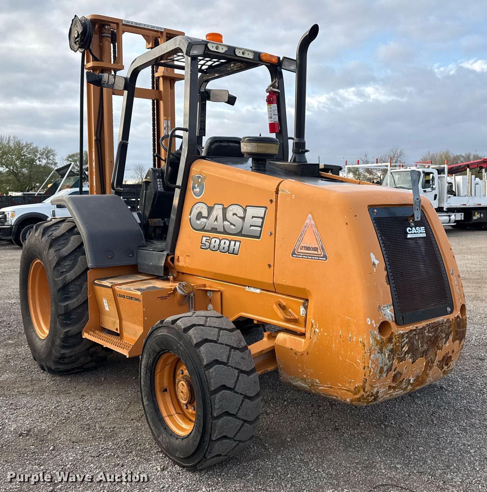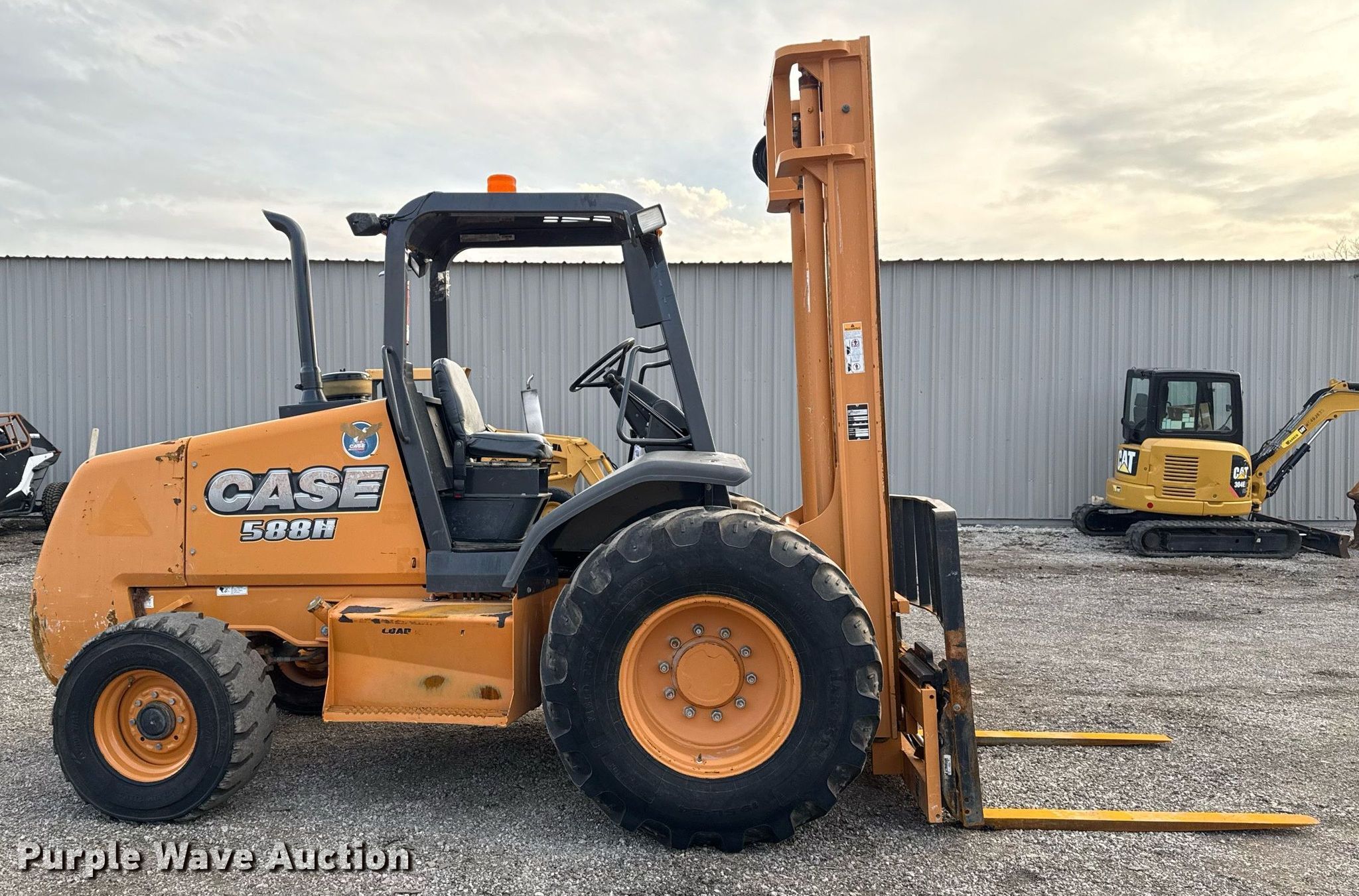 Purple Wave is selling a used Strt. Mast Rough Terr. Forklift in Oklahoma. This item is a 2014 Case 588H forklift with the following: Hours: 3,727 on meter, Serial: JJGN580HAEC715393