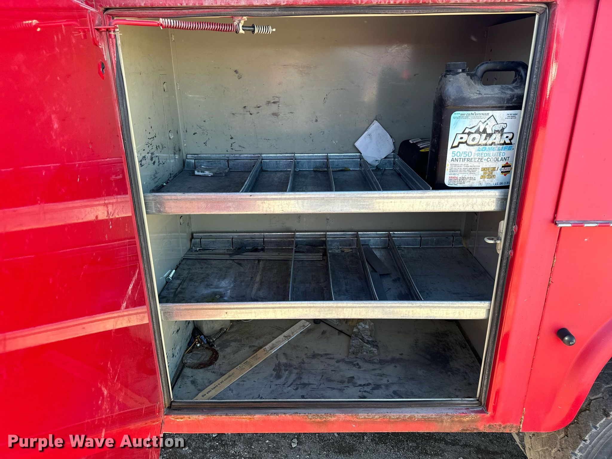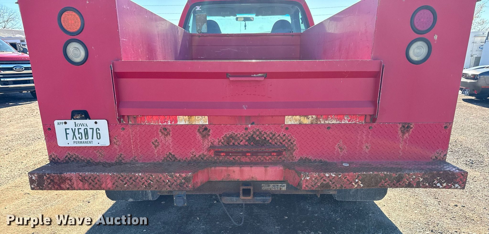 2002 Ford F550 utility / service truck. Miles: 165,585 on odometer, Hours: 6,317 on meter, VIN: 1FDAF56F62ED11798. Engine Displacement: 7.3L, Cylinders: 8, Fuel type: Diesel. Transmission Automatic. Interior AC, Heat. Features Utility bed Knaphide, 9' L x 94" W. Tires Size: 225/70R19.5. Iowa title. Title distribution may be delayed up to 14 days from verification of funds. Central Iowa Towing and Recovery. Ames, IA 50010