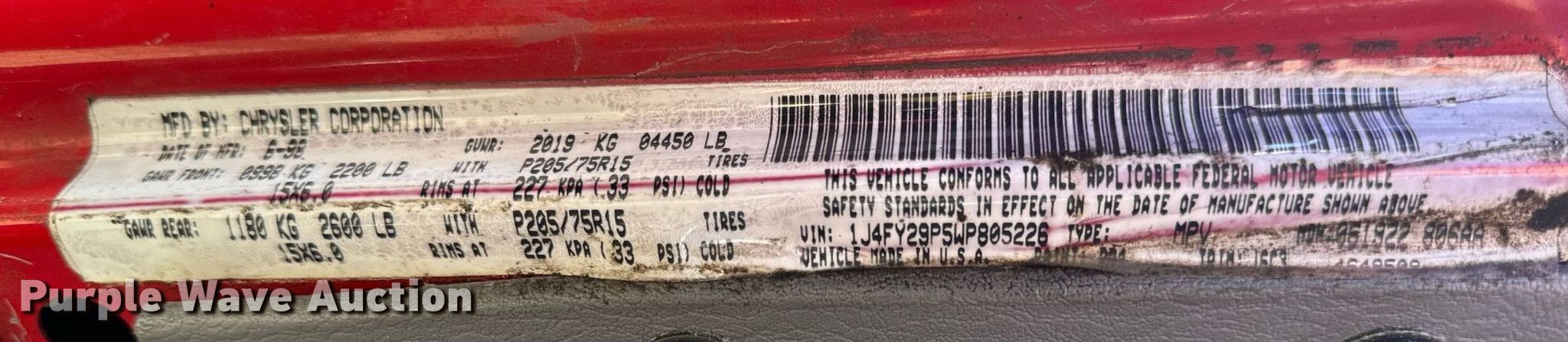 - VIN: 1J4FY29P5WP805226