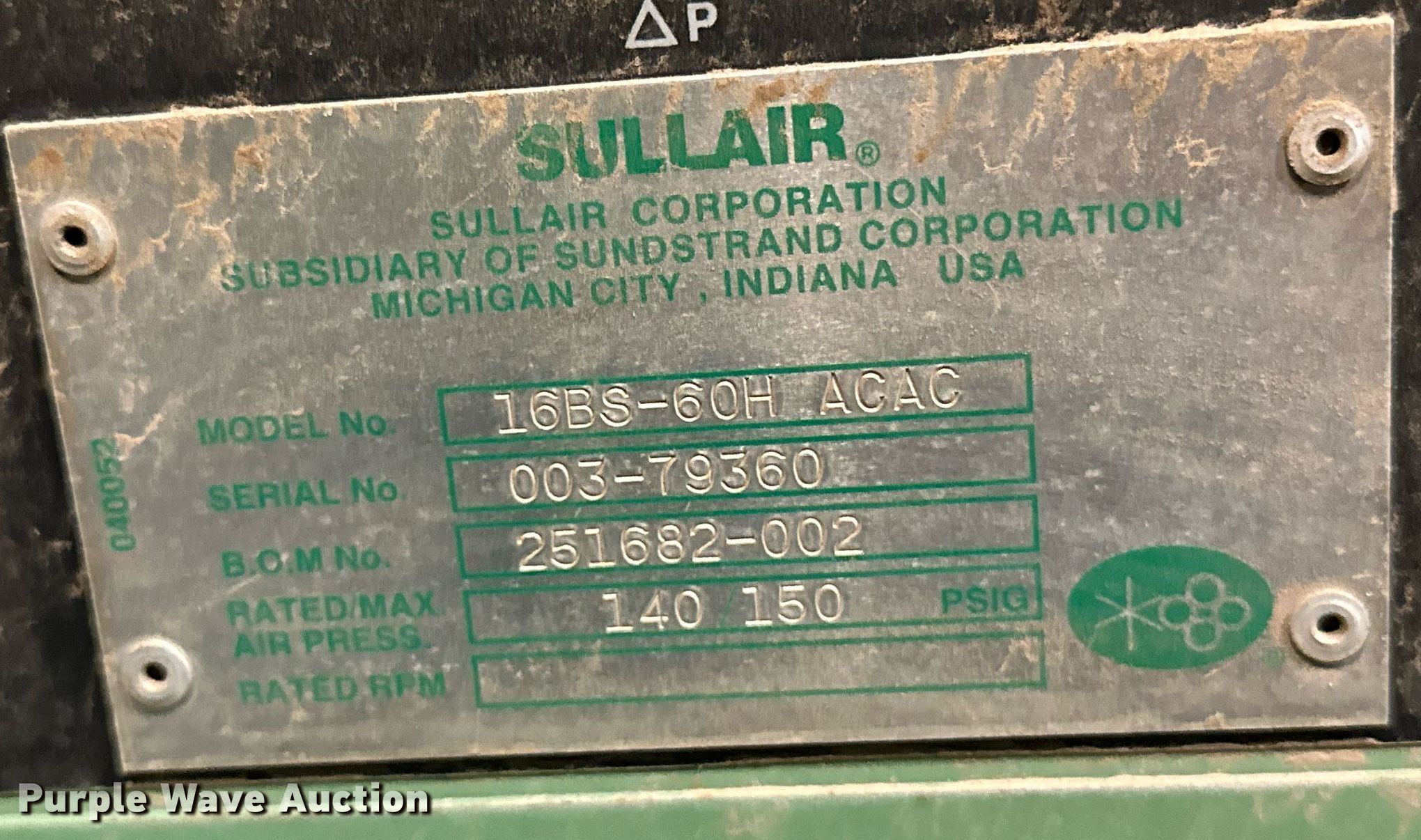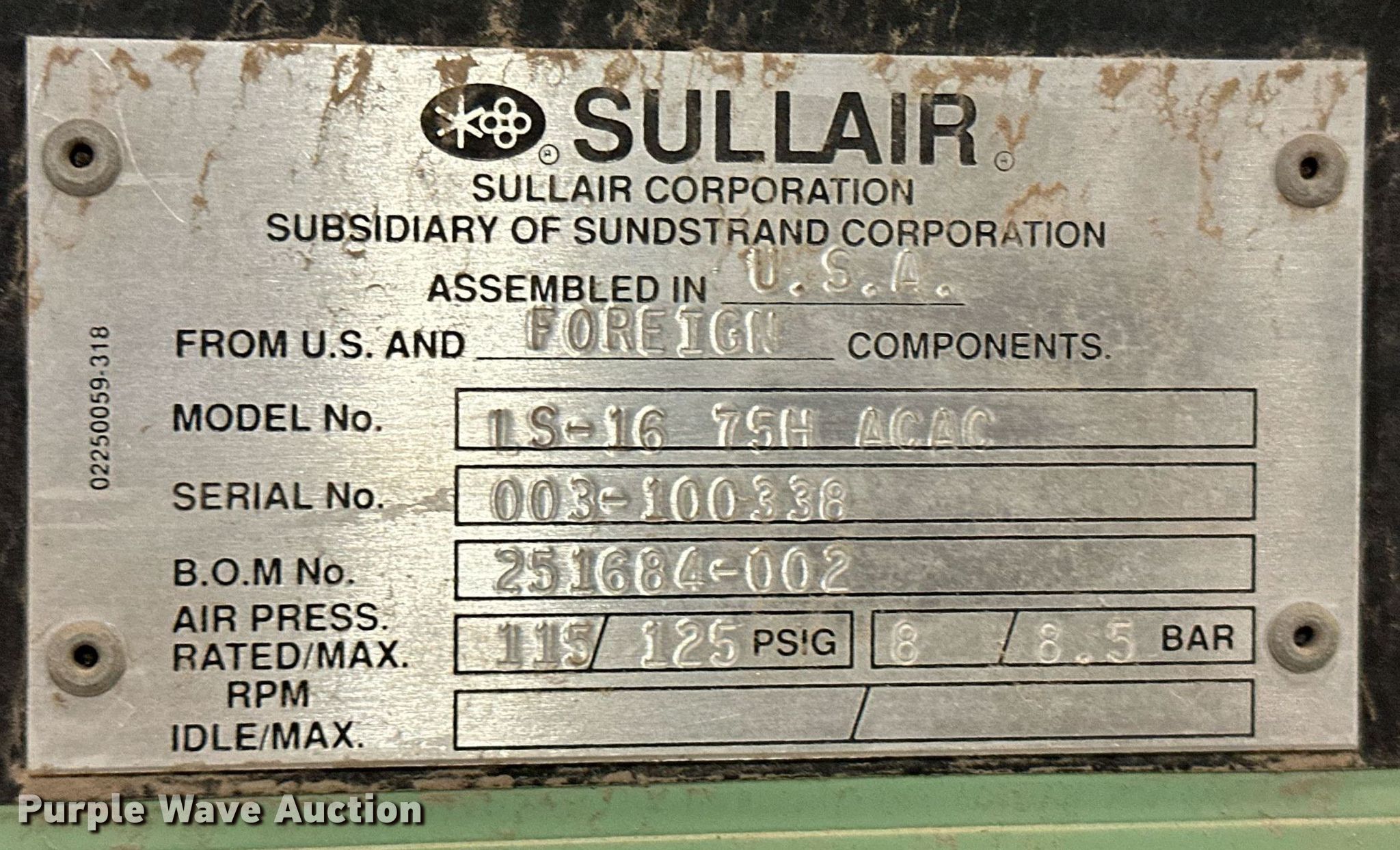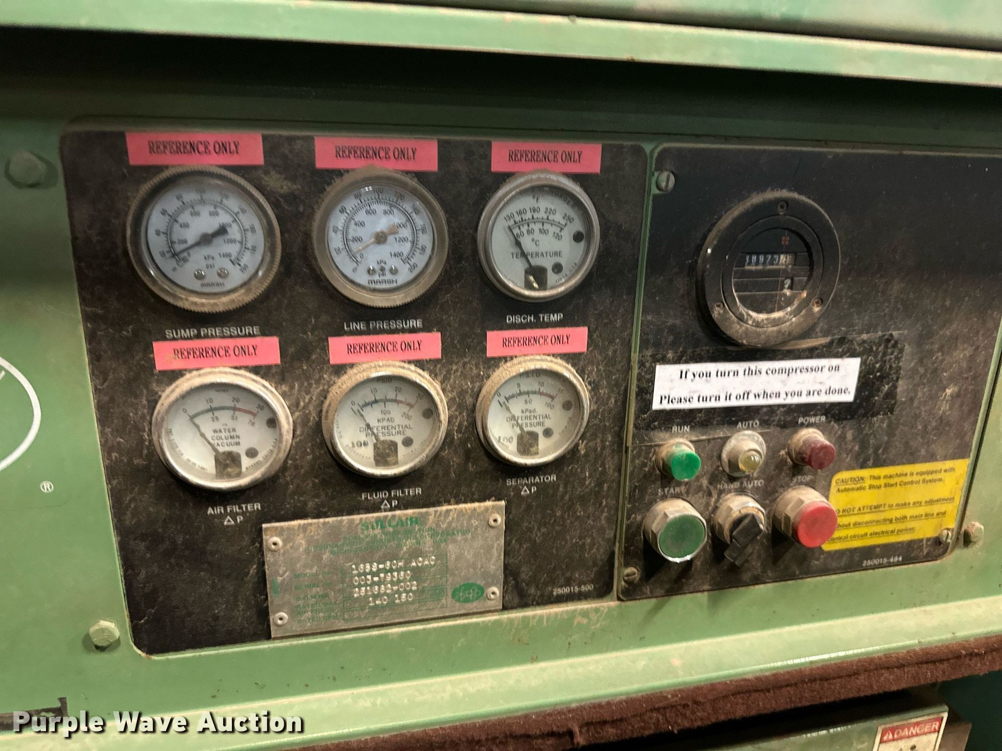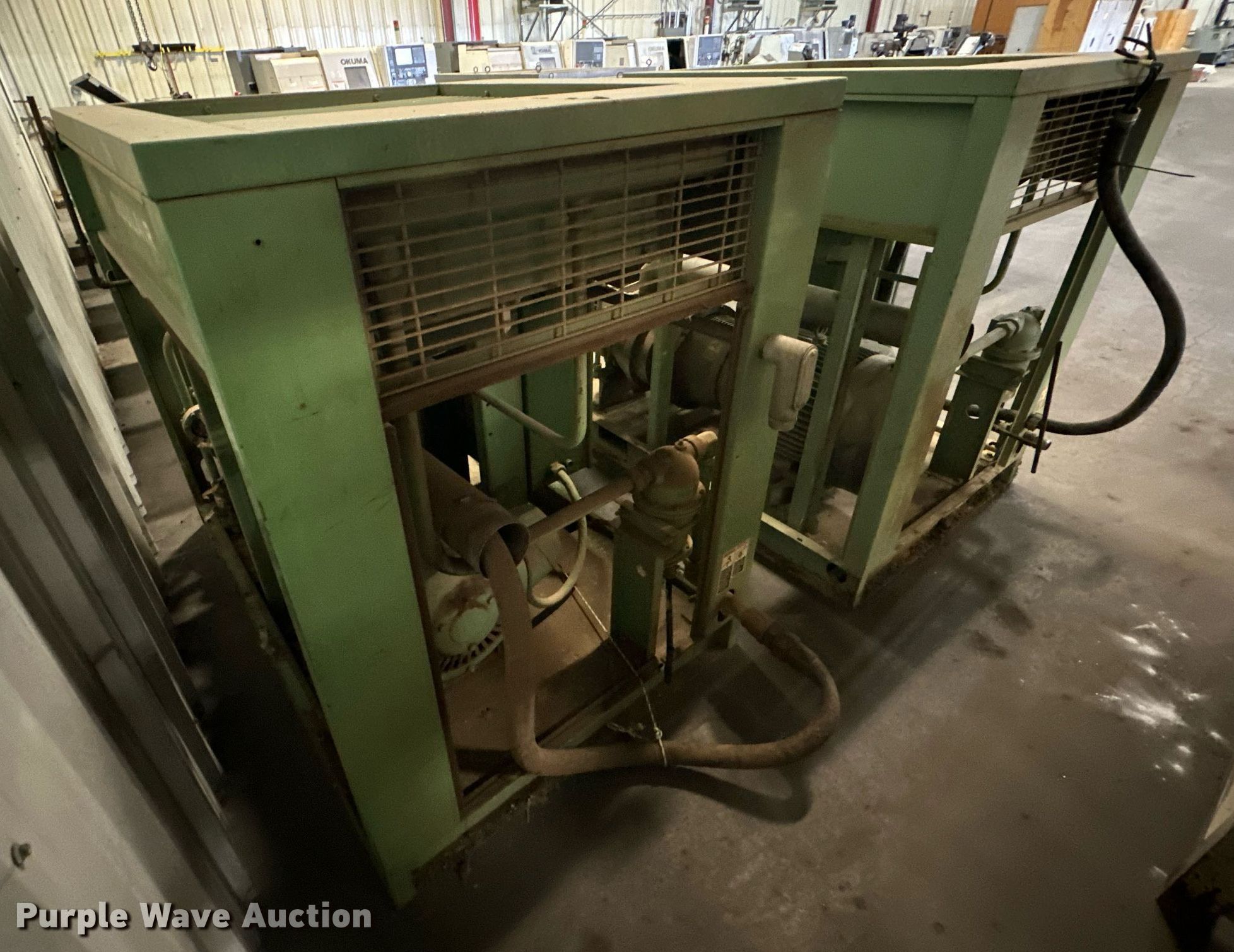 Purple Wave is selling a used Air Compressor in Oklahoma. This item is a (2) Sullair air compressors with the following: Hours: 21,529 on meter, Serial: 003-100338