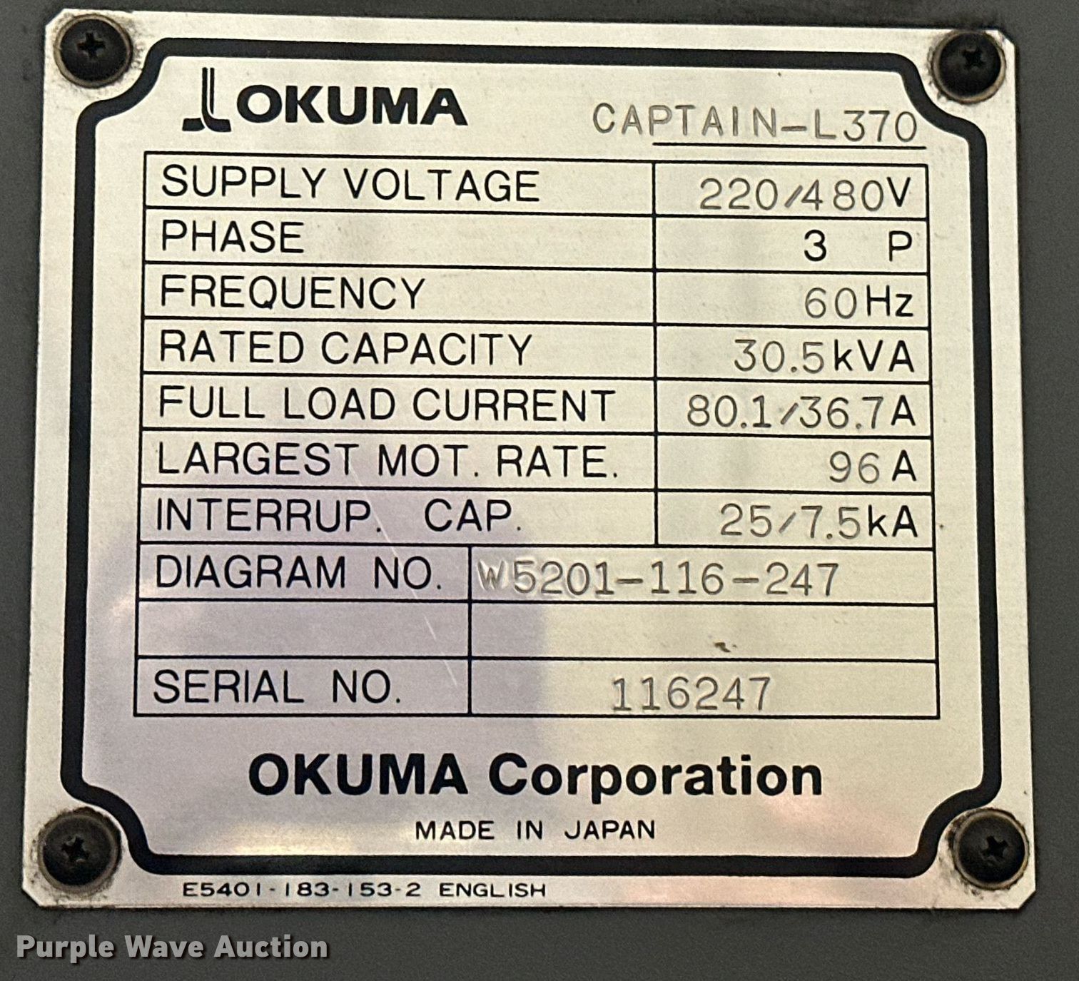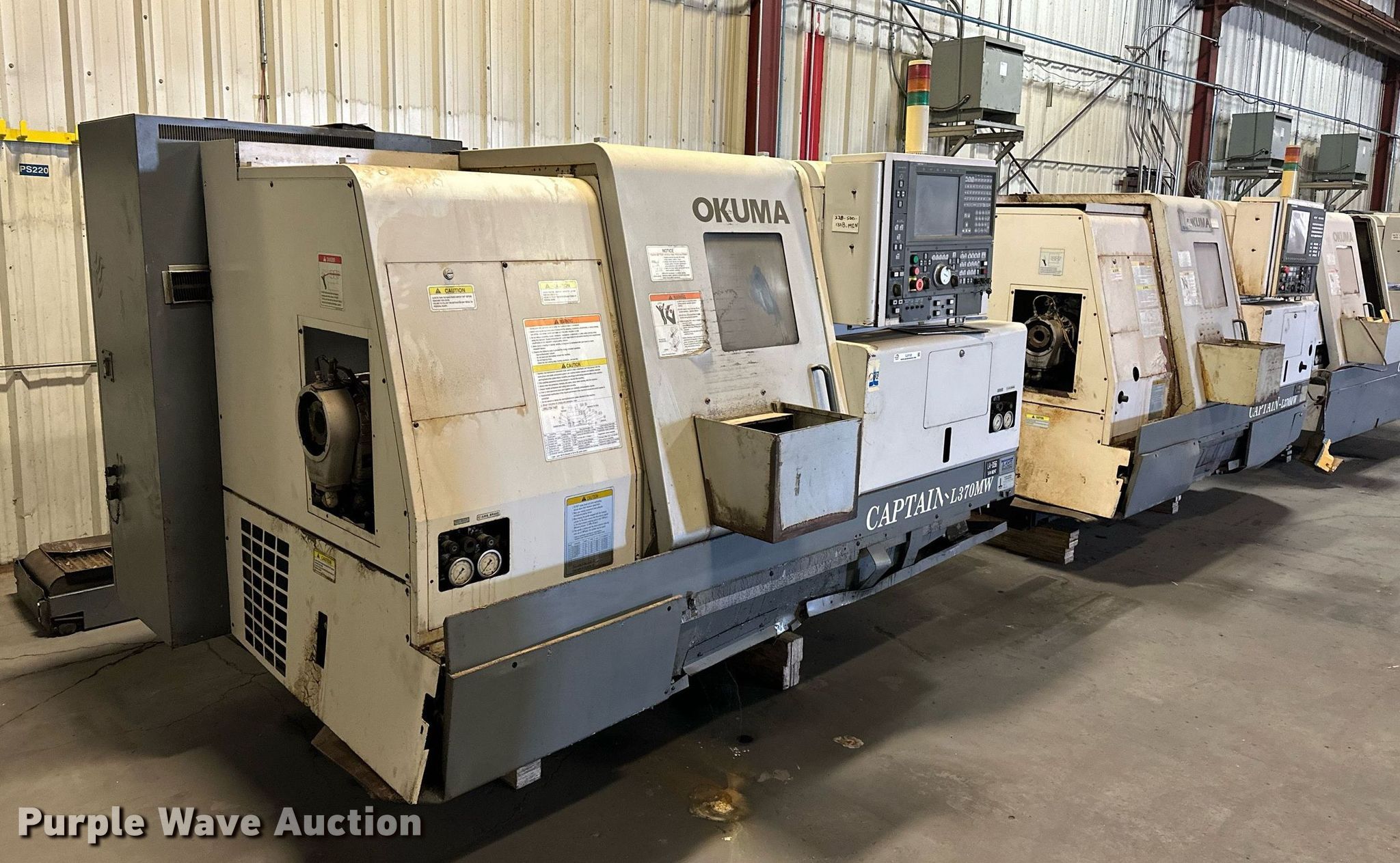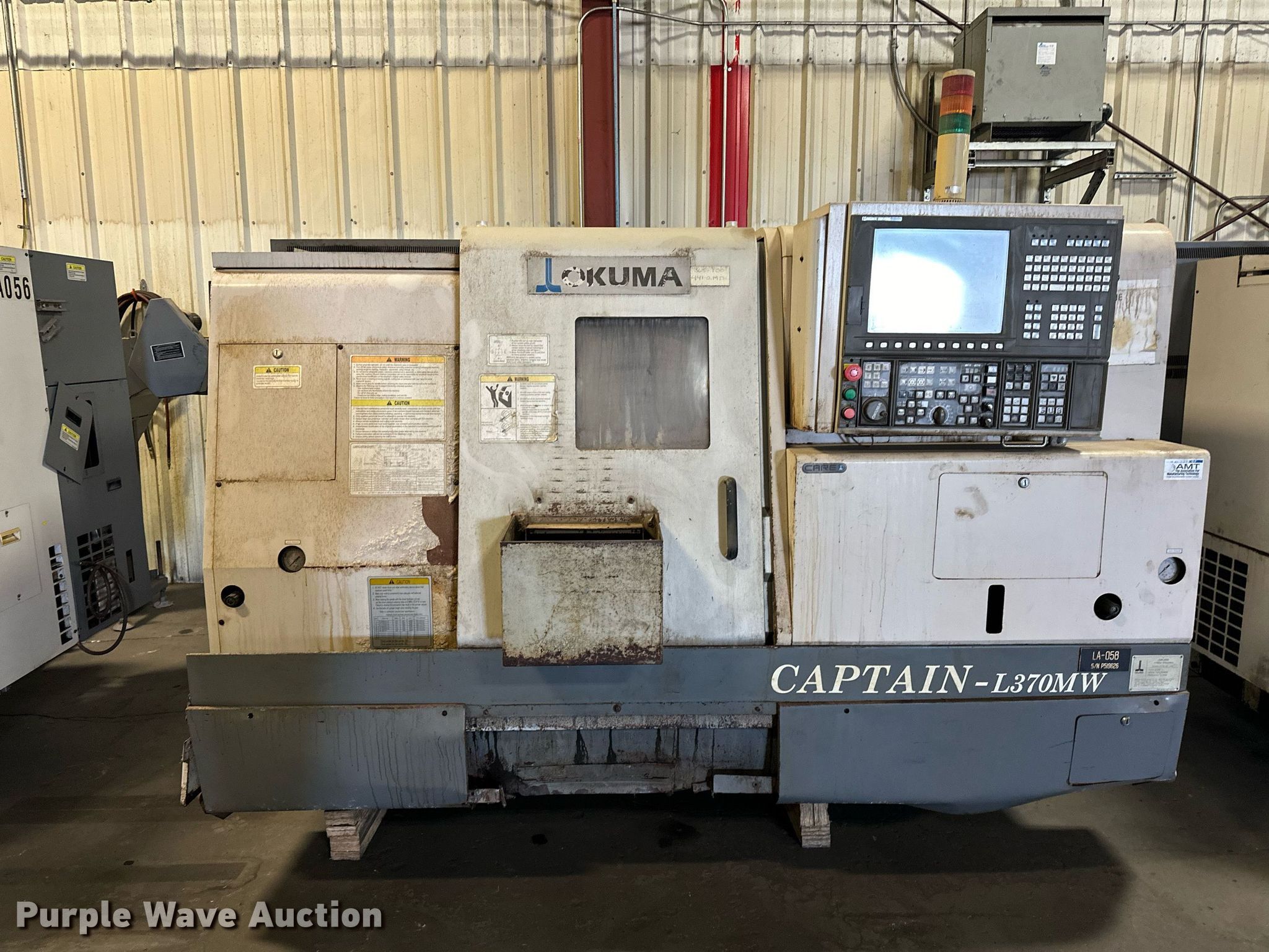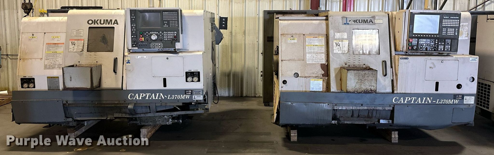 Purple Wave is selling a used Lathe CNC in Oklahoma. This item is a (2) Okuma Captain L370MW CNC lathes with the following: Serial: 116247, Serial: 519626