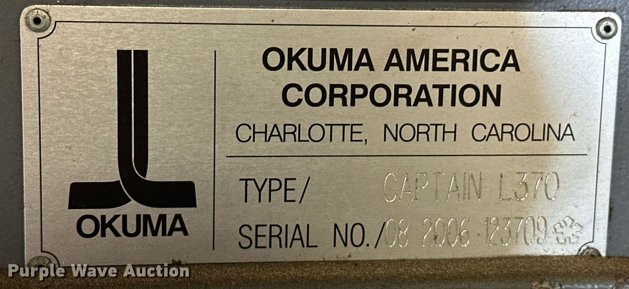 Purple Wave is selling a used Lathe CNC in Oklahoma. This item is a Okuma Captain-L370MW CNC lathe with the following: Serial: 123709