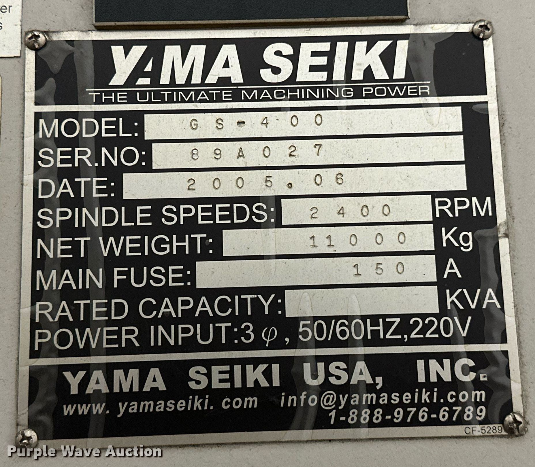 Purple Wave is selling a used Lathe CNC in Oklahoma. This item is a Yama Seiki GS-400 CNC lathe with the following: Serial: 89A027