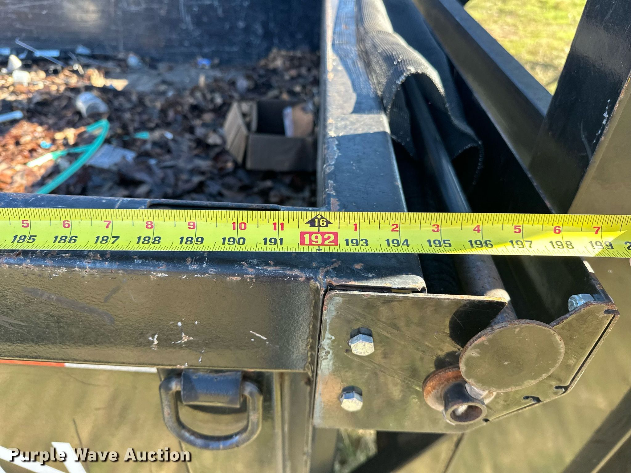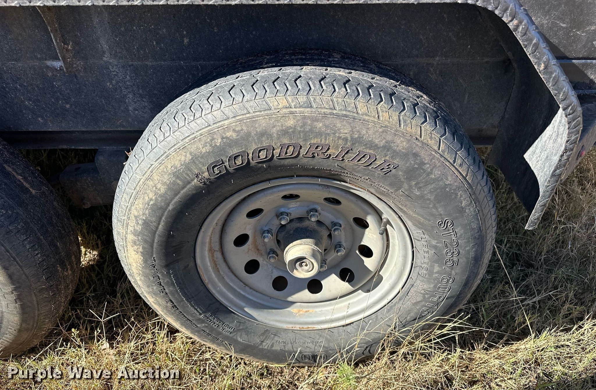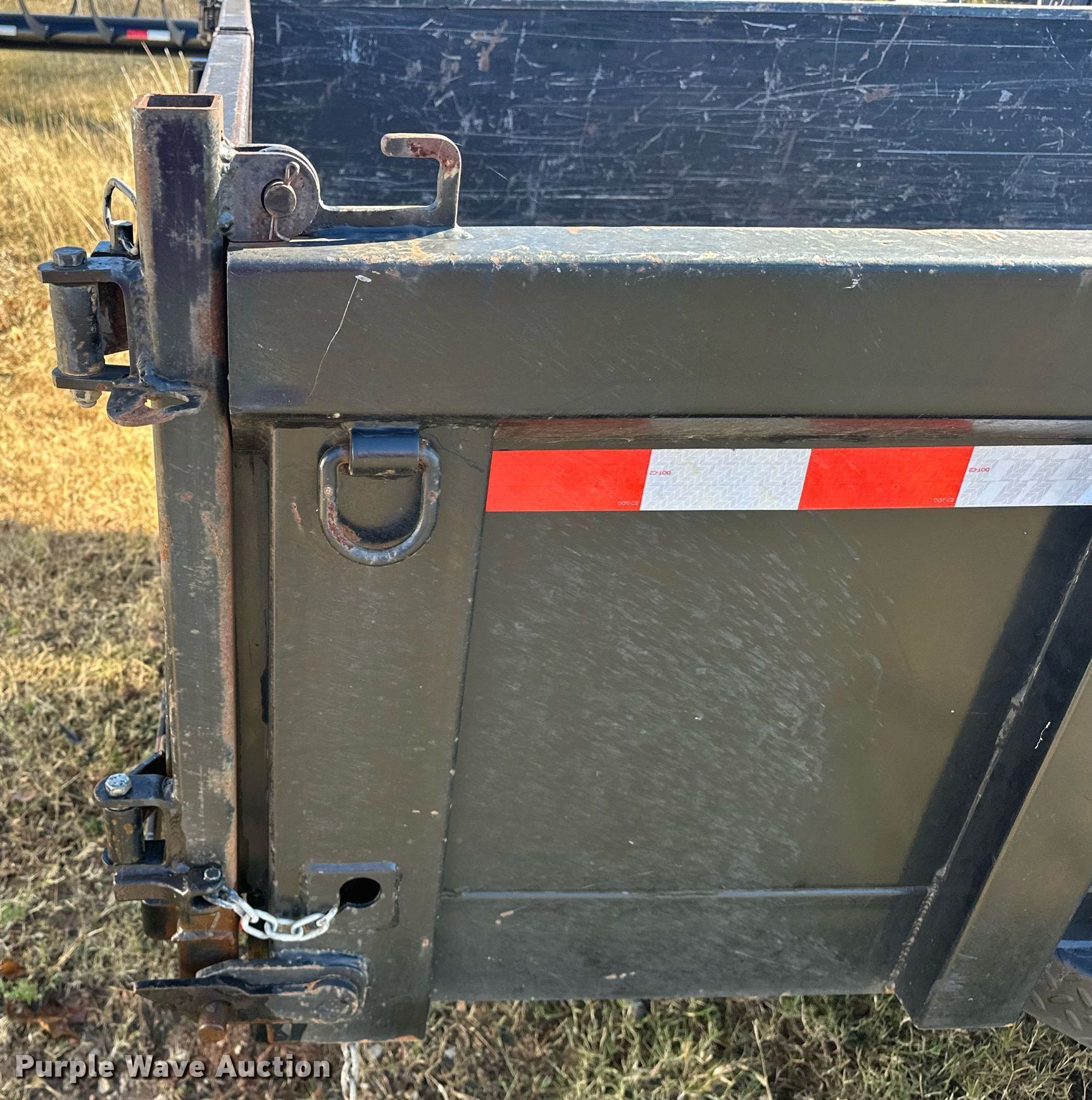 2020 X-On I6-GD831627 dump trailer. VIN: 7LEGD627XLB004154. Dimensions Overall: 25' L x 102" W, Body: 16' L x 83" W, Side height: 24". Features Body type: Steel, Ram: Single, End gate: Manual, Roll tarp. Chassis Hitch: Gooseneck, Landing gear: Single, Suspension: Spring, Brakes: Electric, Axles: Tandem, GVWR: 14,000 lbs, GAWR: 7,000 lbs. Tires Steel wheels, Size: ST235/80R16. Notes Tire sidewall damaged, needs replaced. Transfer of ownership documentation will be a bill of sale. Ada, OK 74820