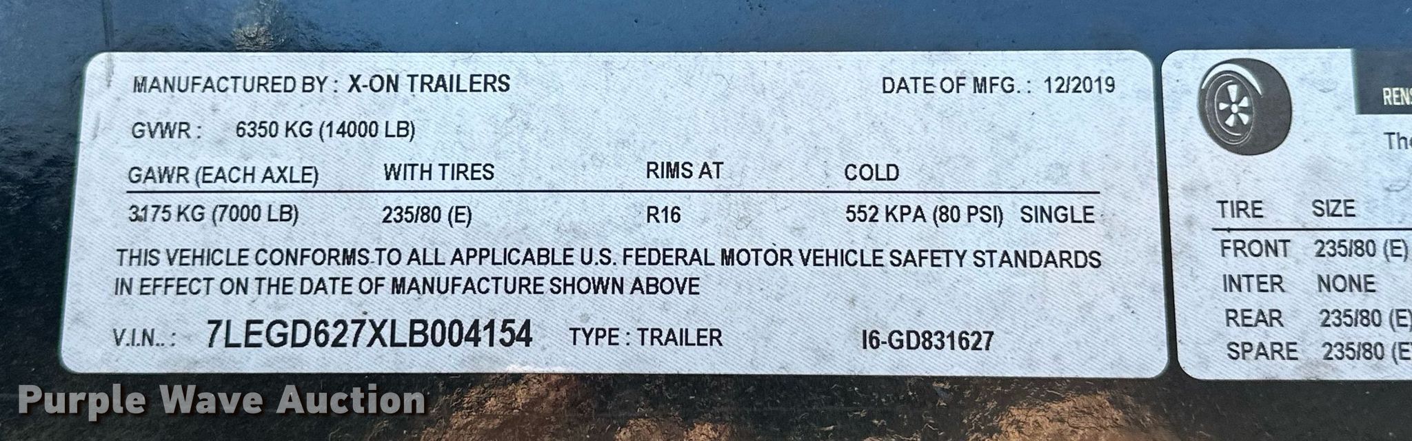 2020 X-On I6-GD831627 dump trailer | SOLD! December 18 Vehicles and Equipment Auction