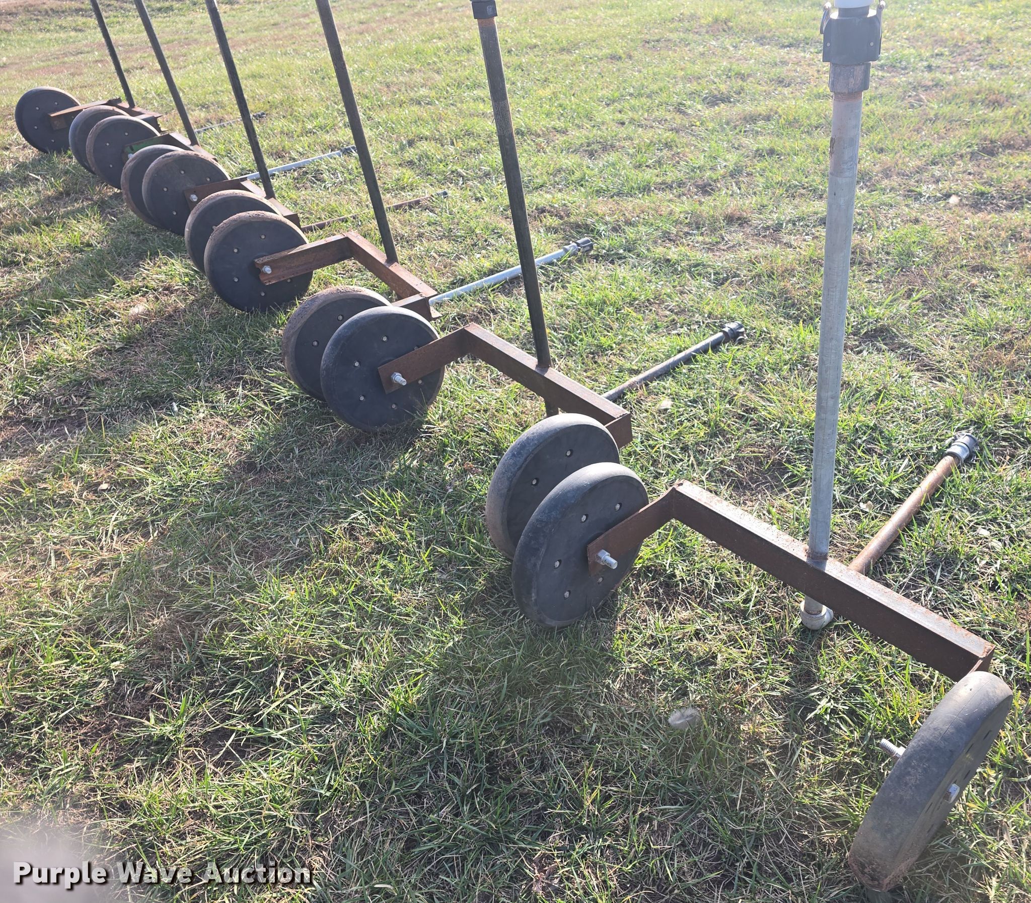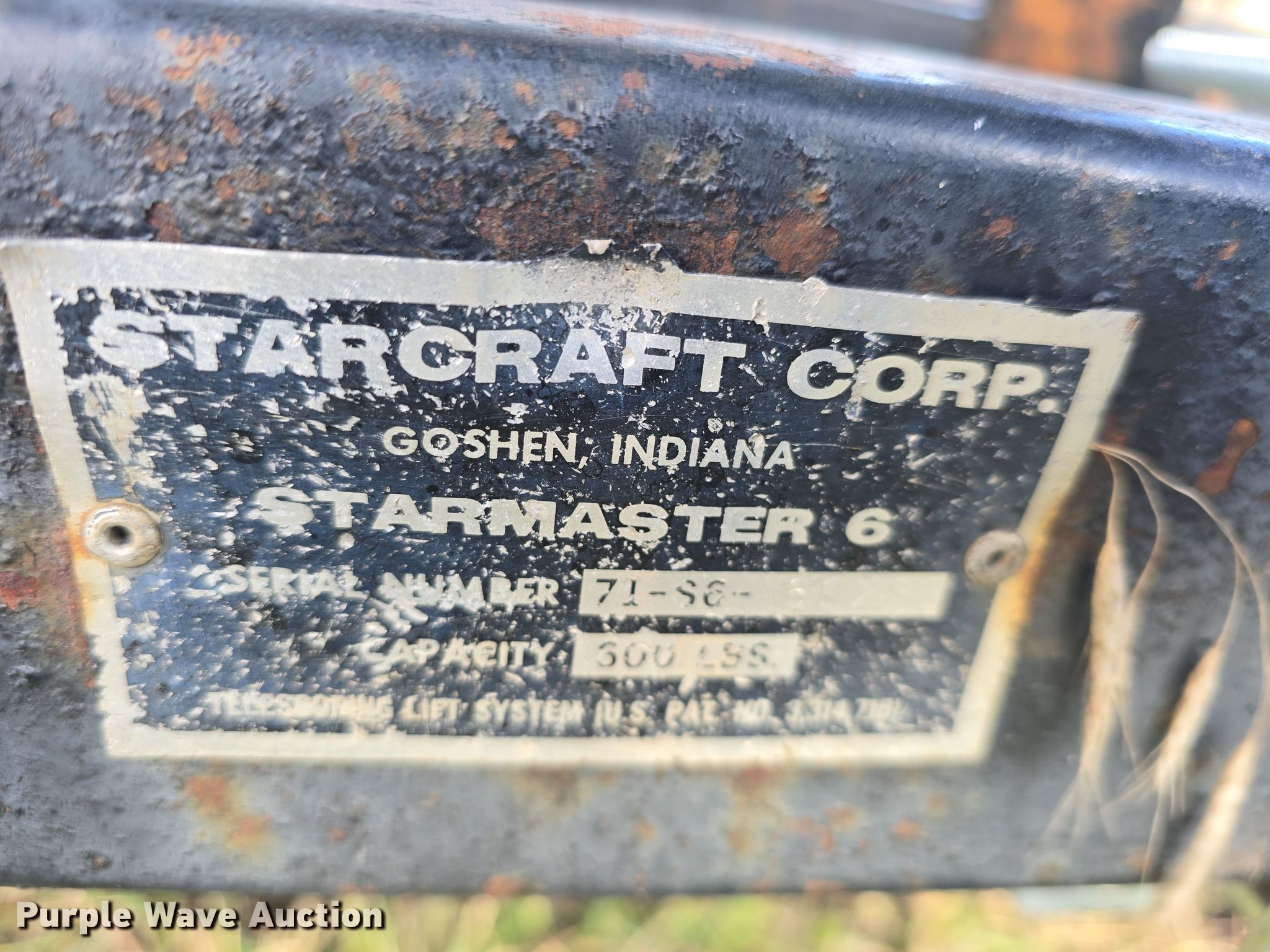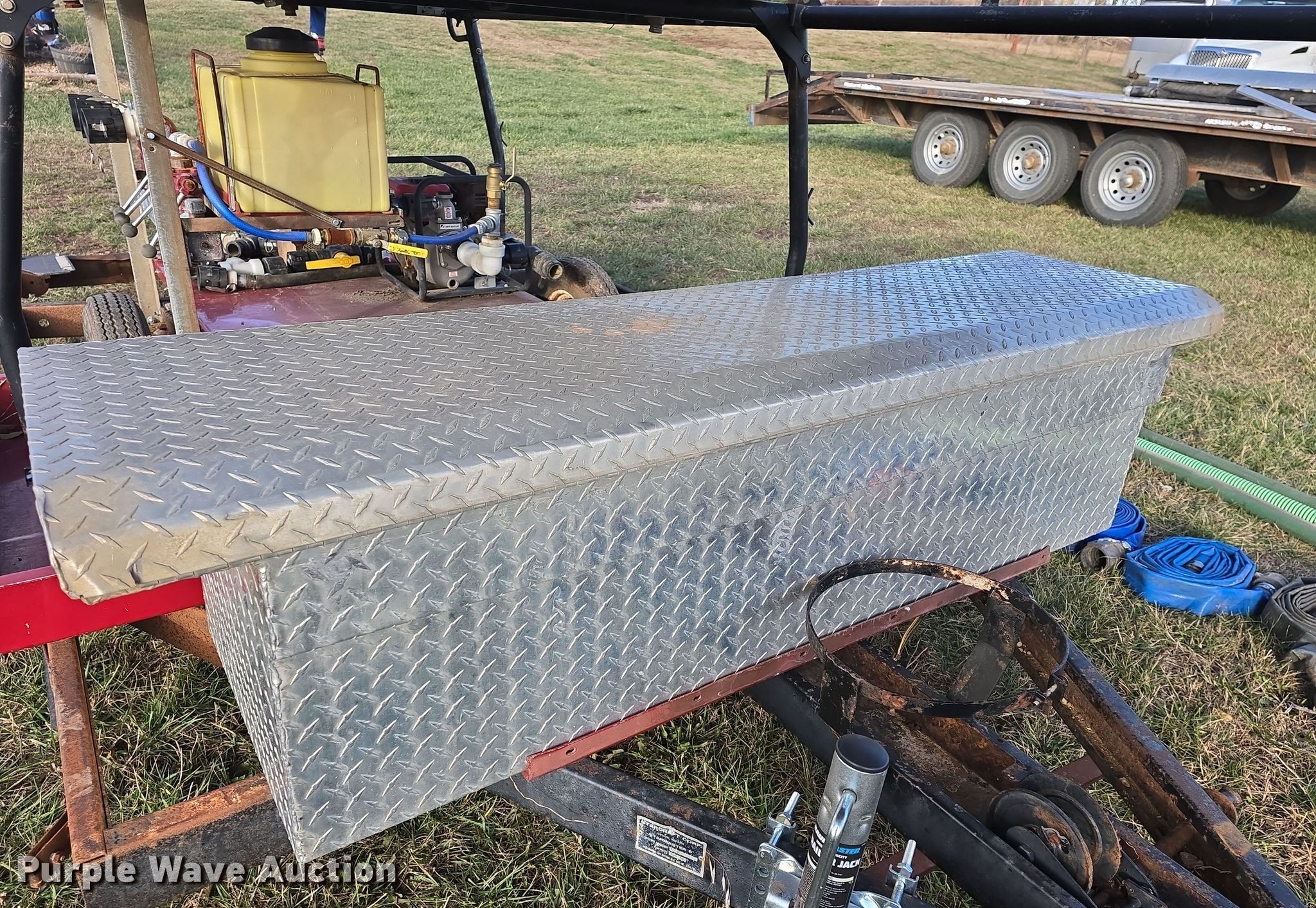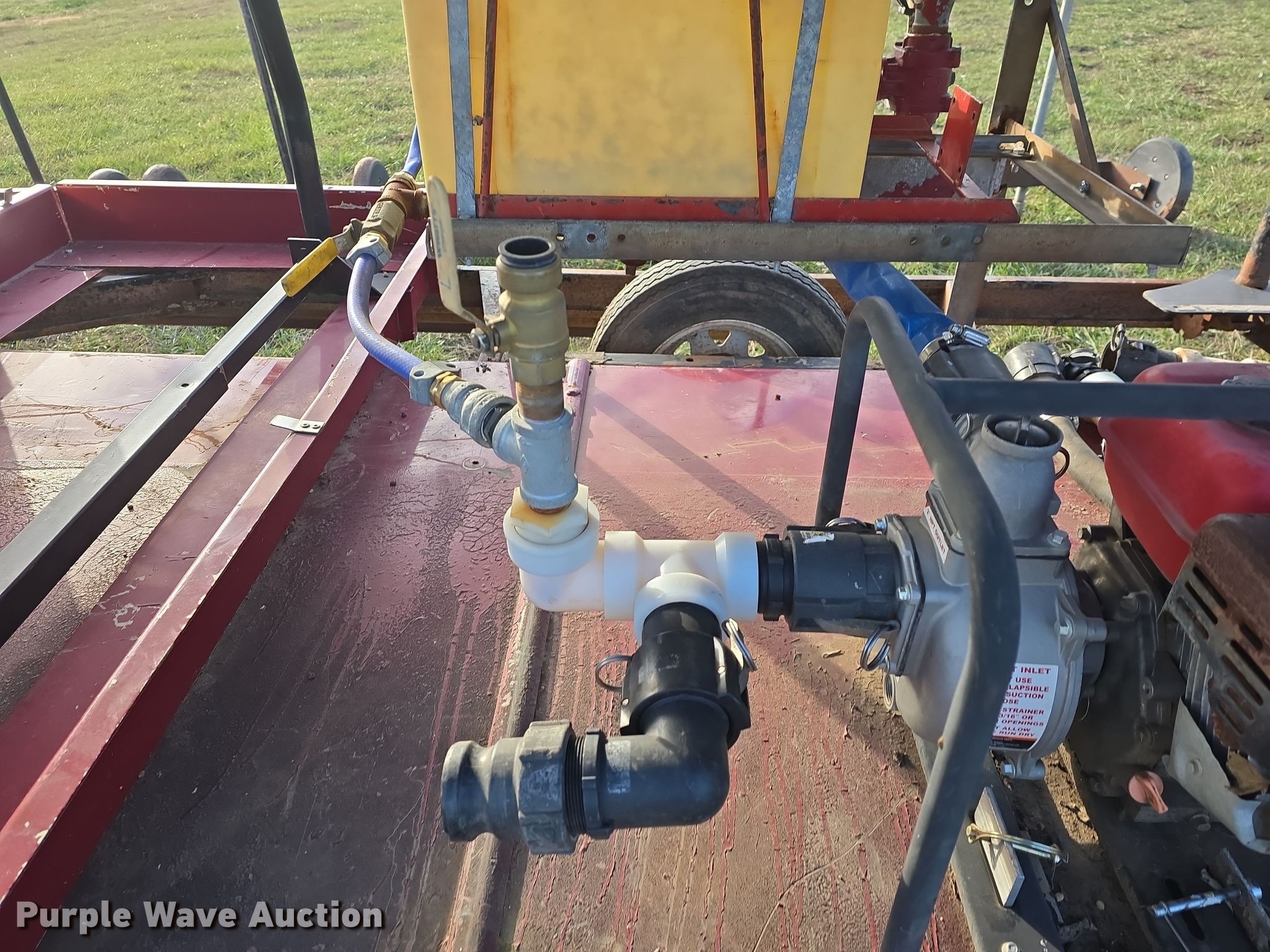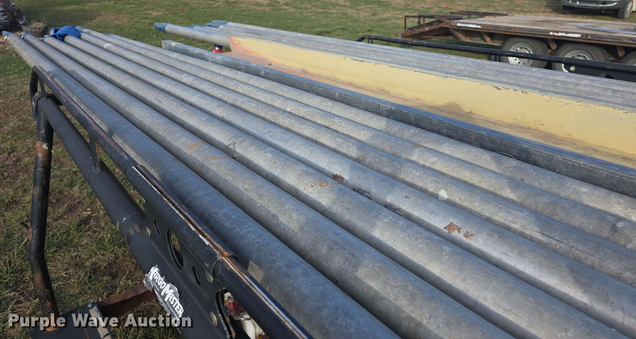 Starcraft Irrigation pump system. Engine. Predator, Displacement: 212 cc, Fuel type: Gas. Features Tank Capacity: 11 gallons, Cargo master ladder rack, Irrigation pipe and sprinkler heads, Attachments and Strainer, Water hoses, Flex hose, Toolbox and more. Trailer VIN: 71S660288. Dimensions Overall: 14' L x 7' W, Deck: 10' L x 7' W. Features Deck type: Steel. Chassis Ball hitch: 2", Landing gear: Single, Suspension: Spring, GVWR: 600 lbs. Tires Steel wheels, Size: 5.30-12. Transfer of ownership documentation will be a bill of sale. Blue Rapids, KS 66411
