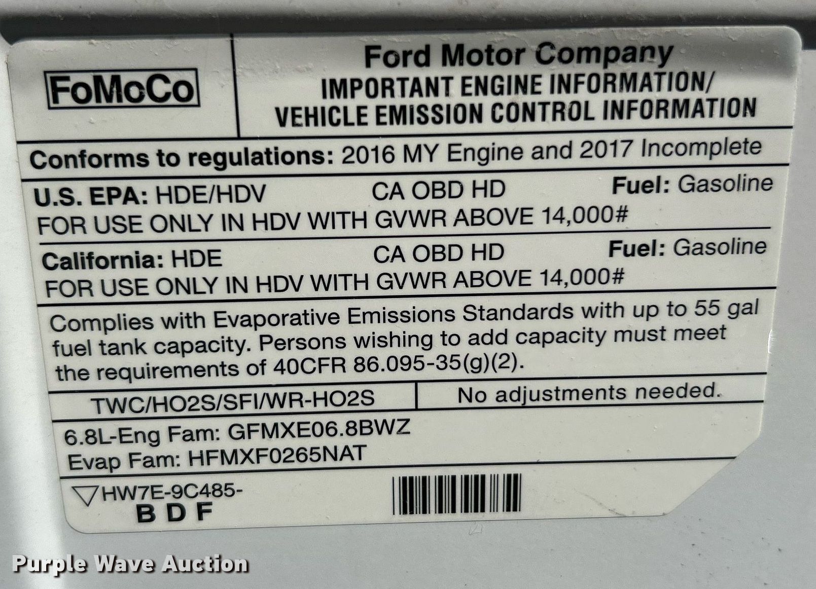 - VIN: 1FDFE4FS6HDC32002