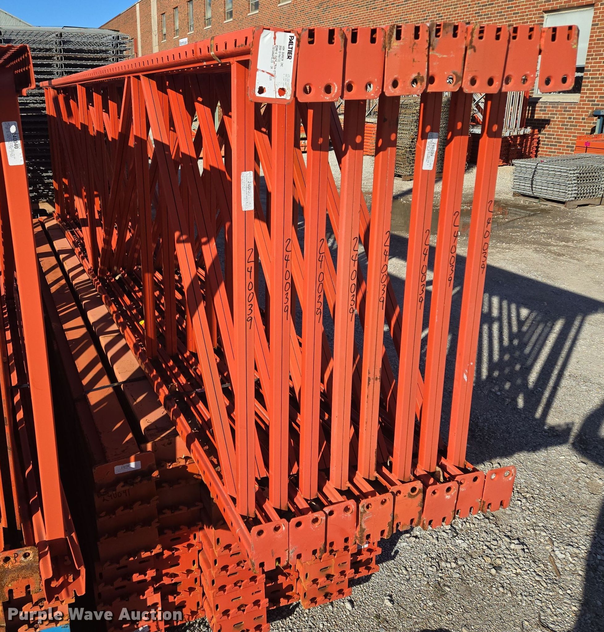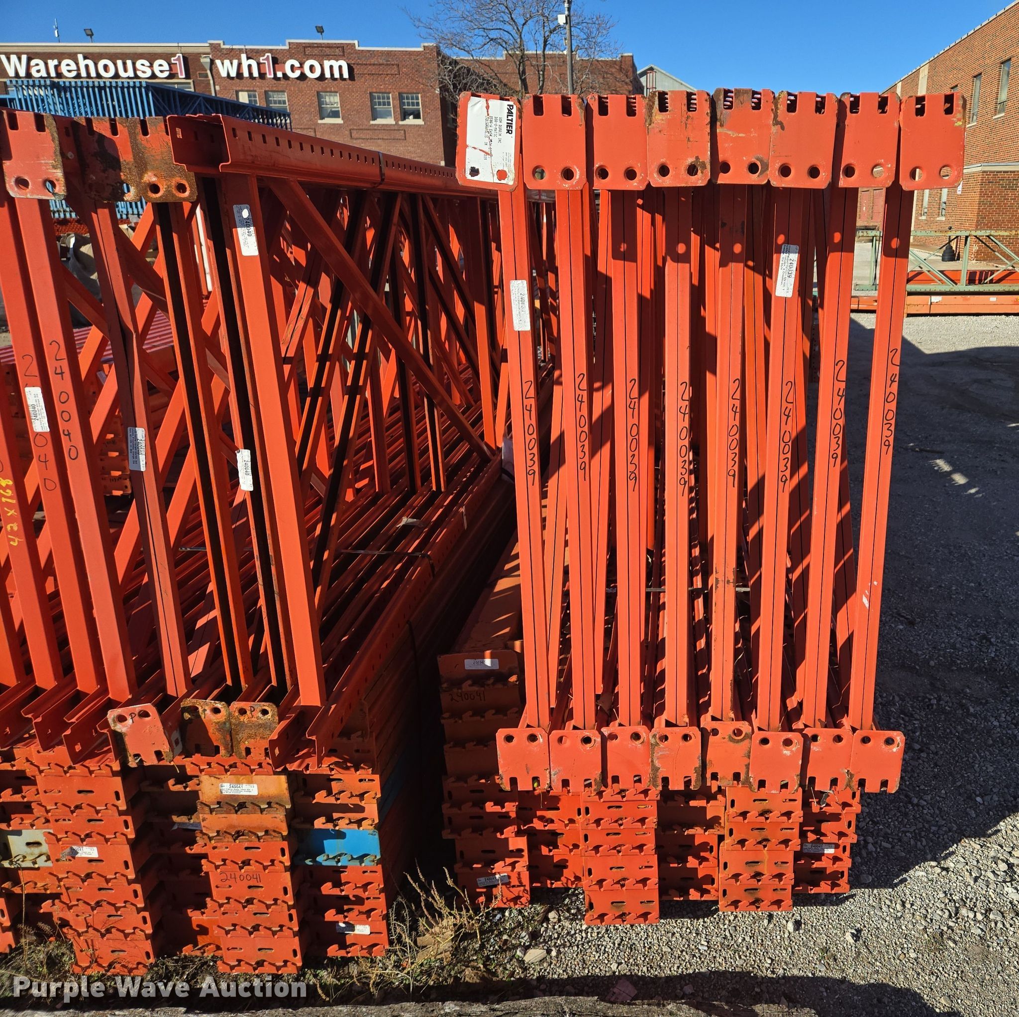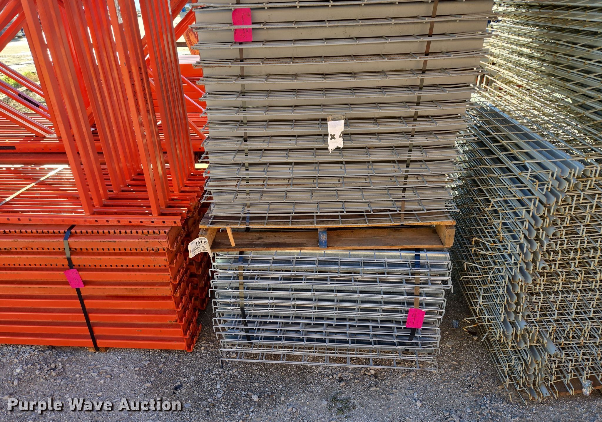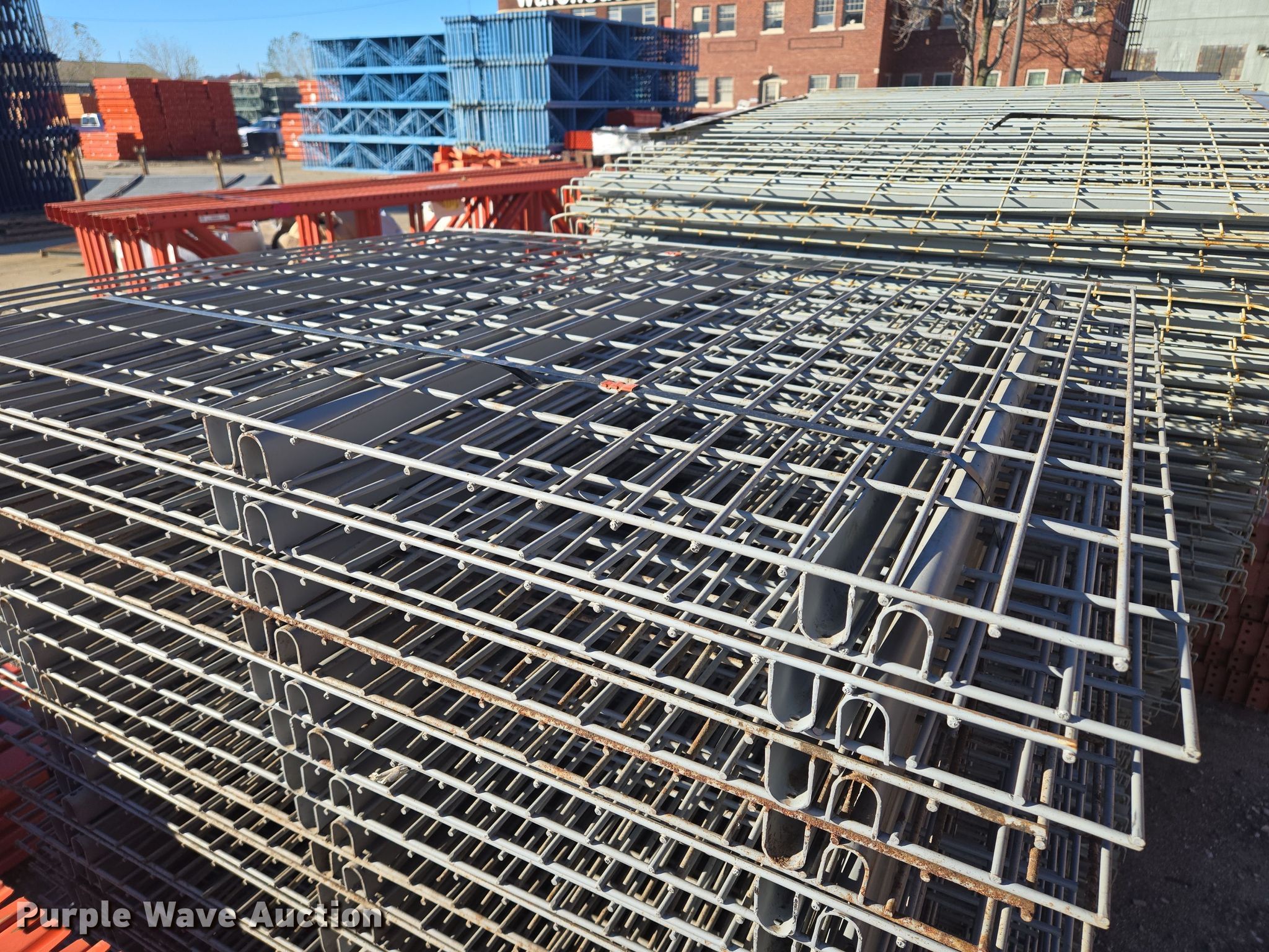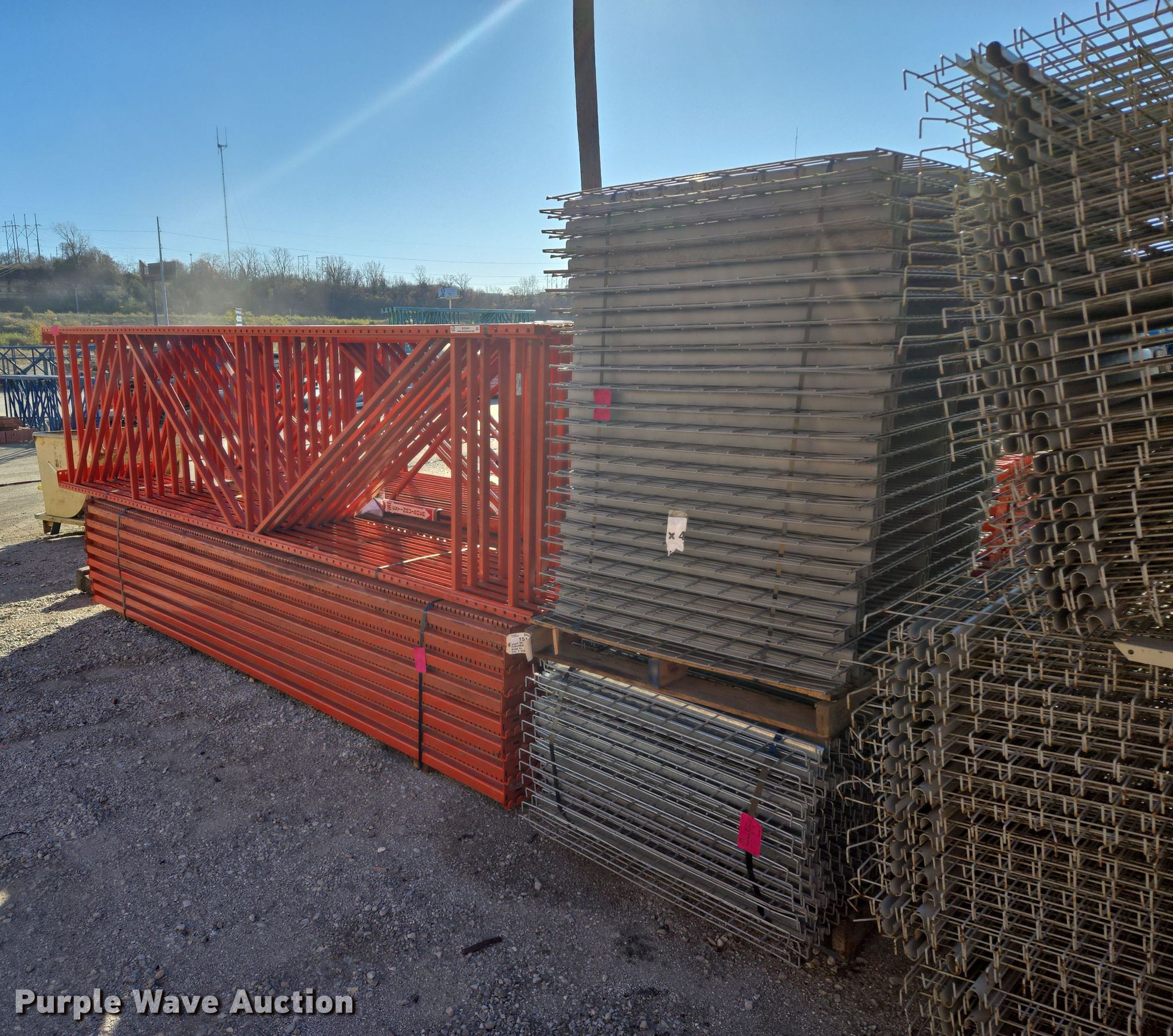 Paltier pallet racking. Unit #: 868451, (8) uprights 42" L x 168" W, (48) beams 12' L x 5.5" W, (24) wire decks 42" L x 64" W, (48) wire decks 42" L x 38" W. Warehouse One, Inc.. Kansas City, MO 64126