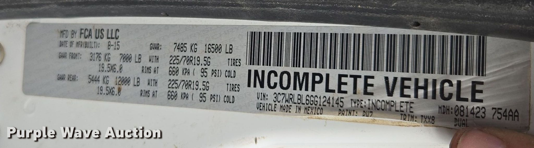 - VIN: 3C7WRLBL6GG124145
