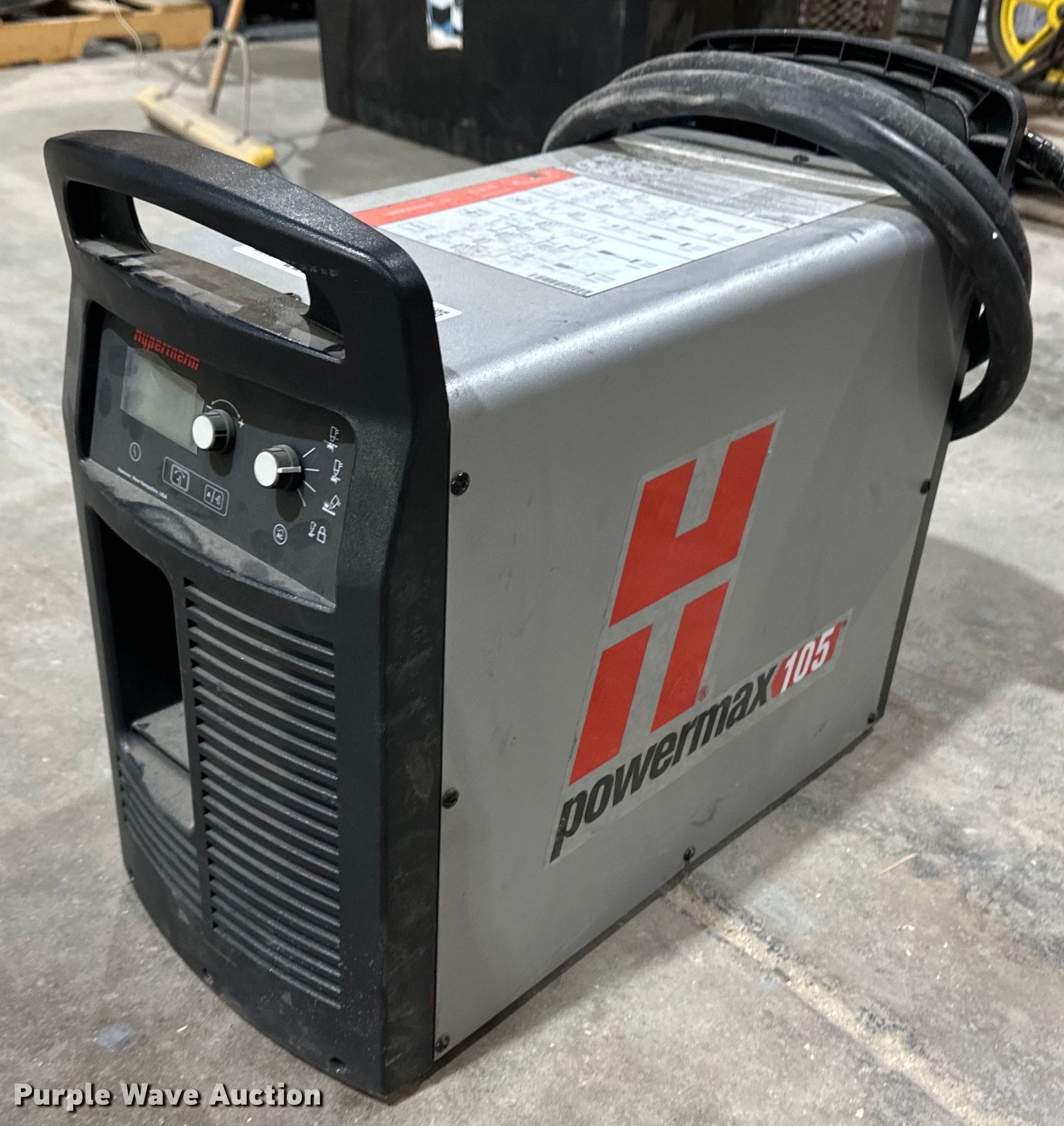 Purple Wave is selling a used Cutting Systems in Kansas. This item is a Hypertherm Powermax 105 plasma cutter with the following: Serial: 105-031324, Power cable