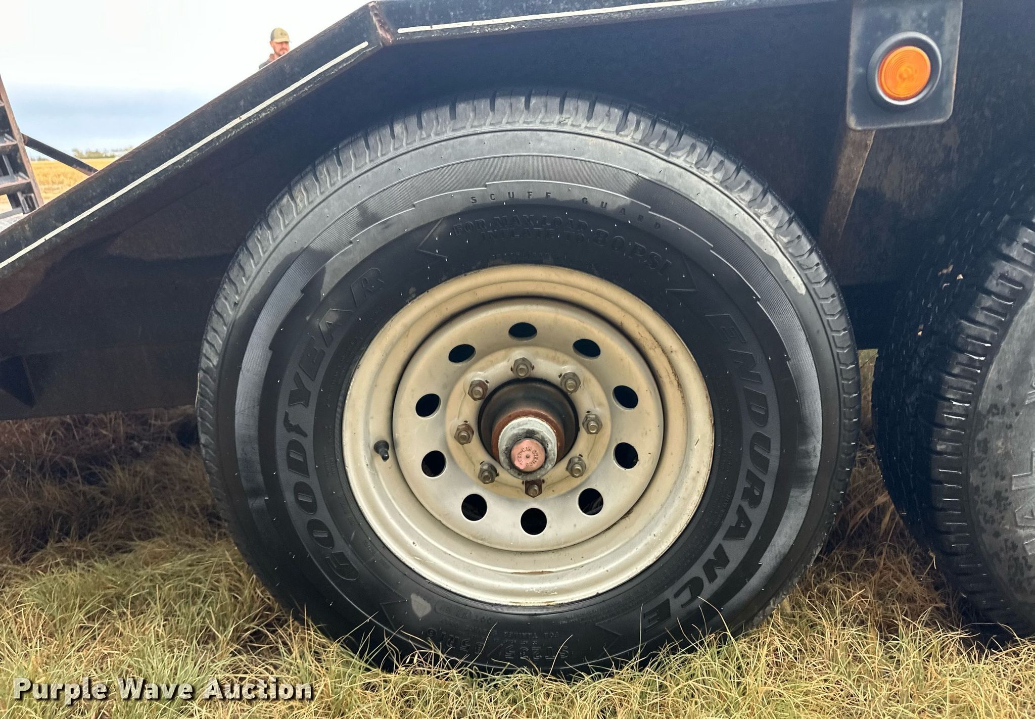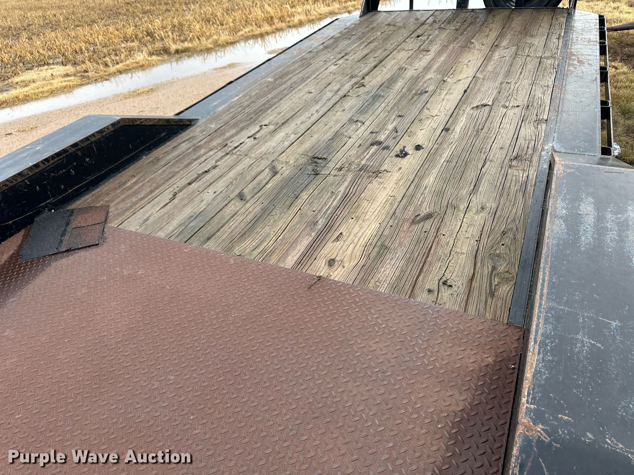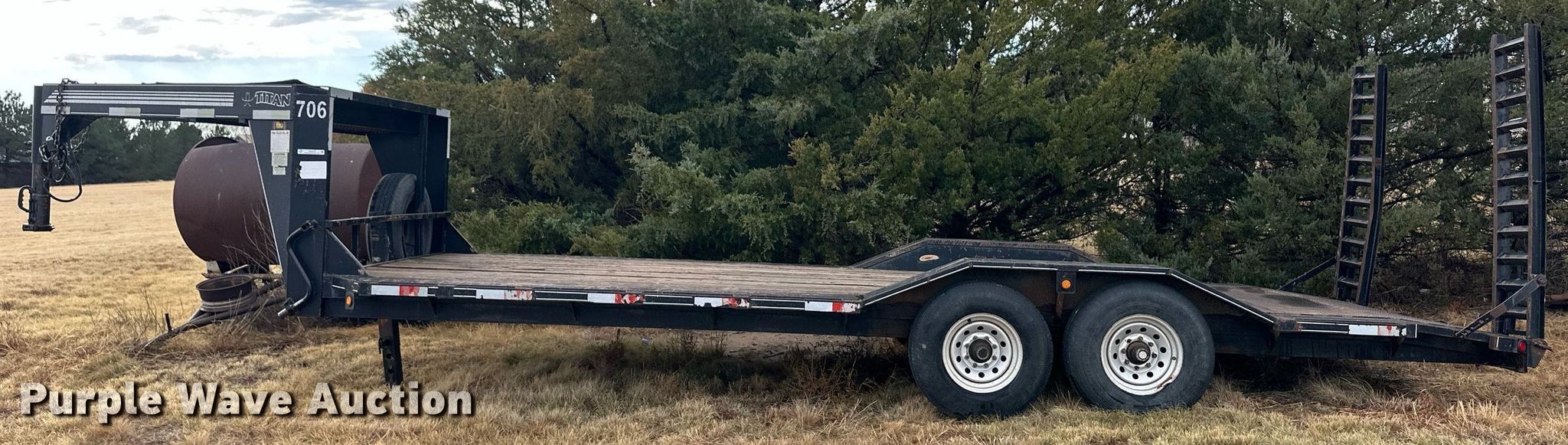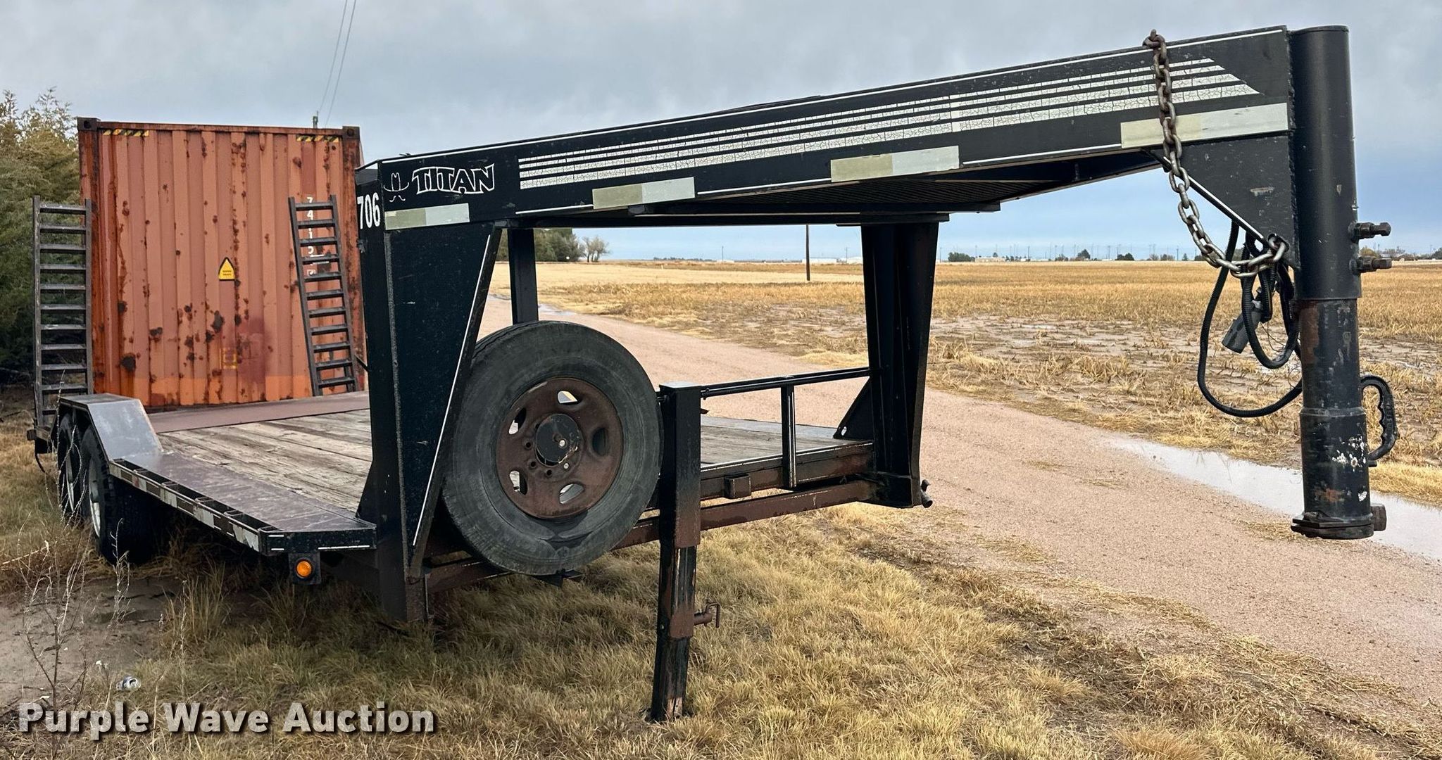 2006 Titan equipment trailer. VIN: 4TGF2220461037957. Dimensions Overall: 30' 6" L x 102" W, Deck: 22' L x 98" W, Deck height: 24", Ramps: Manual Length: 5' 6". Features Deck type: Steel, Wood. Chassis Hitch: Gooseneck, Landing gear: Single, Suspension: Spring, Brakes: Electric, Axles: Tandem, GVWR: 14,000 lbs. Tires Steel wheels, Size: 235/85R16. Kansas title. Title distribution may be delayed up to 14 days from verification of funds. Ulysses, KS 67880