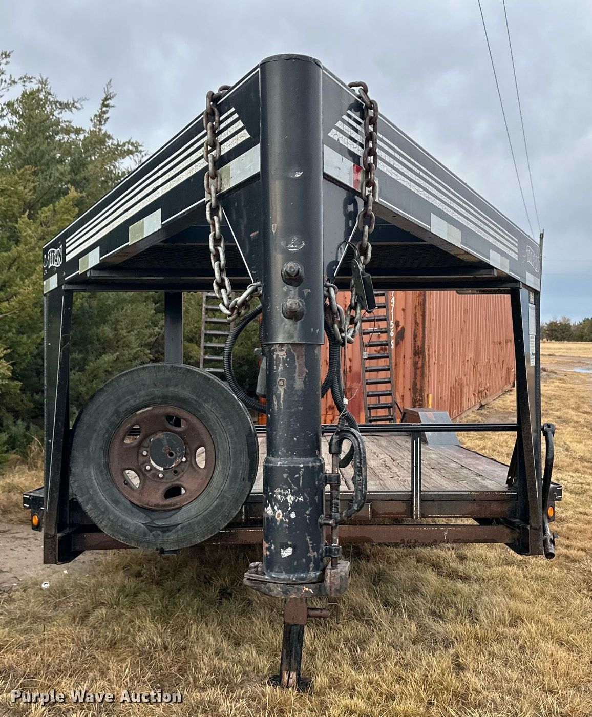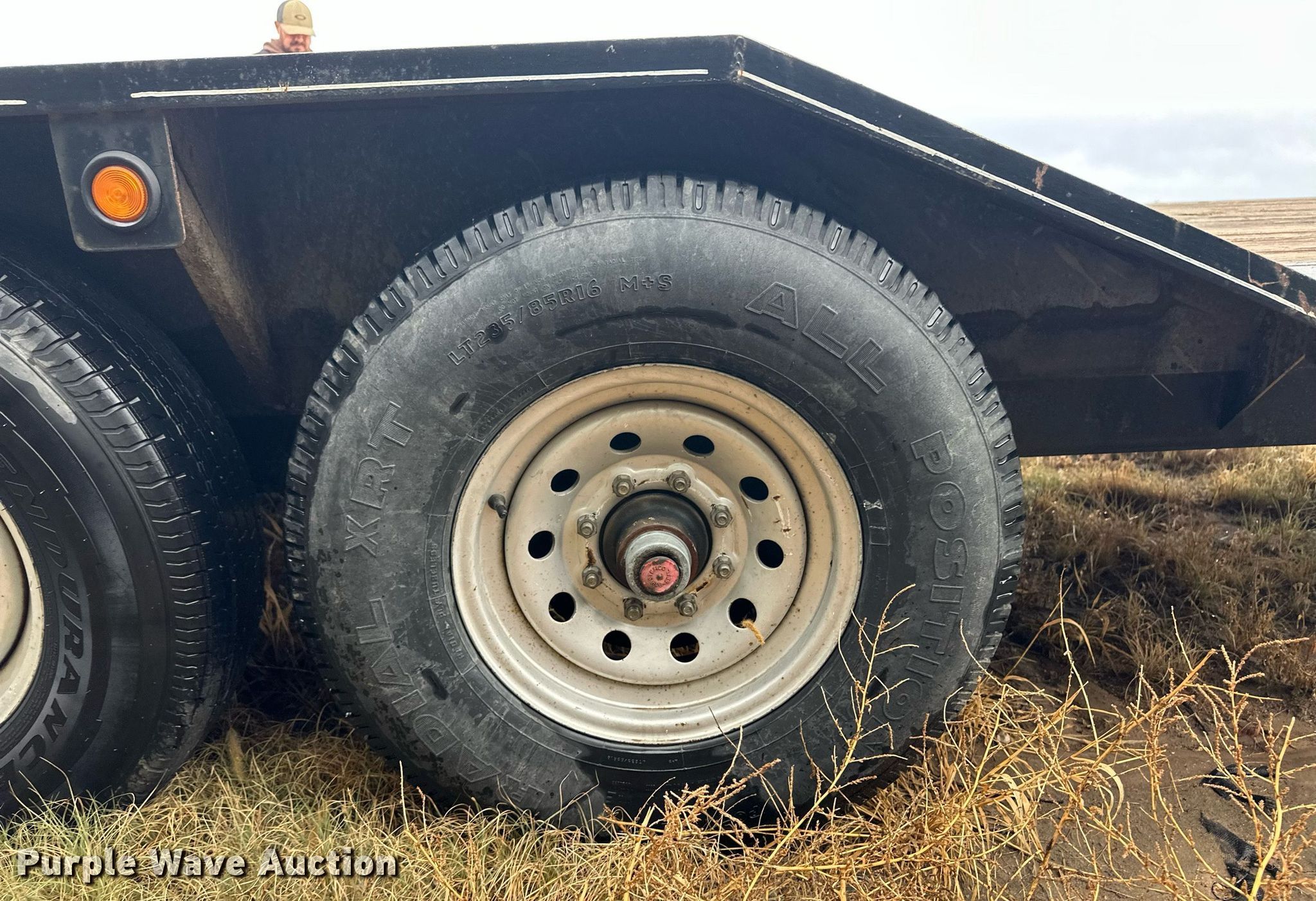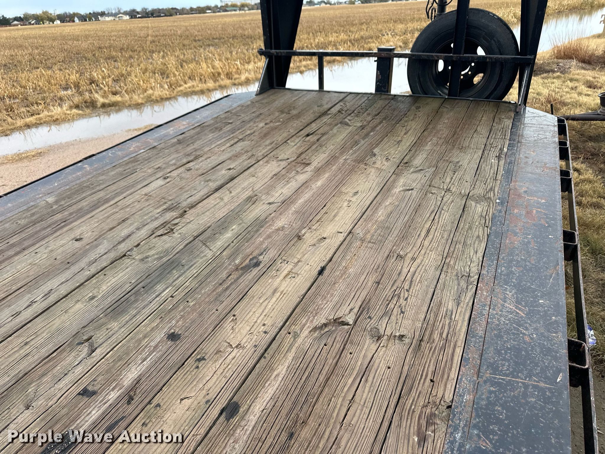 2006 Titan equipment trailer. VIN: 4TGF2220461037957. Dimensions Overall: 30' 6" L x 102" W, Deck: 22' L x 98" W, Deck height: 24", Ramps: Manual Length: 5' 6". Features Deck type: Steel, Wood. Chassis Hitch: Gooseneck, Landing gear: Single, Suspension: Spring, Brakes: Electric, Axles: Tandem, GVWR: 14,000 lbs. Tires Steel wheels, Size: 235/85R16. Kansas title. Title distribution may be delayed up to 14 days from verification of funds. Ulysses, KS 67880