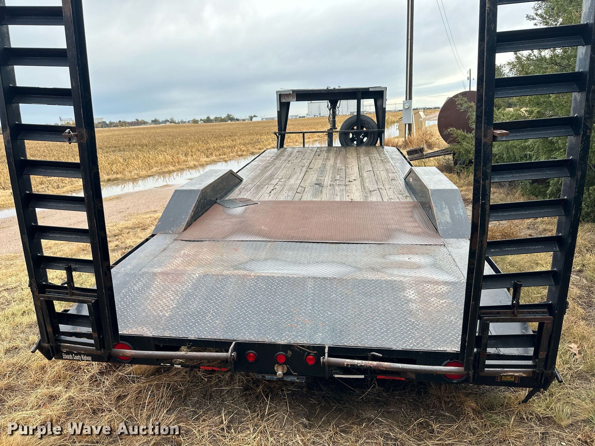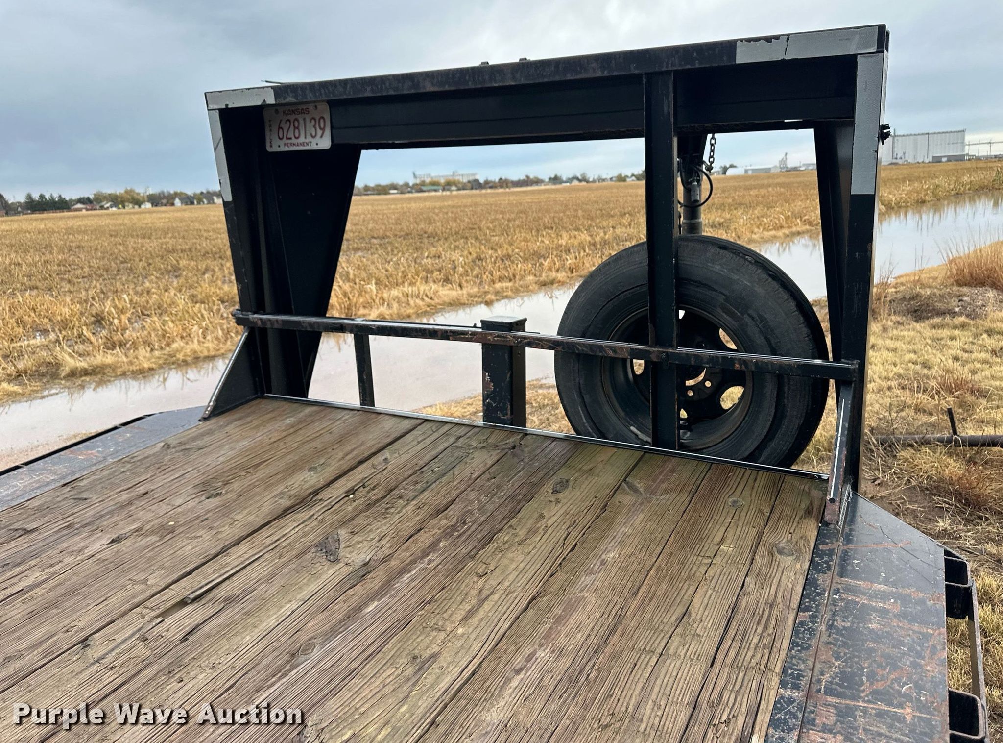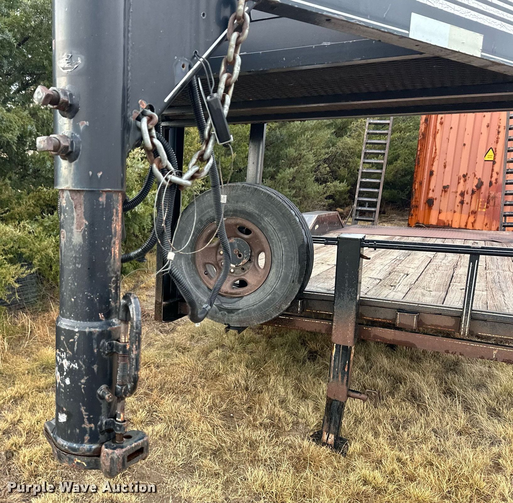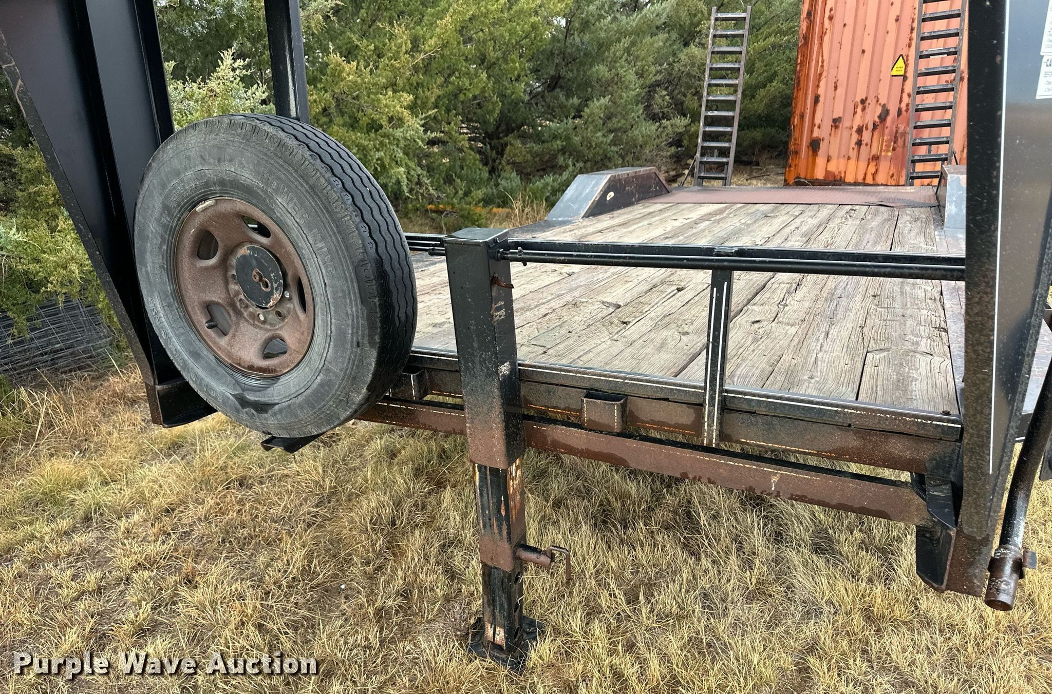 2006 Titan equipment trailer. VIN: 4TGF2220461037957. Dimensions Overall: 30' 6" L x 102" W, Deck: 22' L x 98" W, Deck height: 24", Ramps: Manual Length: 5' 6". Features Deck type: Steel, Wood. Chassis Hitch: Gooseneck, Landing gear: Single, Suspension: Spring, Brakes: Electric, Axles: Tandem, GVWR: 14,000 lbs. Tires Steel wheels, Size: 235/85R16. Kansas title. Title distribution may be delayed up to 14 days from verification of funds. Ulysses, KS 67880