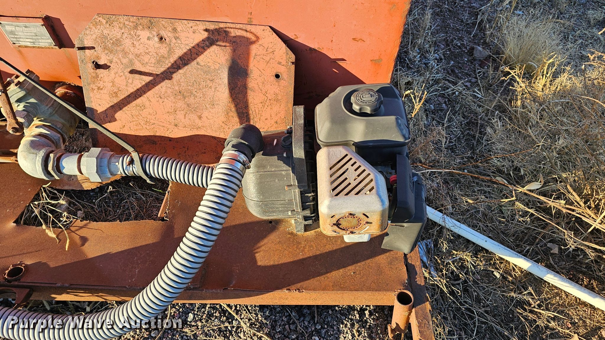 Sioux City Foundry RWT-30 water tank. Serial: 1317. Engine Cylinders: 1, Fuel type: Gas. Features Overall: 12' 6" L x 82" W x 72" H, Tank: 10' L x 82" W x 72" H, Capacity: 3,000 gallons, Top fill, Outlet: 3". Notes Non-operational engine. Van Kirk Bros. Contracting. Sutton, NE 68979