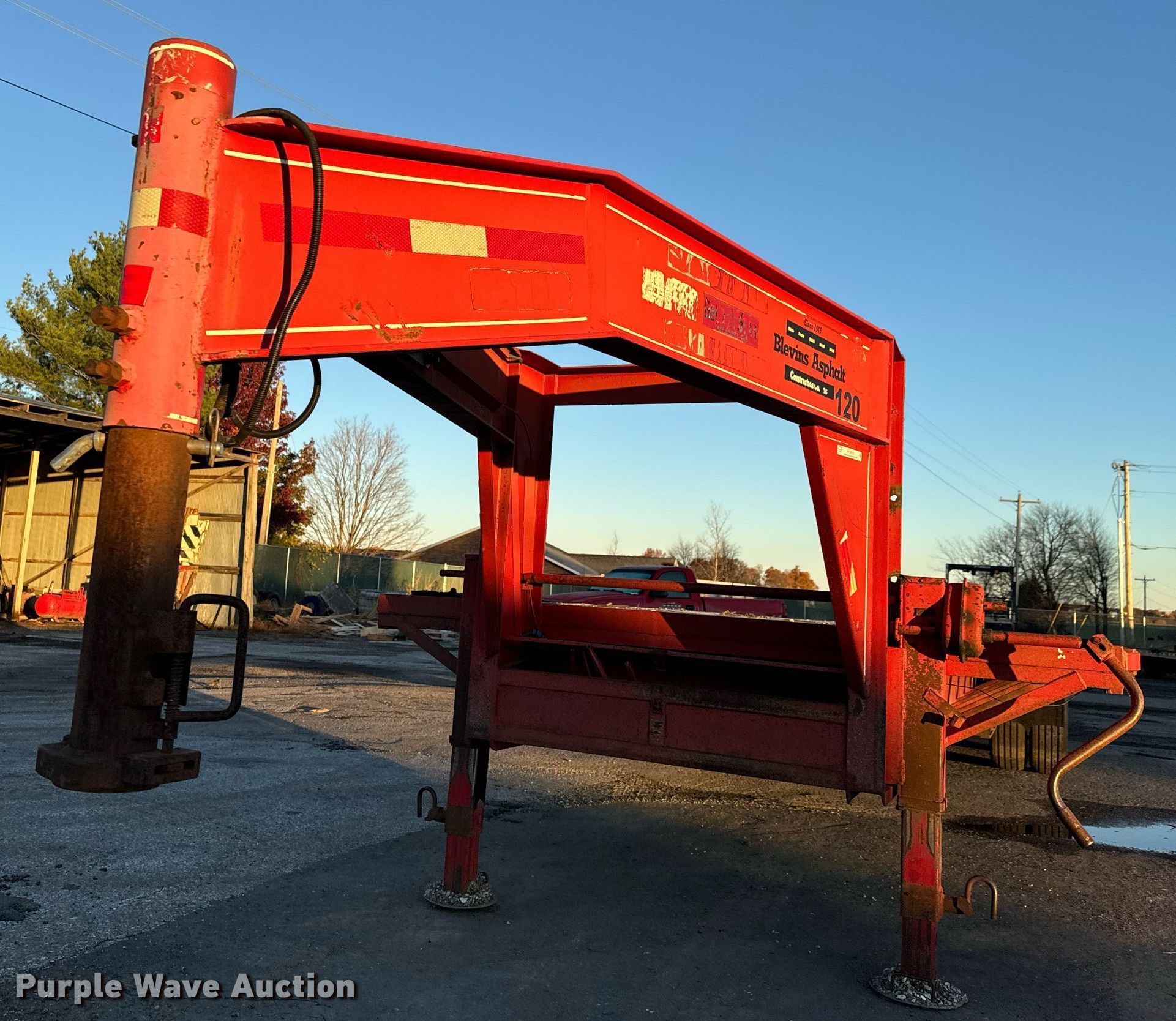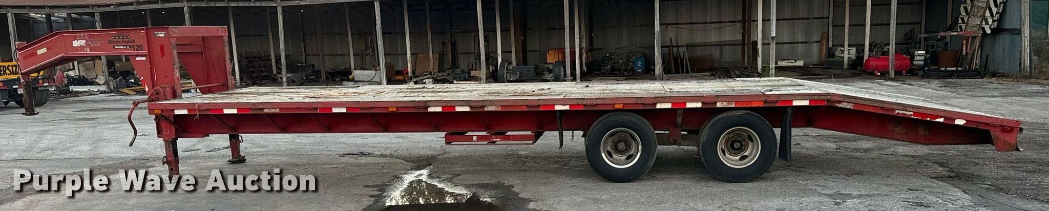 1993 Gold Star Trailers 120 equipment trailer. VIN: 4HLFS3022PT080869, Unit #: 120. Dimensions Overall: 38' L x 102" W, Deck: 24' L x 97" W, Tail length: 6', Ramps: Manual Length: 6'. Features Deck type: Wood. Chassis Hitch: Gooseneck, Landing gear: Dual, Suspension: Spring, Brakes: Electric, Axles: Tandem. Tires Steel wheels, Size: 235/85R16. Notes Decals will be removed prior to auction, Unknown operating condition of brakes. Missouri title. Title distribution may be delayed up to 14 days from verification of funds. Blevins Asphalt Construction Company Inc.. Mount Vernon, MO 65712