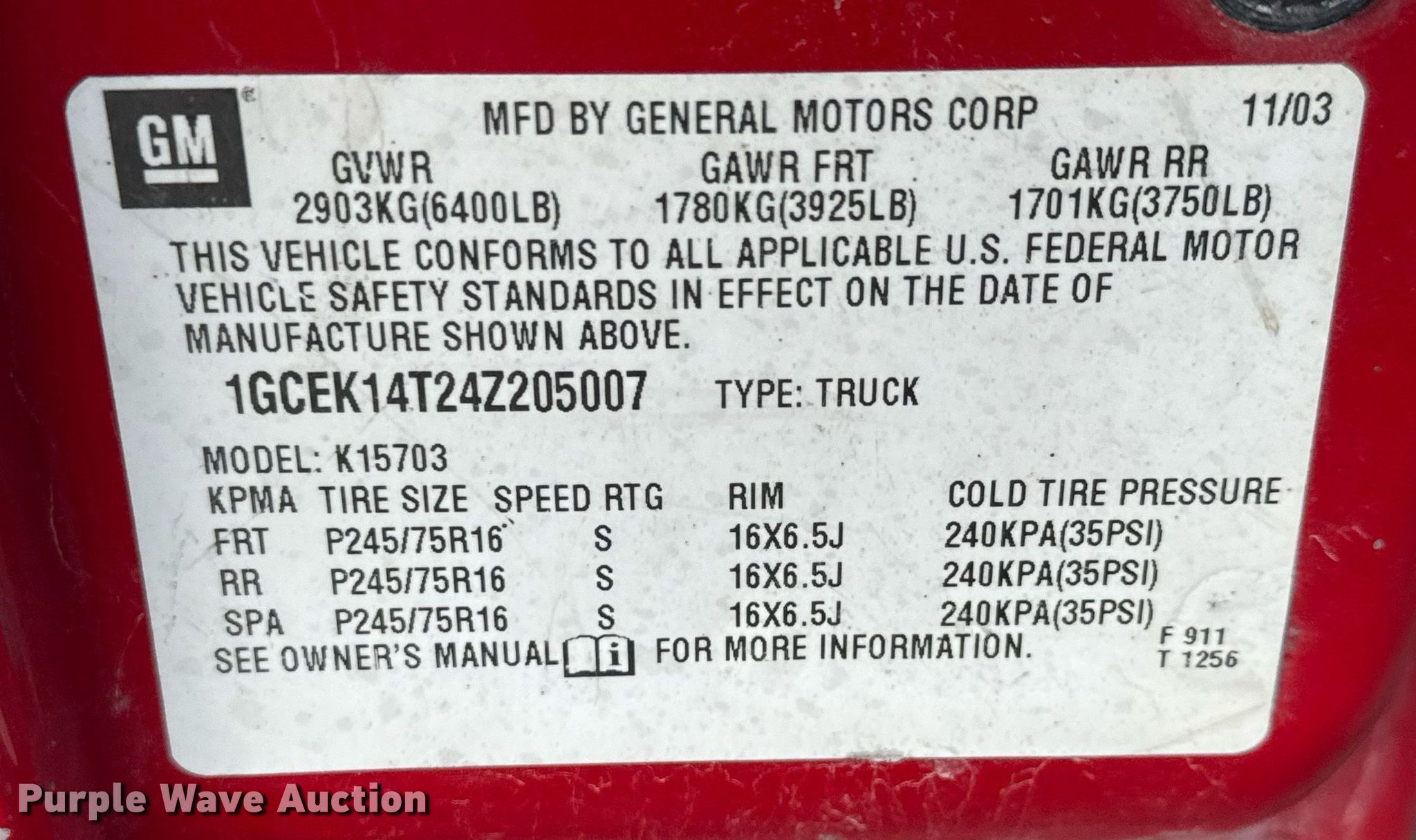 - VIN: 1GCEK14T24Z205007