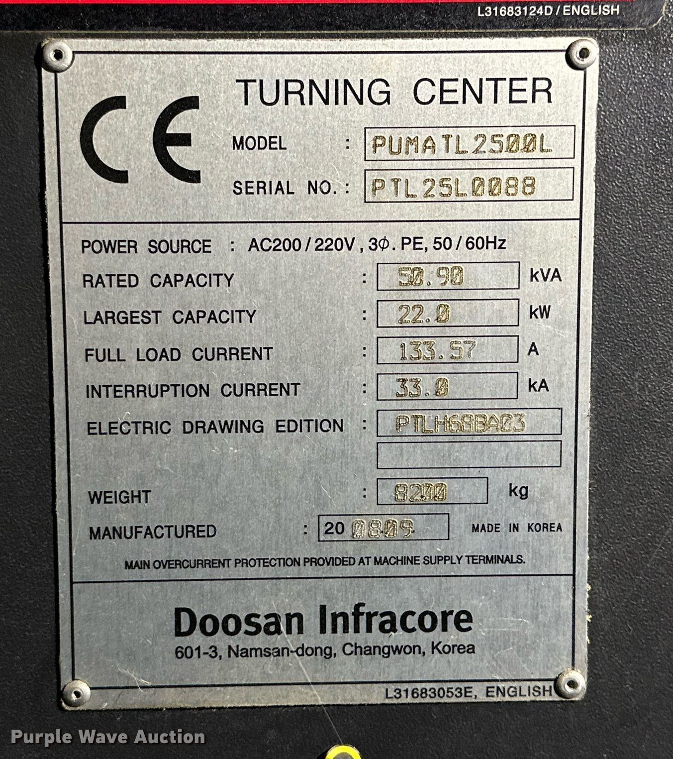 Purple Wave is selling a used Lathe CNC in Texas. This item is a 2008 Doosan Puma TL2500L CNC lathe with the following: Serial: PTL25L0088