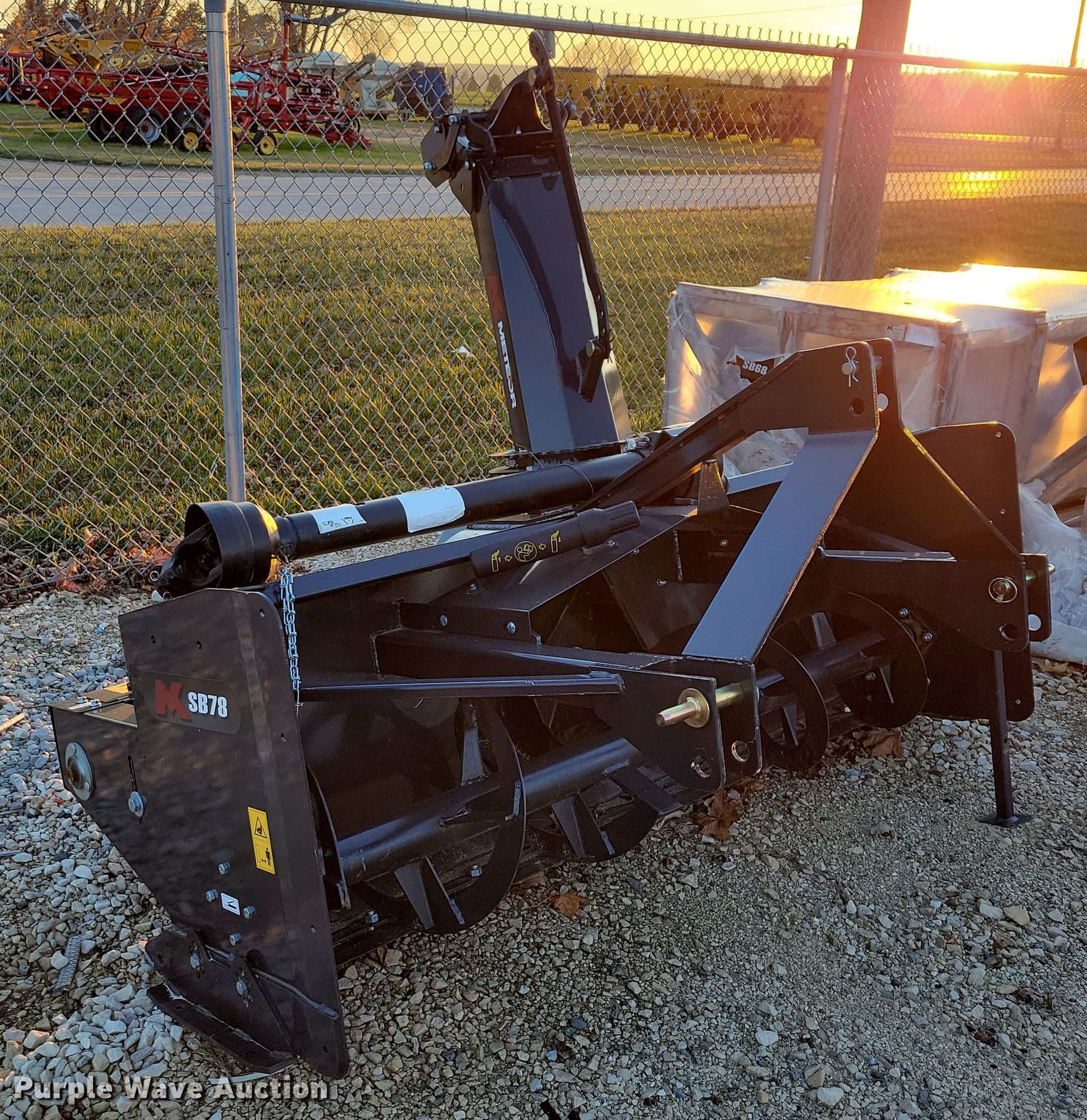 MK Martin SB78PT-C snow blower. Serial: K2380. Features PTO: 540, Hitch: Three point. Notes Unused. Parallel AG. Emmetsburg, IA 50536