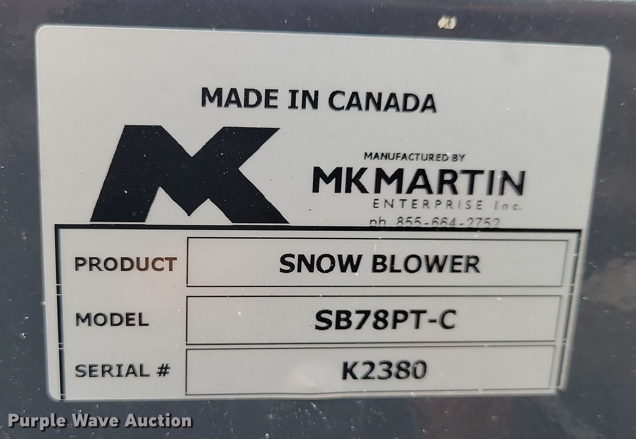 Purple Wave is selling a used Ag Tractor Loader or Attach. in Iowa. This item is a MK Martin SB78PT-C snow blower with the following: Serial: K2380