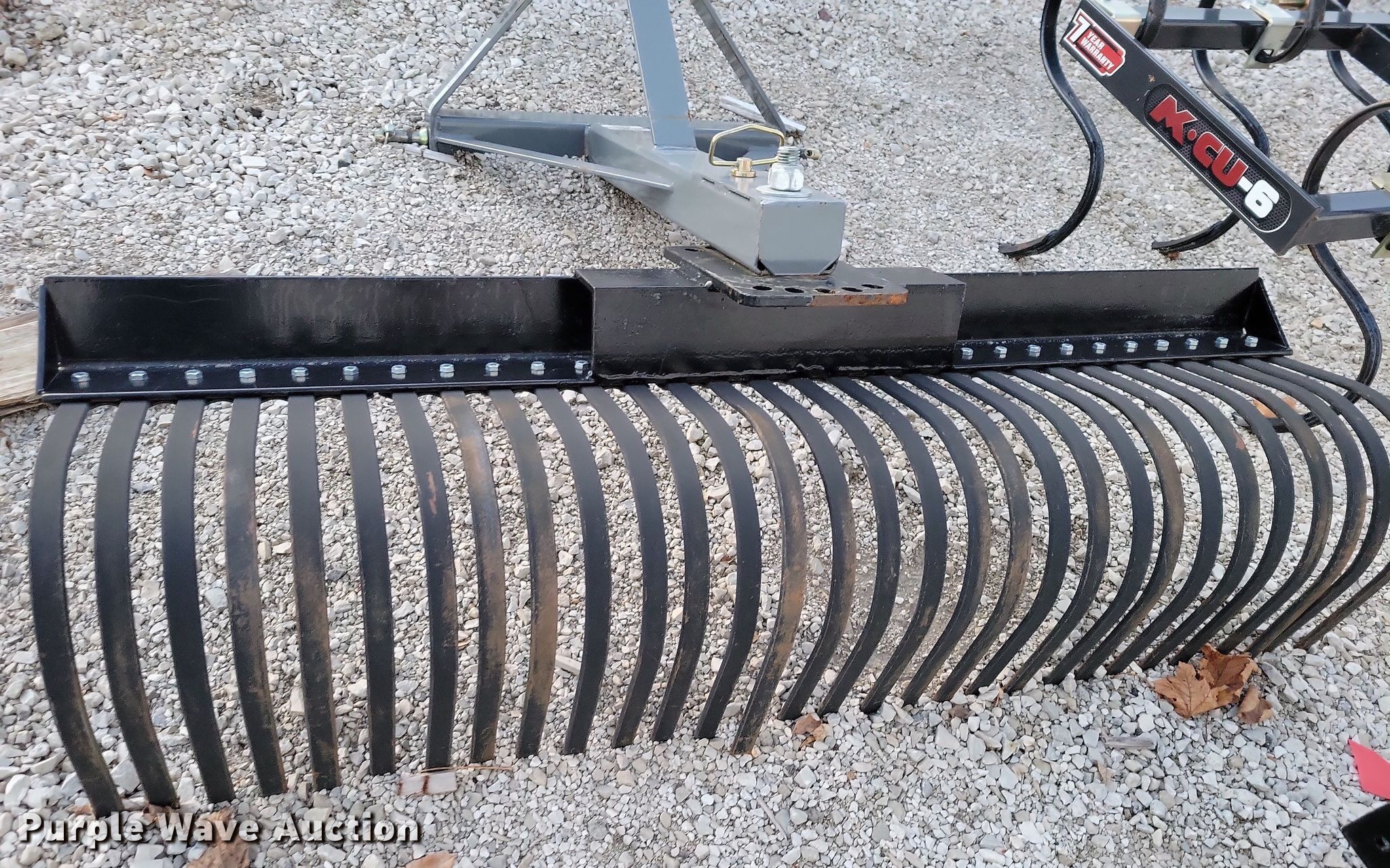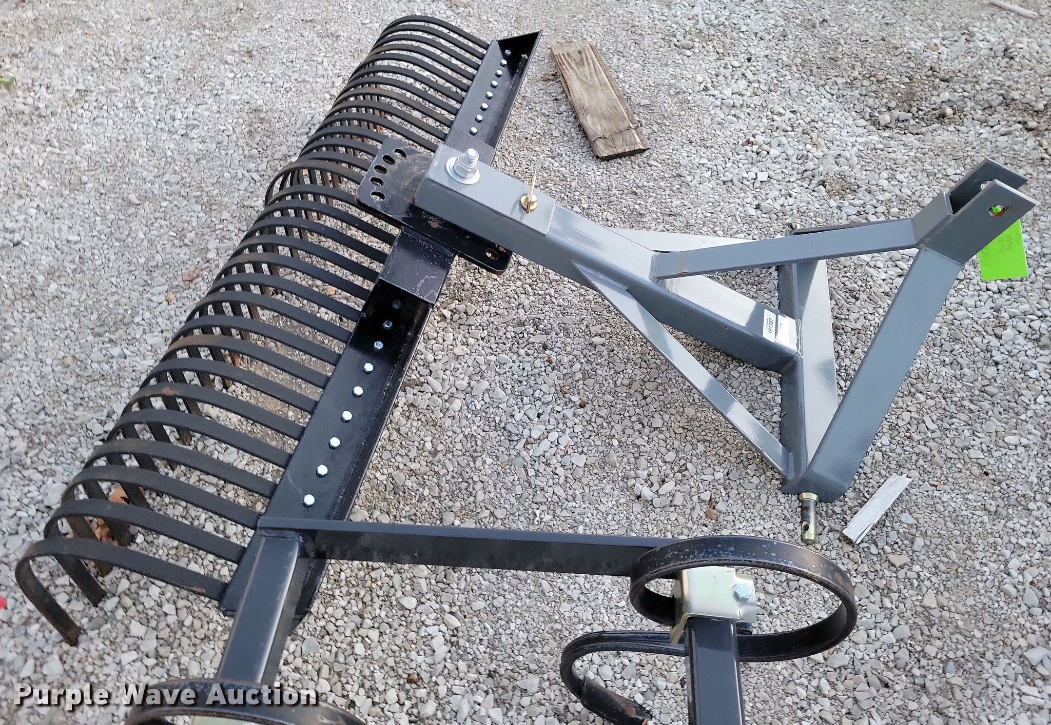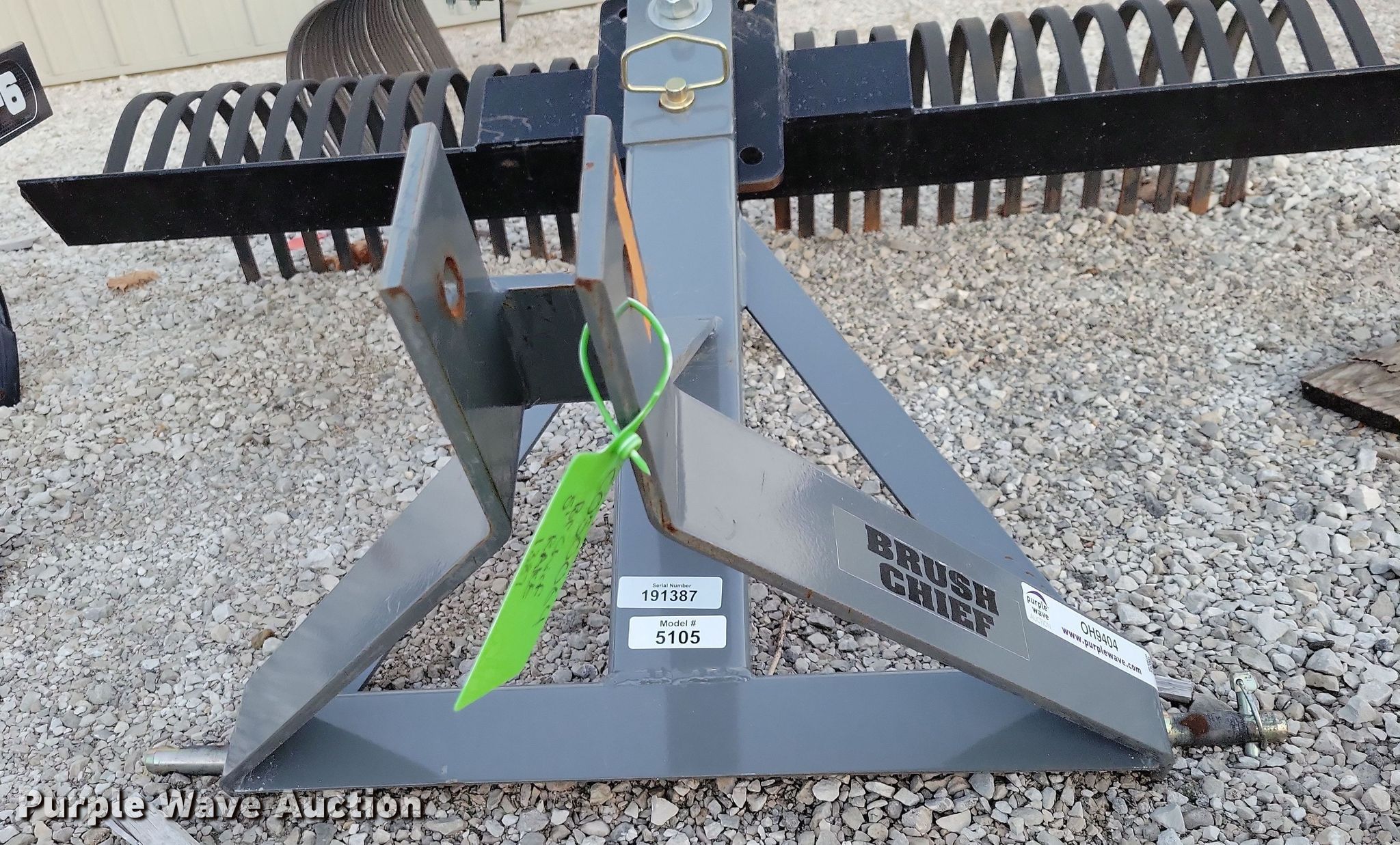 Purple Wave is selling a used Ag Tractor Loader or Attach. in Iowa. This item is a Brush Chief 5105 landscape rake with the following: Serial: 191387, Hitch: Three point, Width: 5'