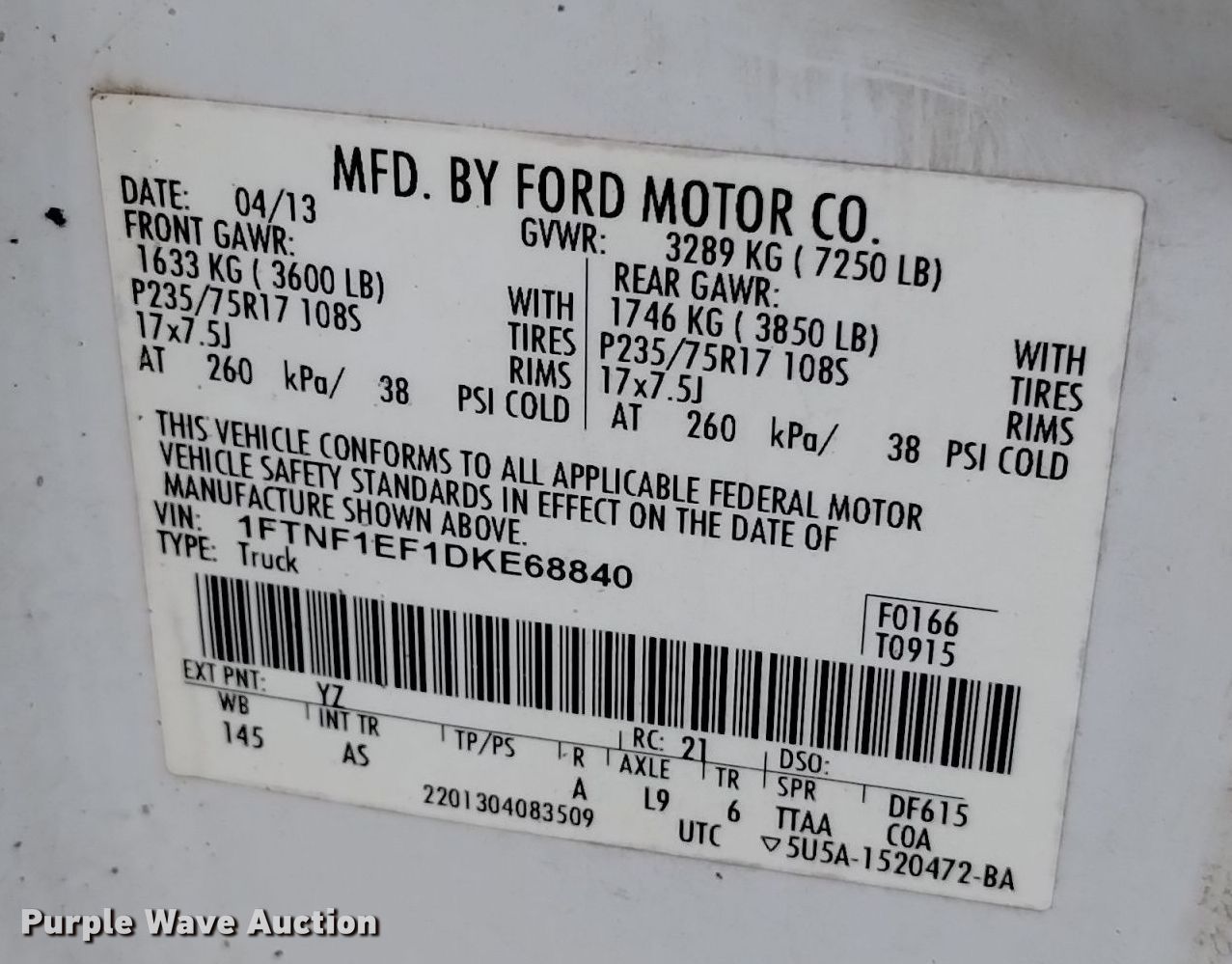 Purple Wave is selling a used 1/2 Ton Pickup or Van in South Carolina. This item is a 2013 Ford F150 pickup truck with the following: Miles: 266,518 on odometer, VIN: 1FTNF1EF1DKE68840