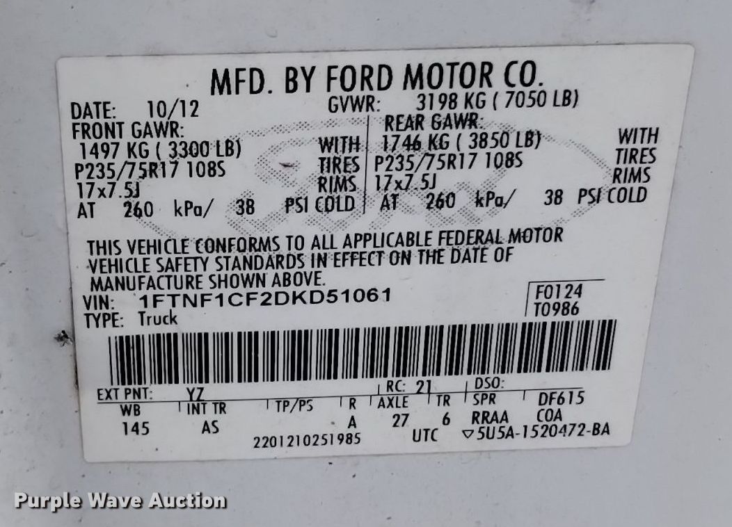 - VIN: 1FTNF1CF2DKD51061