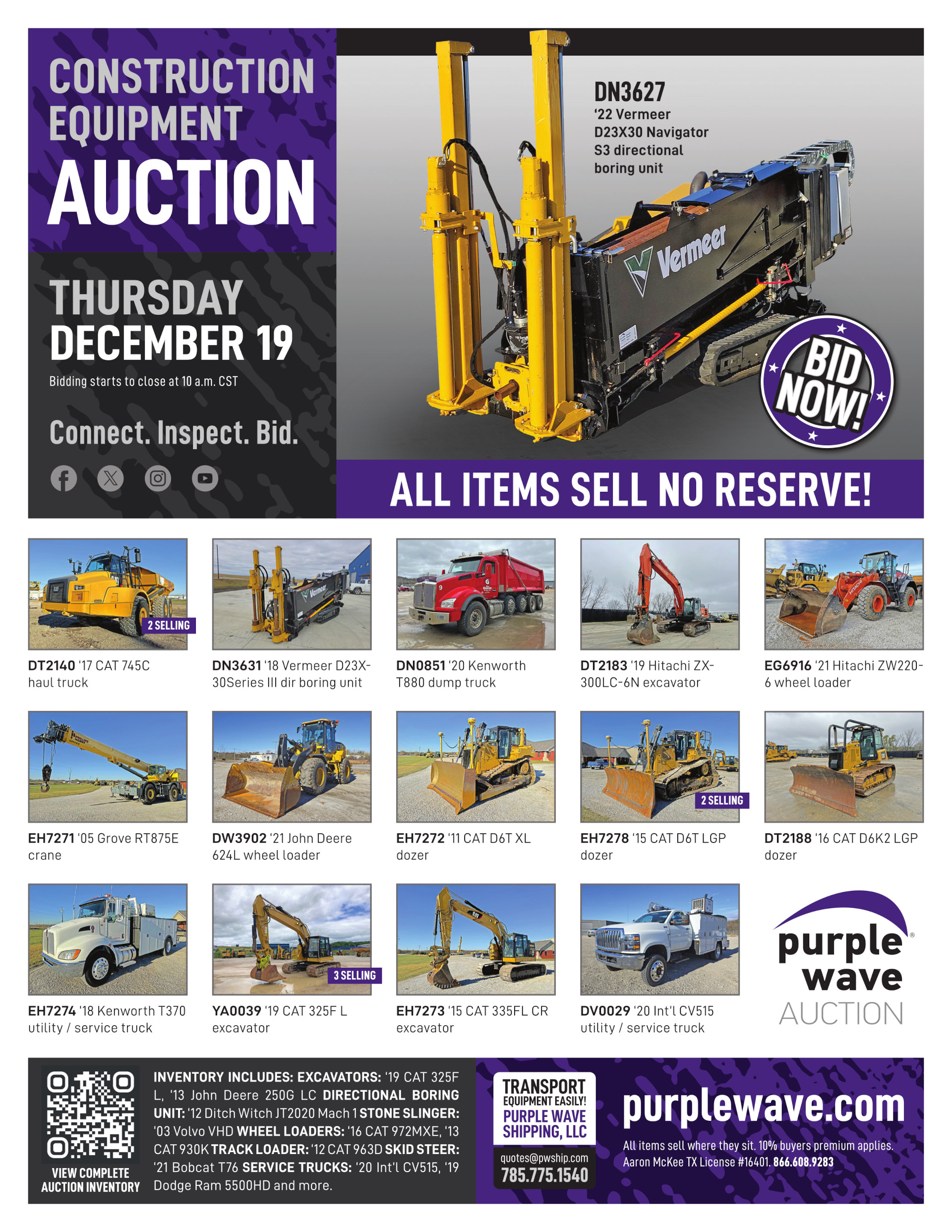 This auction is conducted by Purple Wave, Inc., whose home office is 825 Levee Drive, Manhattan, Kansas. Aaron McKee, Texas auctioneer license # 16401, operates Purple Wave, Inc. Complaints against us may be directed to the Texas Department of Licensing and Regulation, P.O. Box 12157, Austin, Texas 78711, (512) 463-6599. For additional required information, see the attached document.