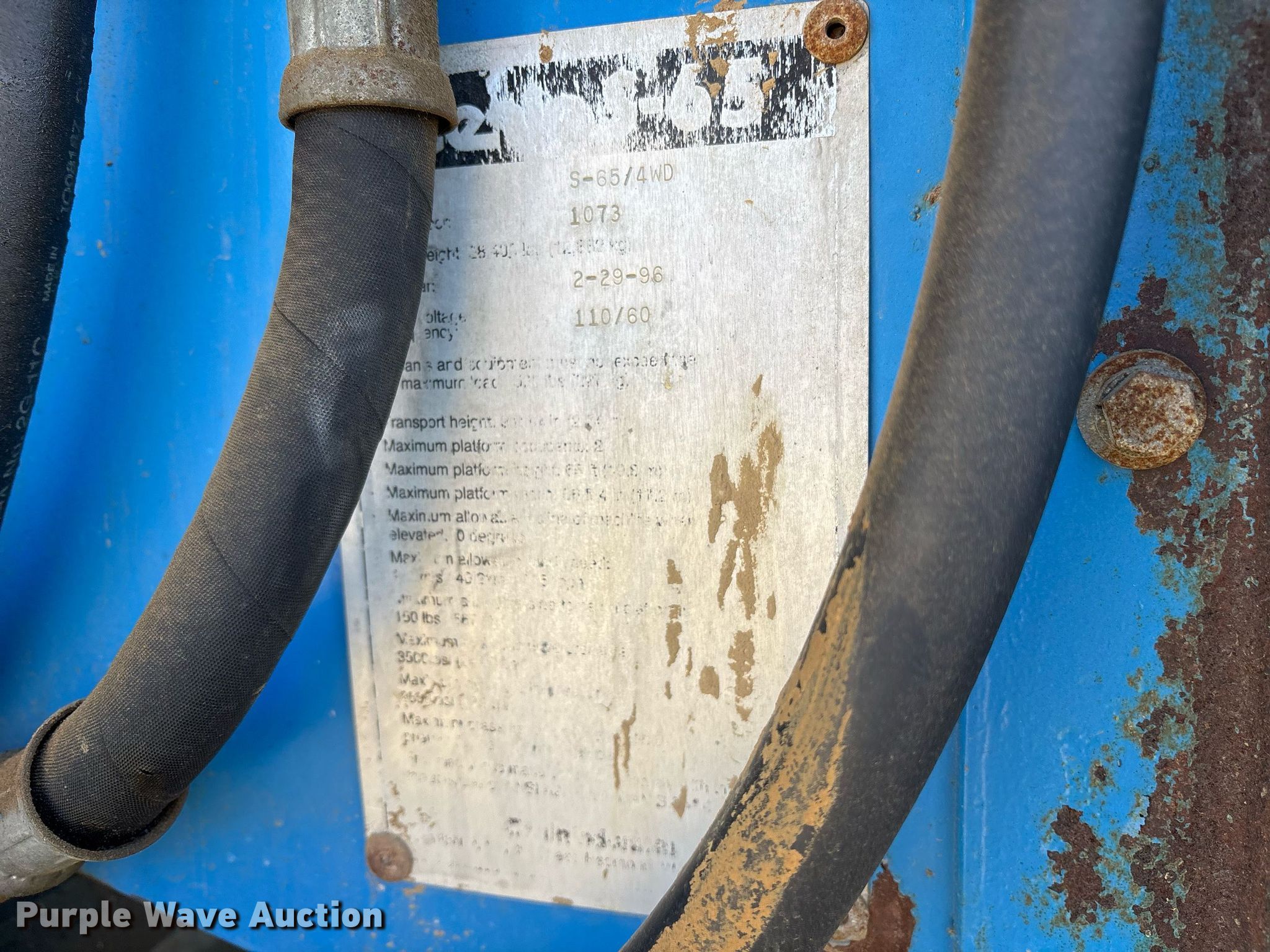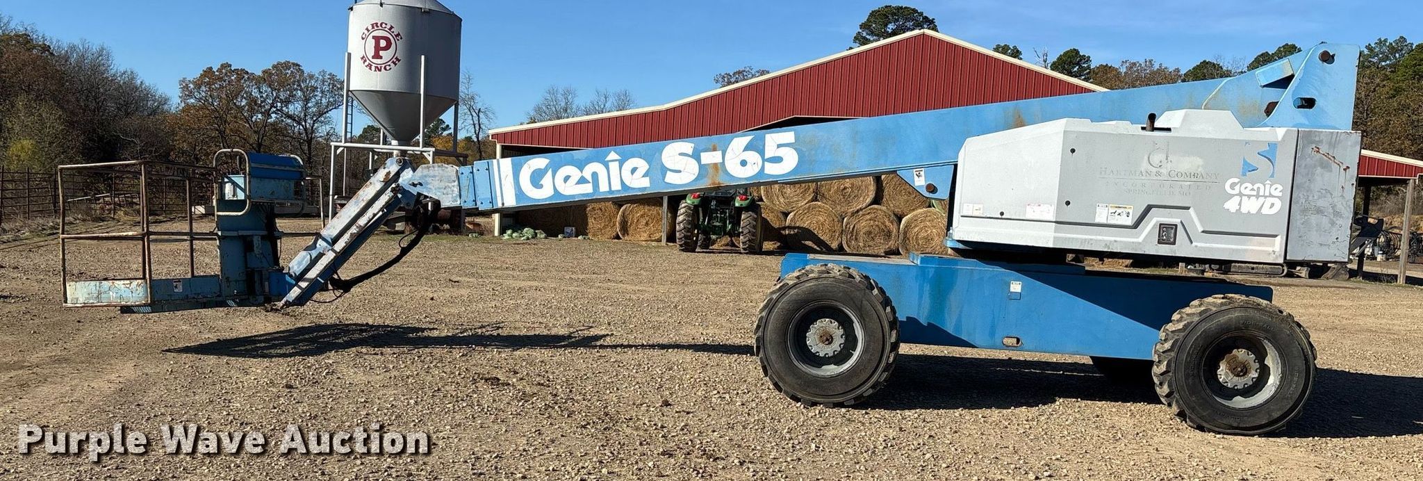 Purple Wave is selling a used Boom Lift in Oklahoma. This item is a 1996 Genie S-65 boom lift with the following: Hours: 6,712 on meter, Serial: 1073