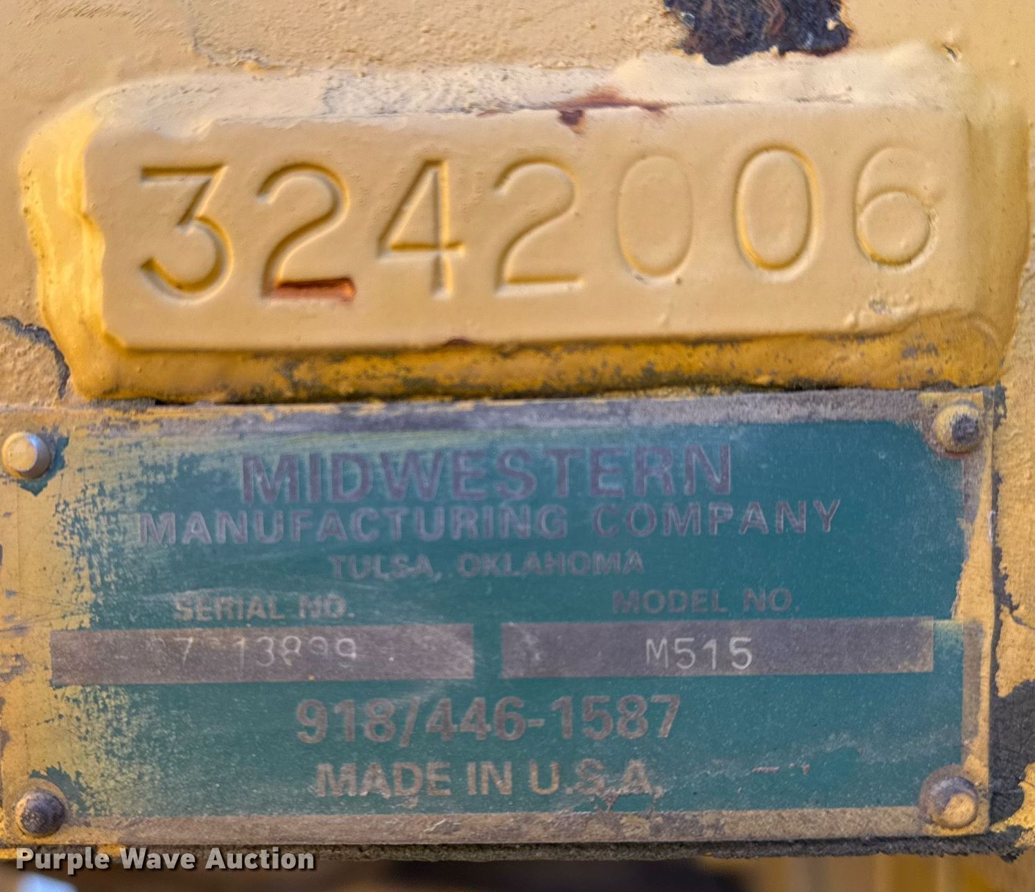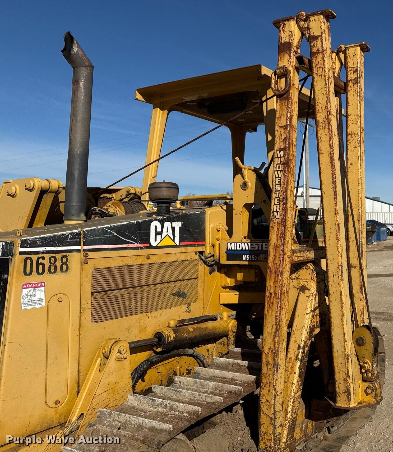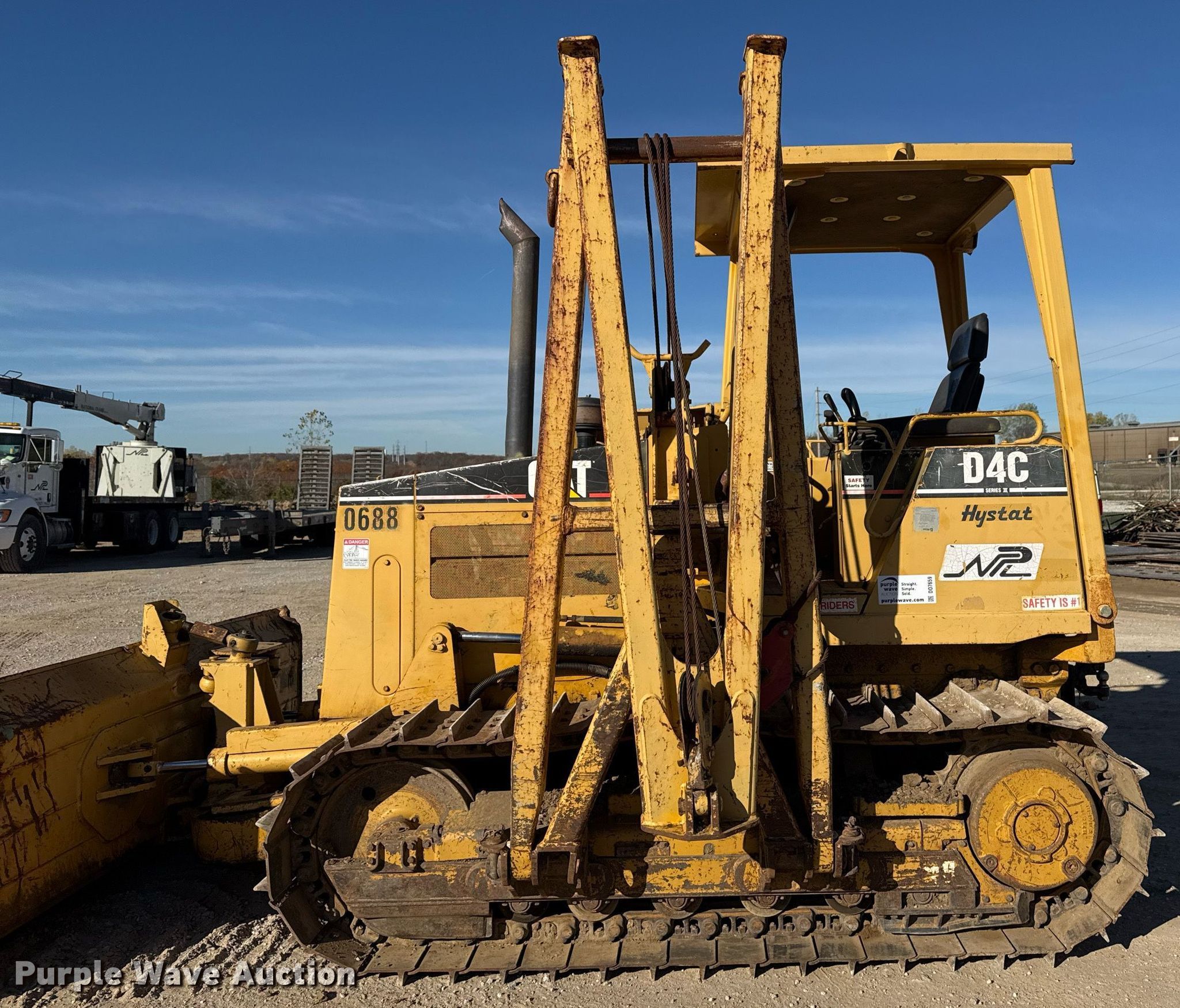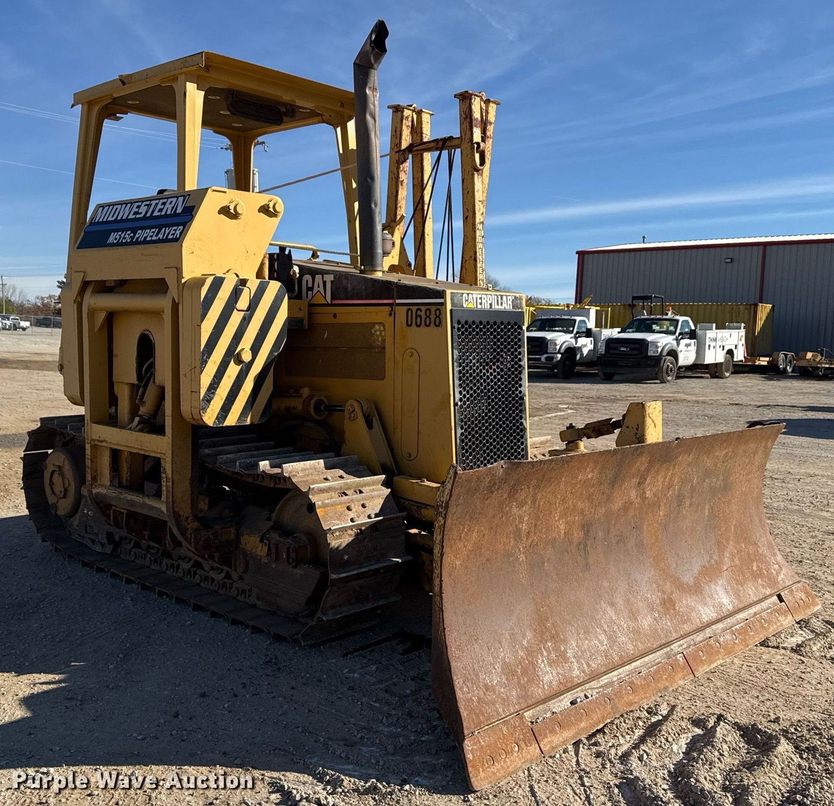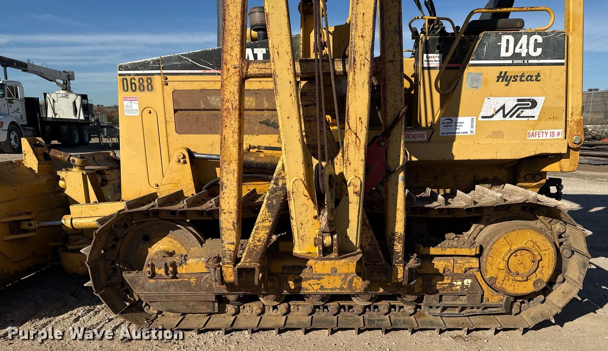 Caterpillar D4C Series II pipelayer. Hours: 5,696 on meter, Unit #: 6688. Engine Caterpillar, Cylinders: 6, Fuel type: Diesel. Transmission Hydrostatic. Operators station OROPS, Canopy, Steering: Joystick. Features Dozer blade Type: 6-way, Straight, Width: 107" W, Attachments Pipelayer Midwestern M515C, Boom: Folding, Boom length: 7'.. Tracks Width: 18", Grouser pads: Single, Bottom rollers: 6, Track guards. Notes Non-operational pipelayer, Blade hydraulic leak. NPL Construction. Tulsa, OK 74131