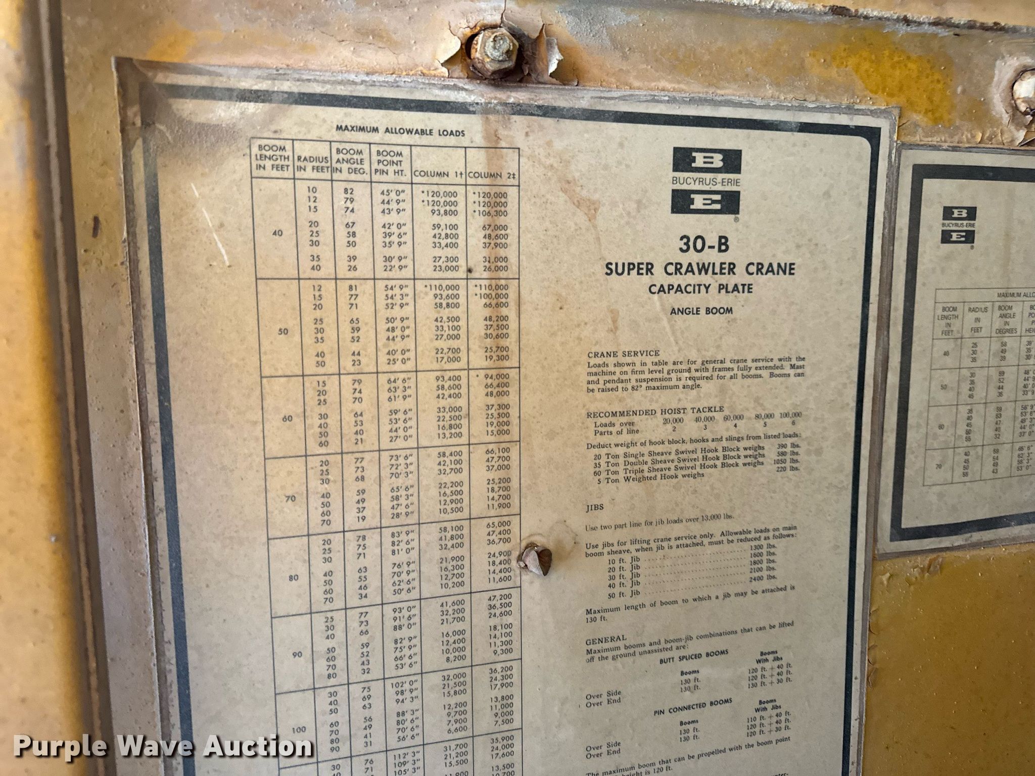 Purple Wave is selling a used Crawler Crane in Missouri. This item is a 1970 Bucyrus-Erie 30-B crane with the following: Hours: 3,447 on meter, Serial: 132005