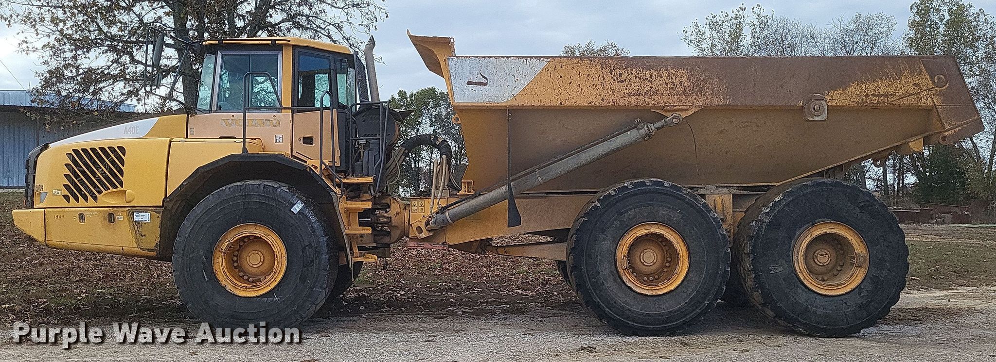 Purple Wave is selling a used Articulated Haul Truck in Missouri. This item is a 2008 Volvo A40E haul truck with the following: Hours: 15,929, Serial: A40EV11316, Unit #: 150004