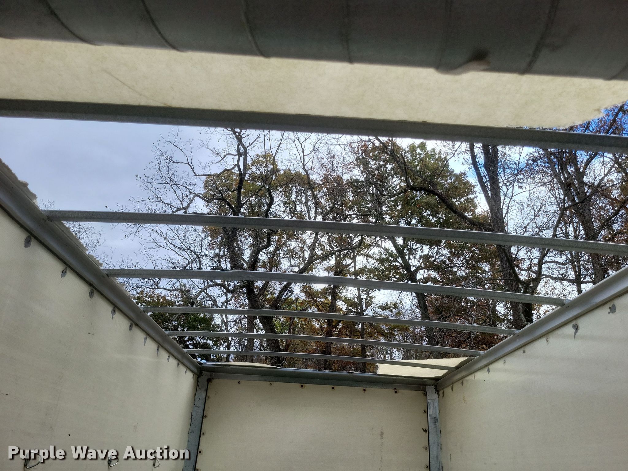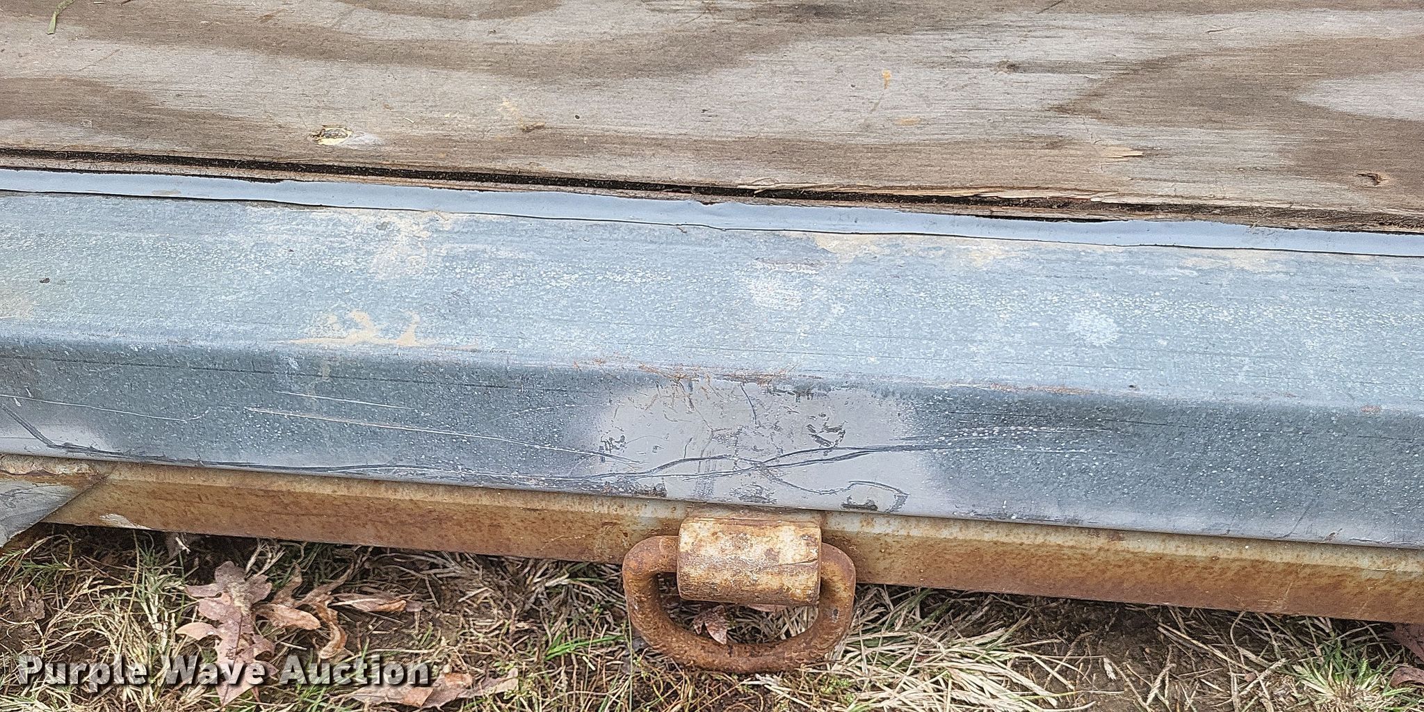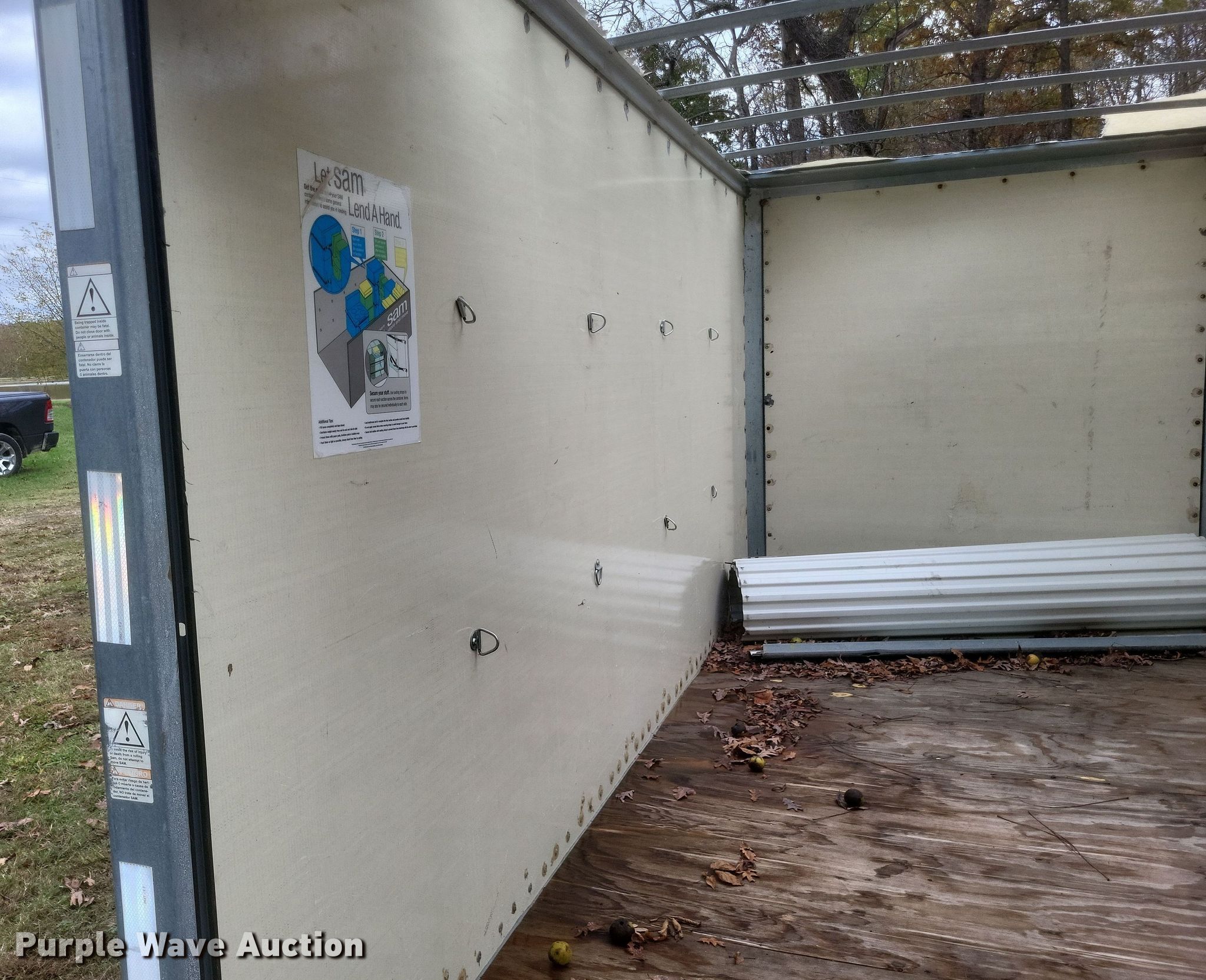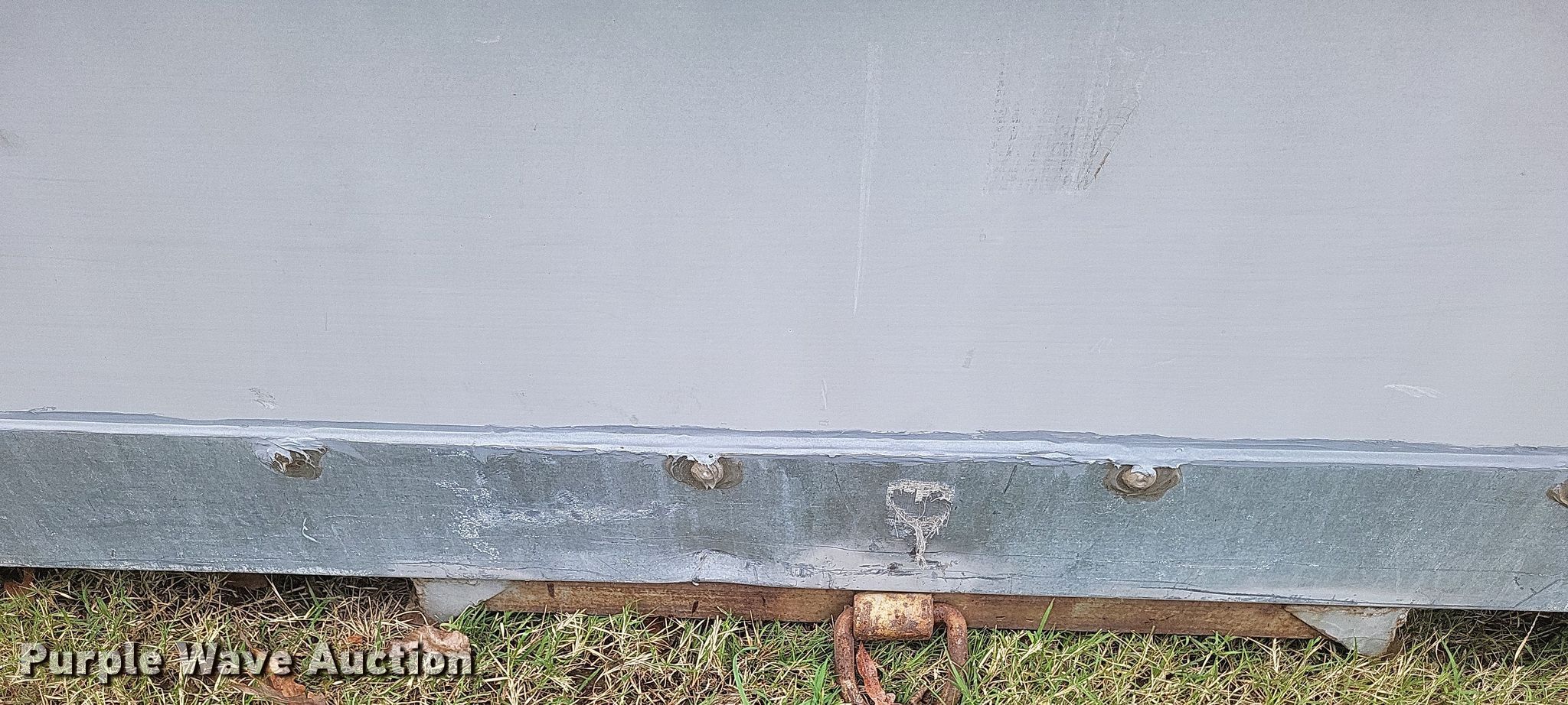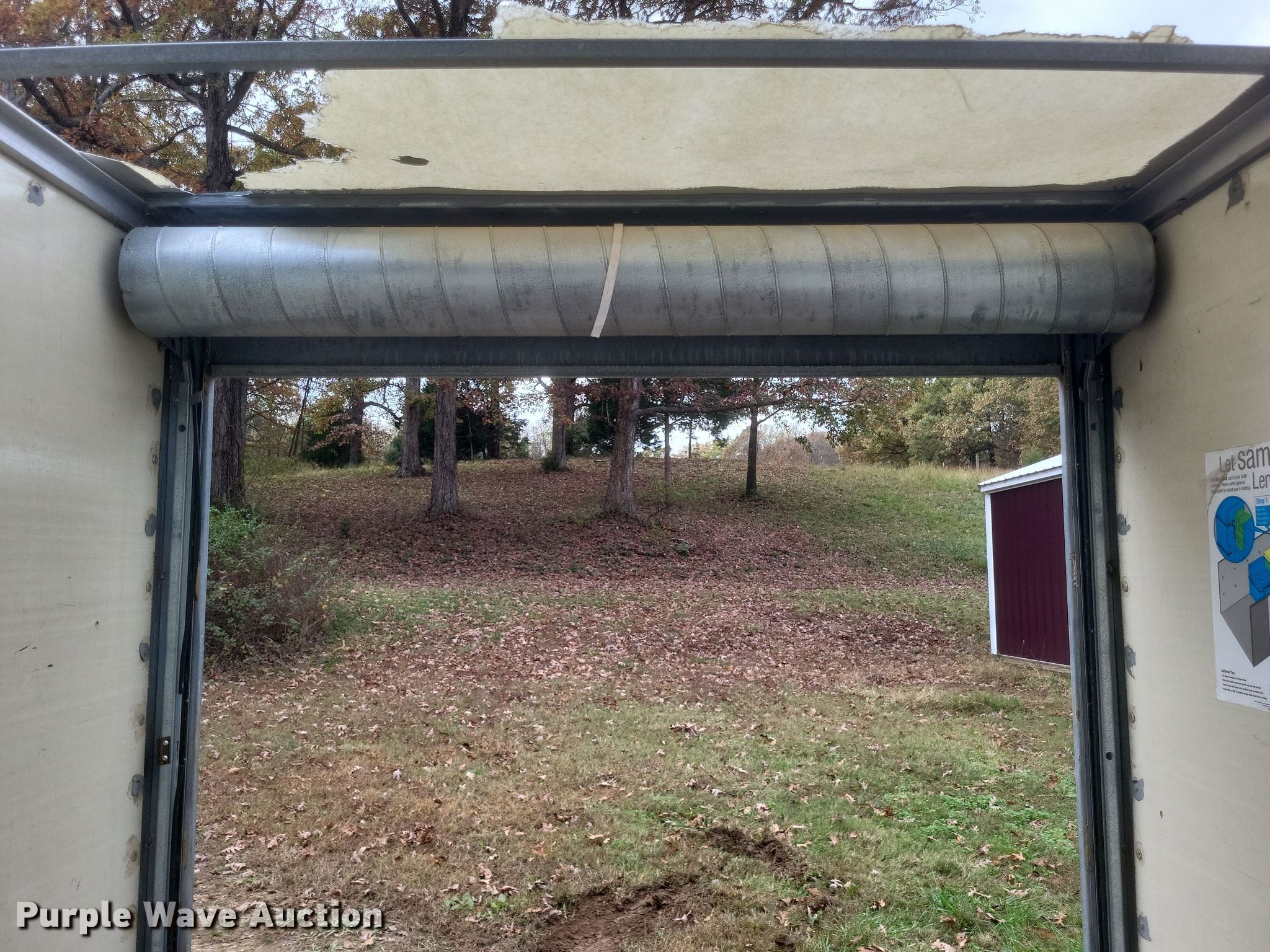 Storage container. Approximately dimensions 16' x 92"x 101", Wood floor, Four castors. Notes Roof missing, Rear roll up door removed, but included. Jarrell Construction LLC. Bloomfield, MO 63825