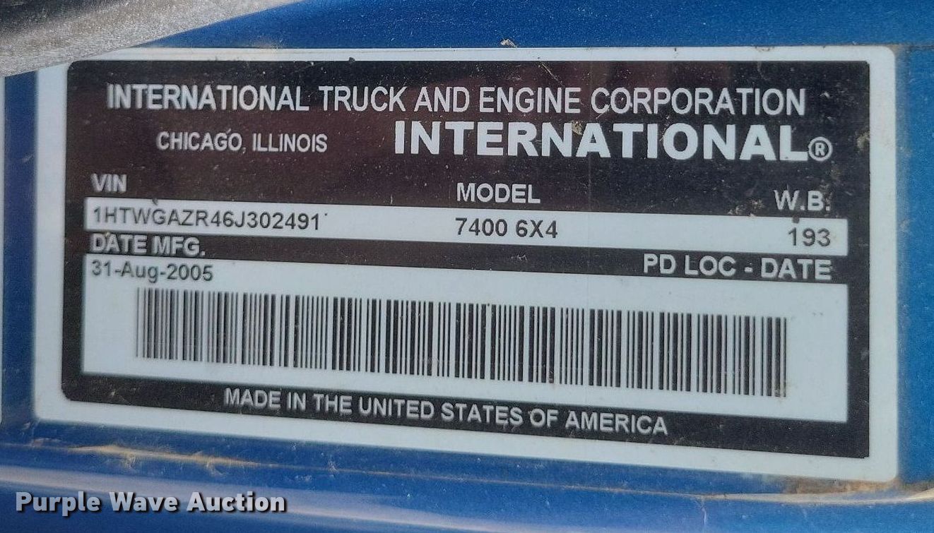 Purple Wave is selling a used Tank Truck or Water Truck in Illinois. This item is a 2006 International 7400 6x4 water truck with the following: Miles: Unknown, VIN: 1HTWGAZR46J302491, Unit #: 2491