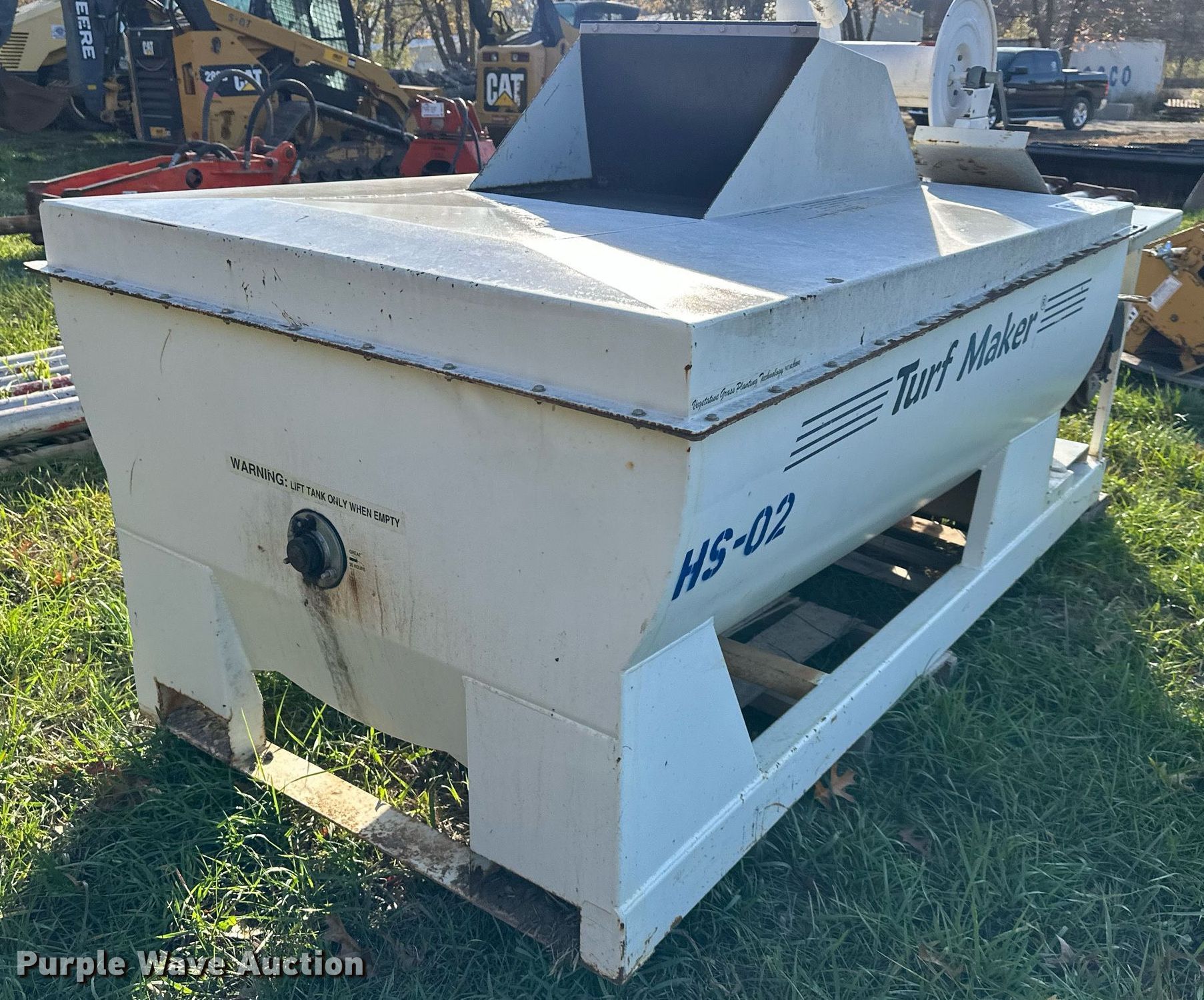 Turf Maker hydroseeder. Engine. Honda, Cylinders: 1, Fuel type: Gas. Features Hose reel, Tank, Skid mounted, 8' L x 55" W. Notes Parts missing, Unknown operating condition. Smithville, MO 64089