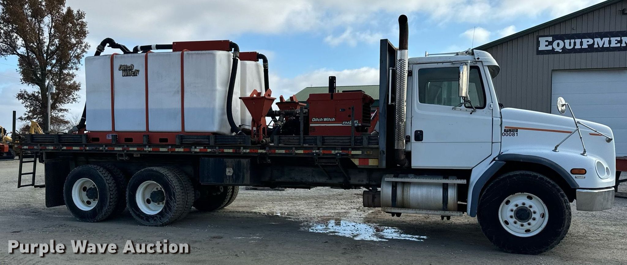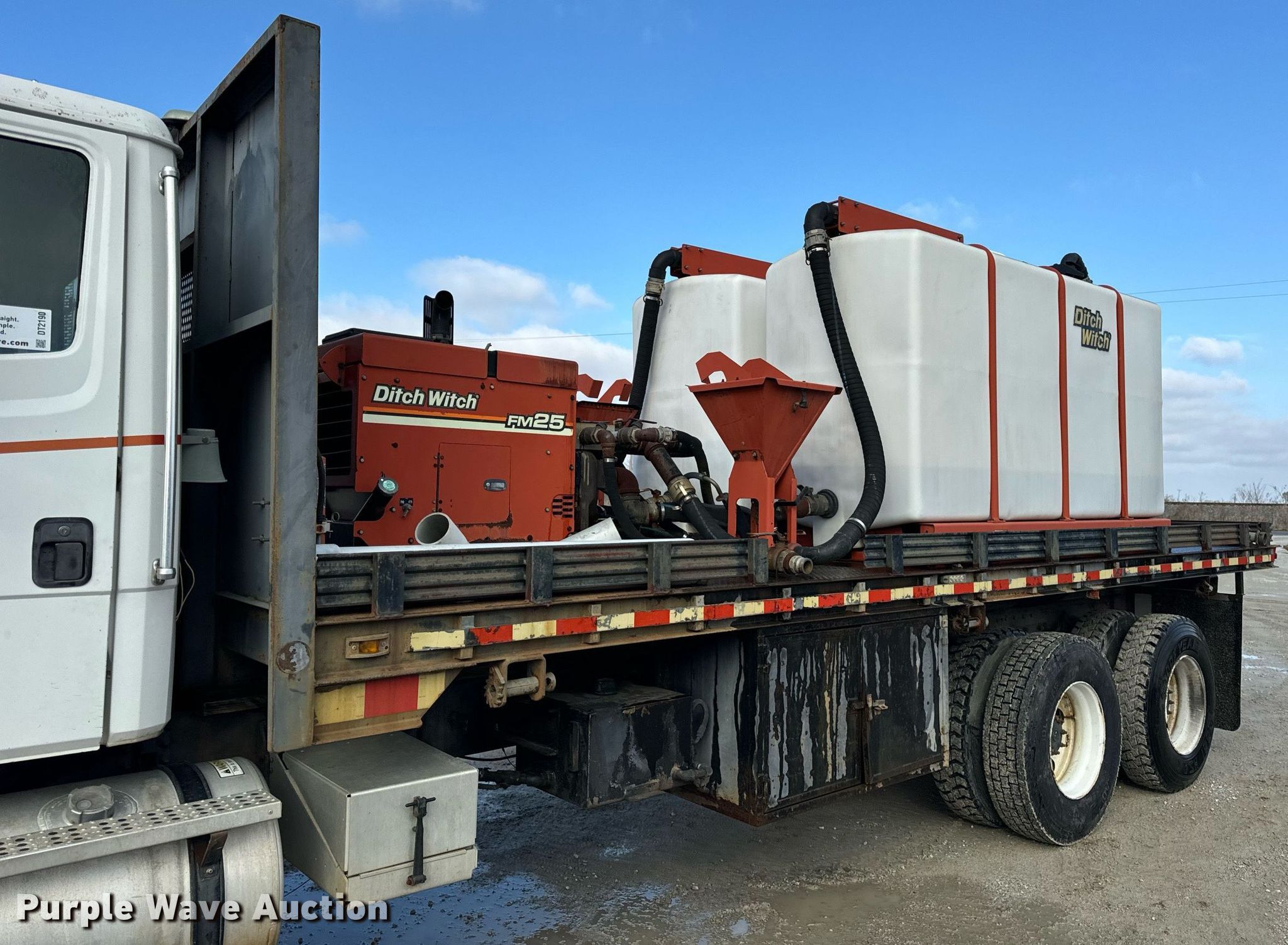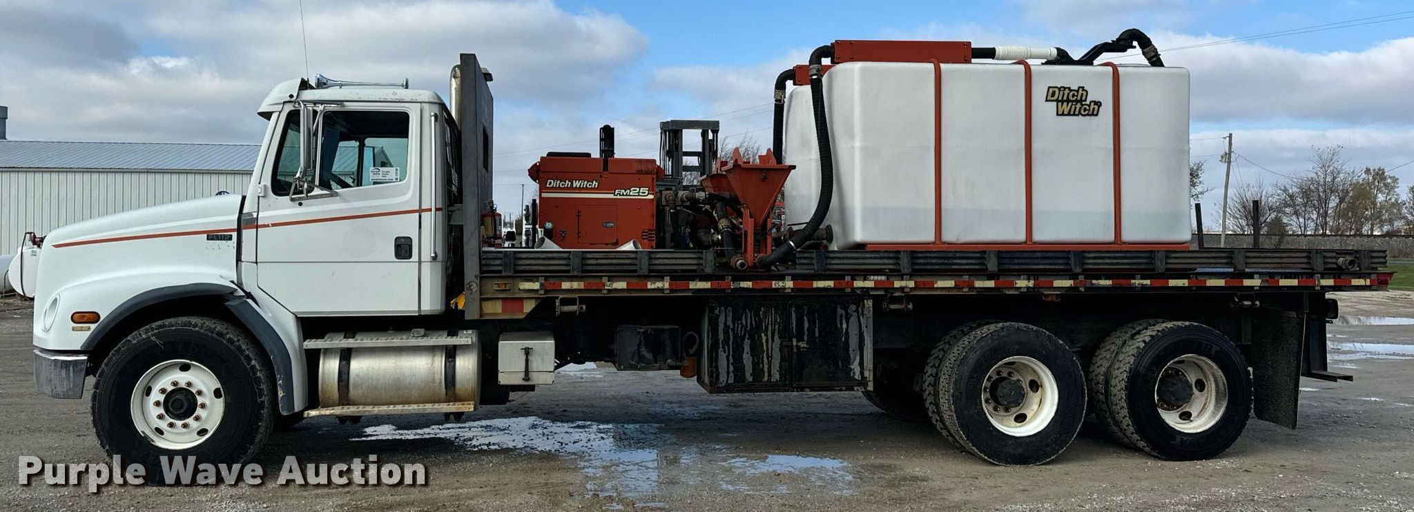 2000 Freightliner FL112 flatbed truck. Miles: 11,363 on odometer, ECM miles: 216,882, VIN: 1FVXTEDB5YHB89991. Engine Caterpillar C12, Displacement: 10.3L, Cylinders: 6, Fuel type: Diesel. Transmission Manual. Chassis Axles: Tandem, Suspension: Spring over walking beam, Brakes: Air, PTO, GVWR: 62,000 lbs. Interior AC, Heat, Cruise control, Brake controller. Features Flatbed 23' L x 95" W. Tires Front: 425/65R22.5, Rear: 11R22.5. Notes Dash warning indicator: ABS. Ditch Witch FM25 fluid mixer Engine Kubota D1105, Cylinders: 3, Fuel type: Diesel. Features (2) 3" fluid pumps, (2) solution tanks Capacity: 1000 gallons. Georgia title. Mileage has not been verified. Exempt will be written in the odometer disclosure on the title. Seller is an Illinois licensed motor vehicle dealer. The buyer may be required to pay sales tax and/or registration fees to the dealer prior to taking possession. Title will be assigned and distributed by the dealer. Please contact the seller for distribution questions. EquipmentCity LLC. Clinton, IL 61727