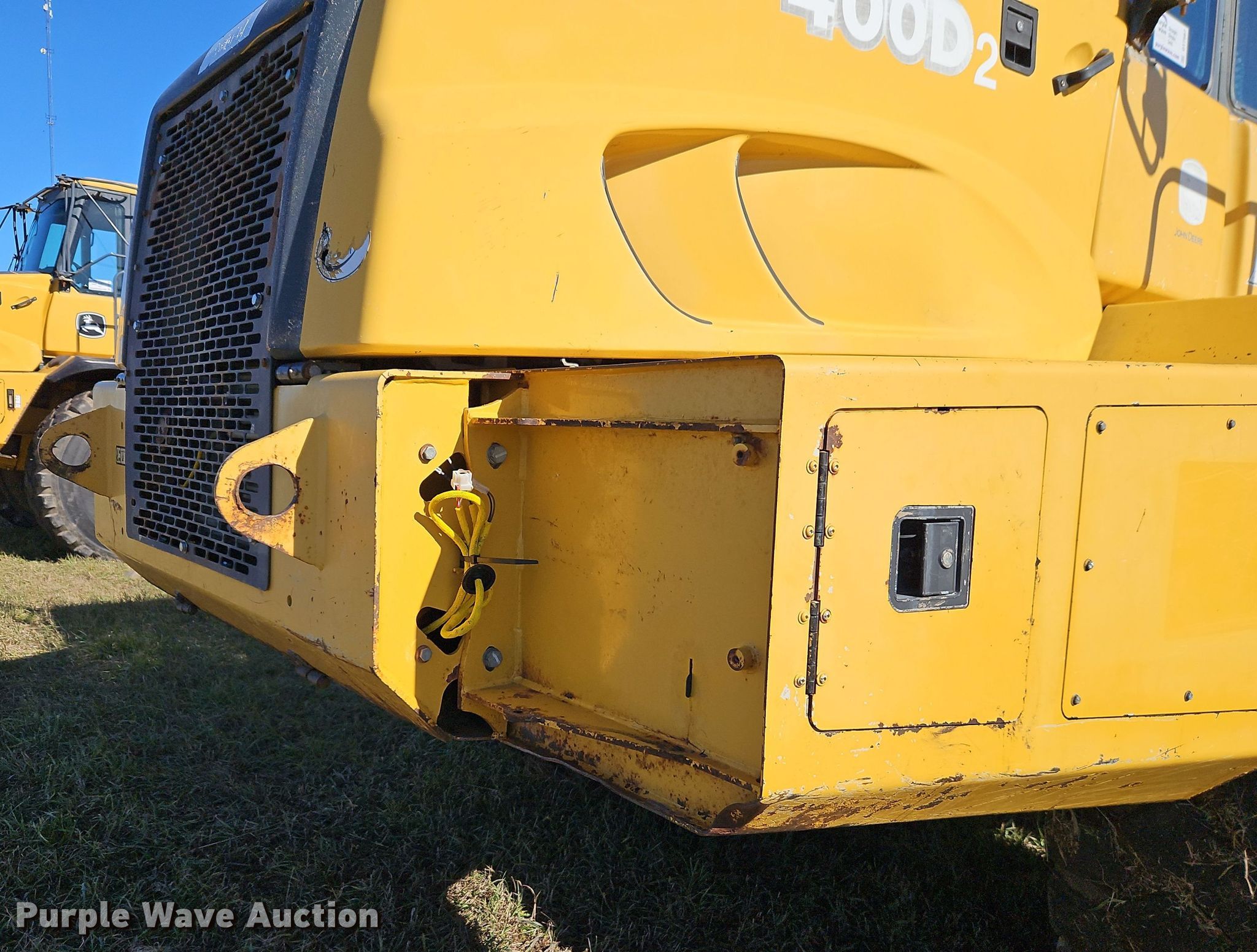 2006 John Deere 400D haul truck. Hours: 14,678 on meter, Serial: BE400DT201690. Engine Mercedes-Benz, Displacement: 11.9L, Cylinders: 6, Fuel type: Diesel. Transmission Automatic. Chassis Six wheel drive. Interior AC, Heat. Tires Size: 29.5R25. Rubick Construction. Williamsburg, KS 66095