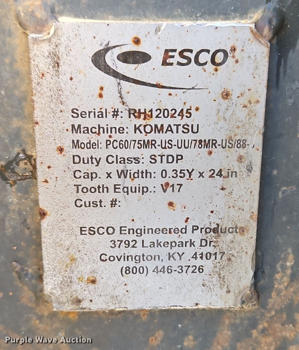 2008 Komatsu PC78MR-6 mini excavator. Hours: 6,259 on meter, Serial: KMTPC029L01003269. Engine Model: Komatsu, Serial: S4D95LE-3, Displacement: 3.26L, Cylinders: 4, Fuel type: Diesel. Transmission Hydrostatic, Two speed travel. Operators station Enclosed cab, AC, Heat, Pattern changer. Features Two-way, Counter weights, Removable, Backfill blade Width: 97", Boom Swing, Stick Stick length: 7' 6", Quick coupler: Mechanical WB, Bucket TAG, Width: 36", Teeth: 6, Bucket WB, Width: 12", Teeth: 3, Bucket Esco, Width: 24", Teeth: 5. Tracks Width: 17.5", Rubber. Lang Dirt Services. Overbrook, KS 66524