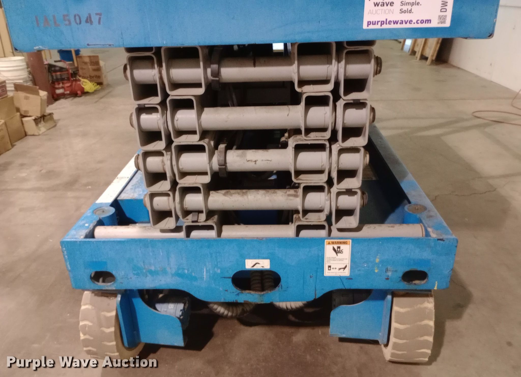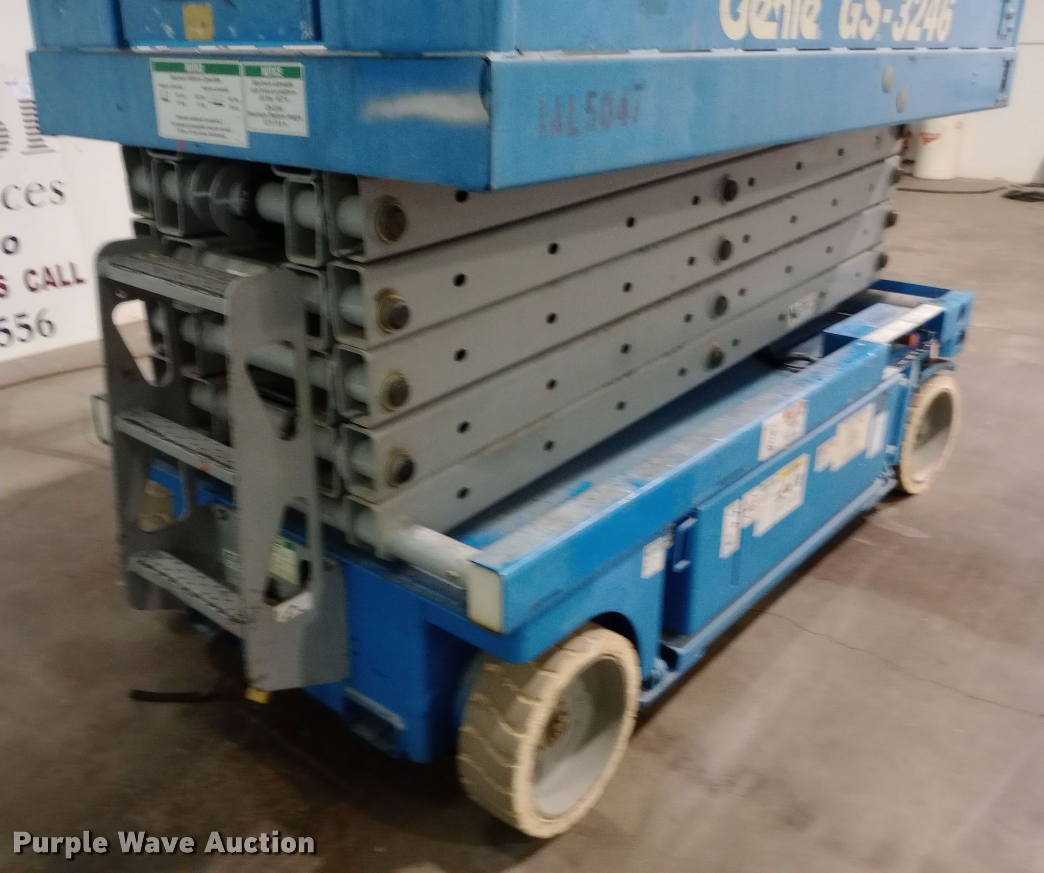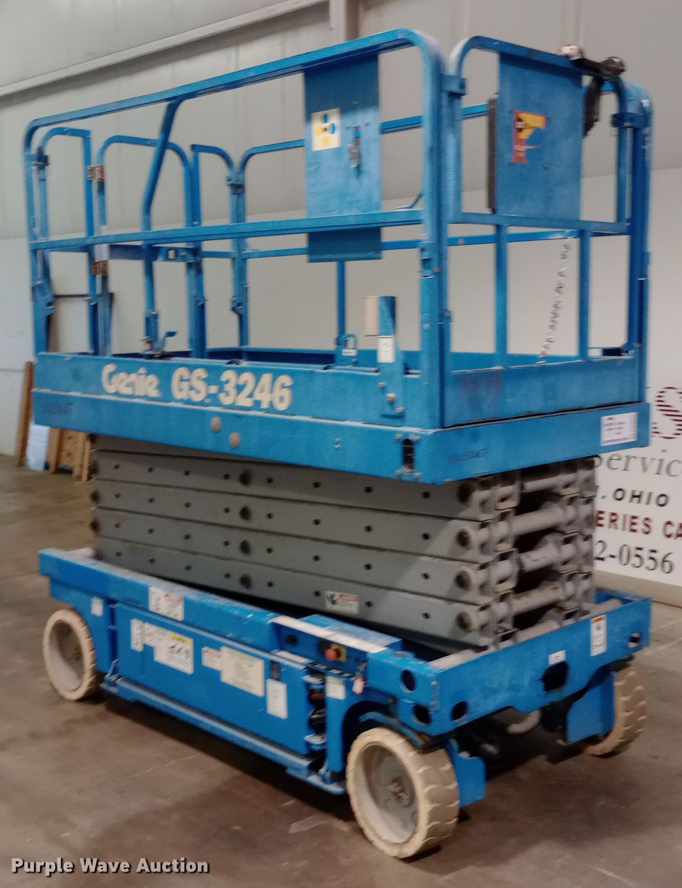 Purple Wave is selling a used Scissor or Vertical Lift in Kansas. This item is a 2002 Genie GS-3246 scissor lift with the following: Hours: 307 on meter, Serial: GS4647041