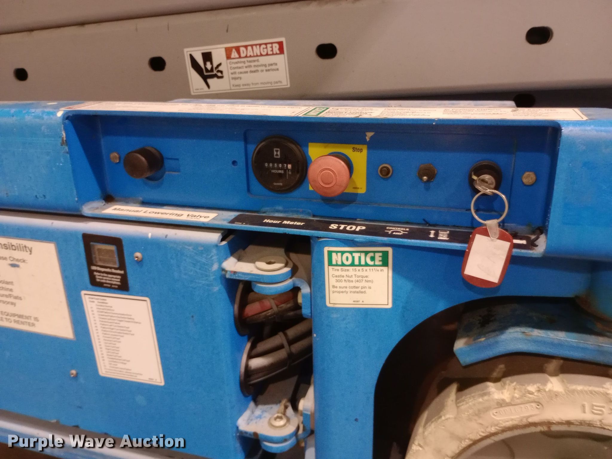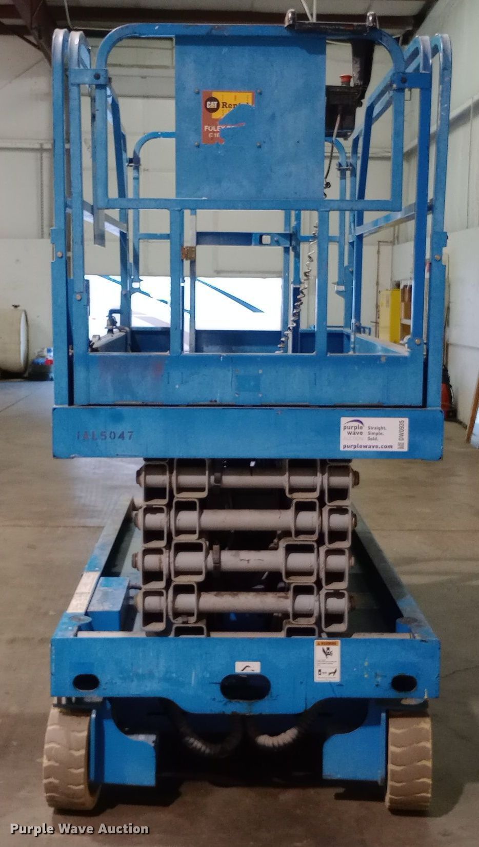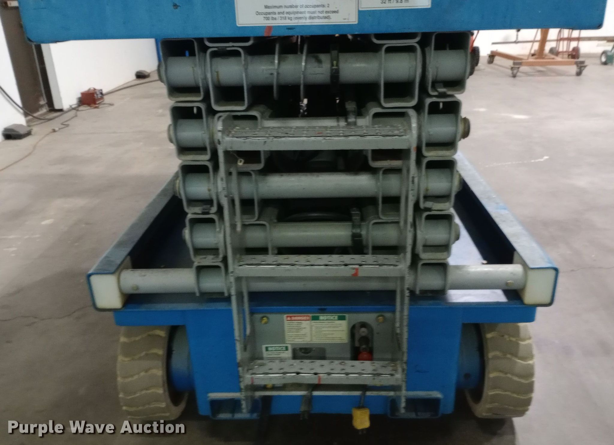 Purple Wave is selling a used Scissor or Vertical Lift in Kansas. This item is a 2002 Genie GS-3246 scissor lift with the following: Hours: 307 on meter, Serial: GS4647041