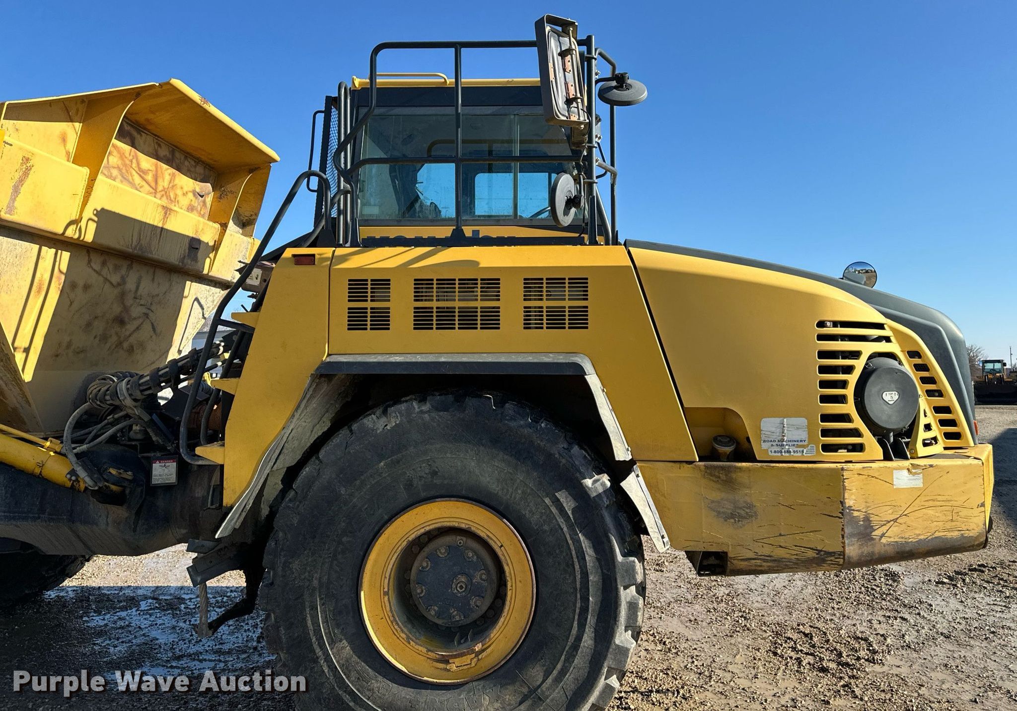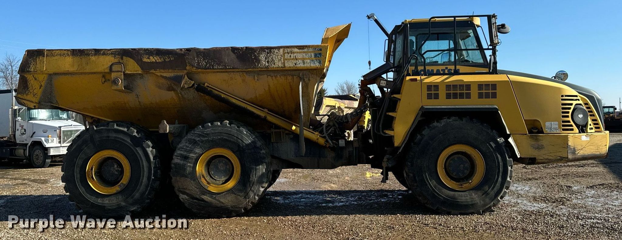 Purple Wave is selling a used Articulated Haul Truck in Iowa. This item is a 2015 Komatsu HM400-3 haul truck with the following: Miles: 71,217 on odometer, Hours: 15,888 on meter, Serial: 3641
