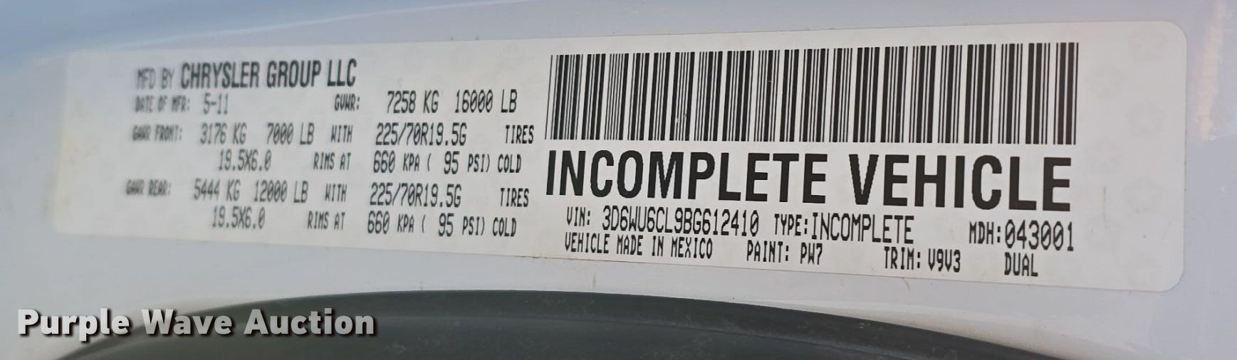 Purple Wave is selling a used Flat Bed Truck in Kansas. This item is a 2011 Dodge Ram 4500HD flatbed truck with the following: Miles: 168,325 on odometer, VIN: 3D6WU6CL9BG612410