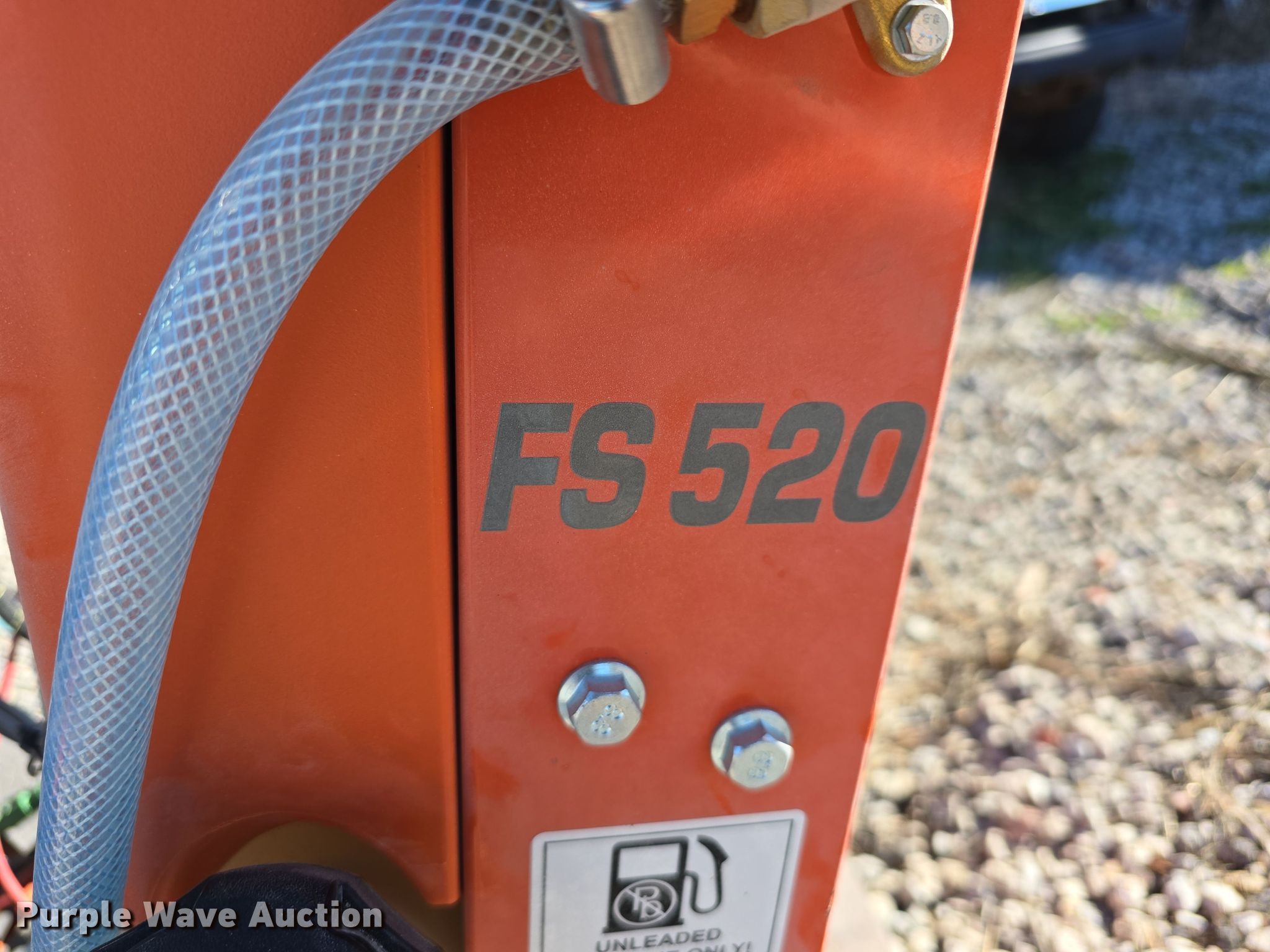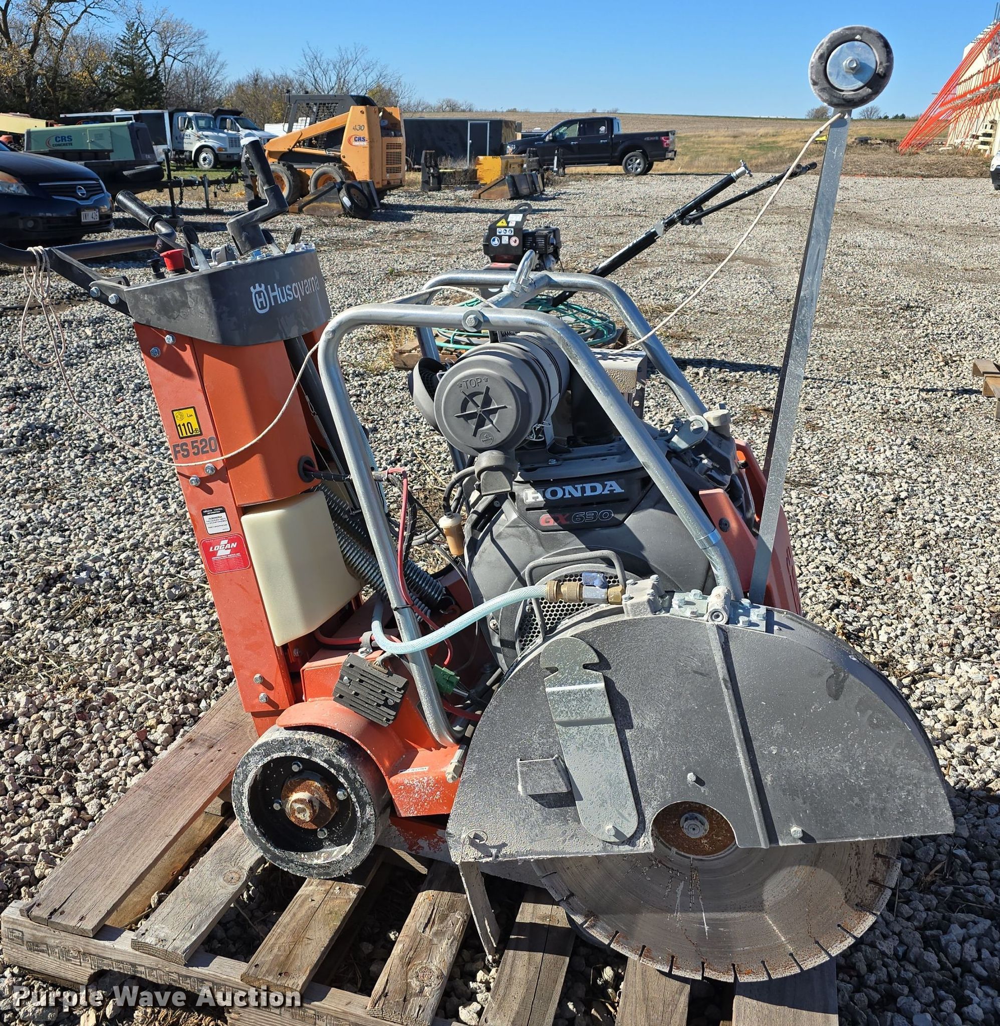 2021 Husqvarna FS520 concrete saw. Hours: 4 on meter, Serial: 20211500001. Engine Honda GX630, Displacement: 688 cc, Cylinders: 2, Fuel type: Gas, kW: 15.5. Transmission Hydrostatic. Features Blade capacity: 20", Line guide. Notes (3) additional blades. CRS Concrete. Denton, NE 68339