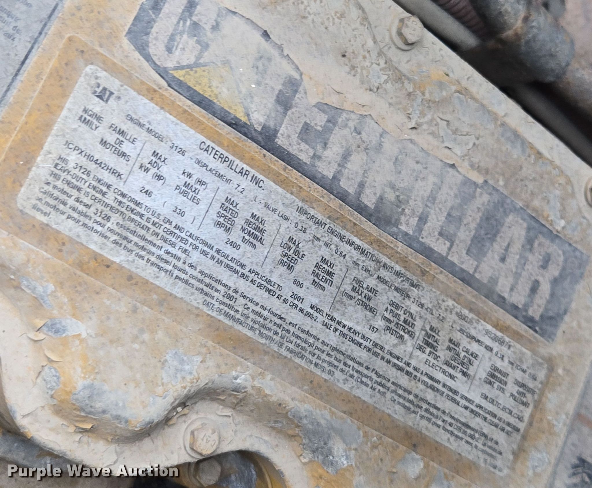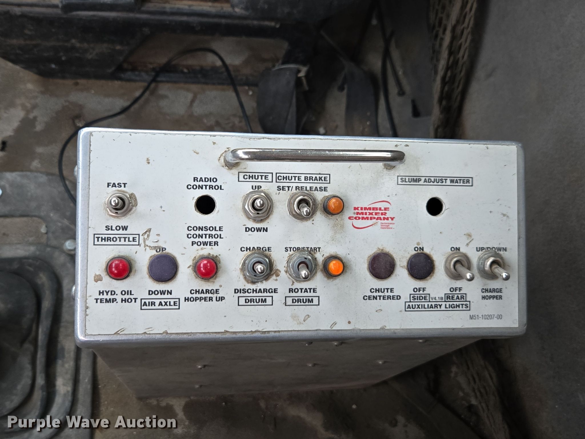 2002 Sterling L8500 ready mix truck. Miles: 214,447 on odometer, Hours: 3,950 on meter, Miles or hours may vary, unit still in use, VIN: 2FZHAWK82AJ62505. Engine Caterpillar 3126, Displacement: 7.2L, Cylinders: 6, Fuel type: Diesel. Transmission Eaton Fuller Roadranger RTO-9, Manual, Speed: 11. Chassis Axles: Tandem, Differential lock: Inter-axle, Suspension: Spring over walking beam, Brakes: Air, Front mount PTO, GVWR: 58,000 lbs. Interior AC, Heat, Heated mirrors, Cruise control. Features Mixer Kimble, Capacity: 9 cu.yd., Discharge: Rear, In-cab controls, Rear drum controls, Water tank capacity: 125 gallons, Chute Extensions: 3, Chute type: Steel.. Tires Front: 425/65R22.5, Rear: 11R22.5. Illinois title. Title distribution may be delayed up to 14 days from verification of funds. All American Ready Mix. Springfield, IL 62702