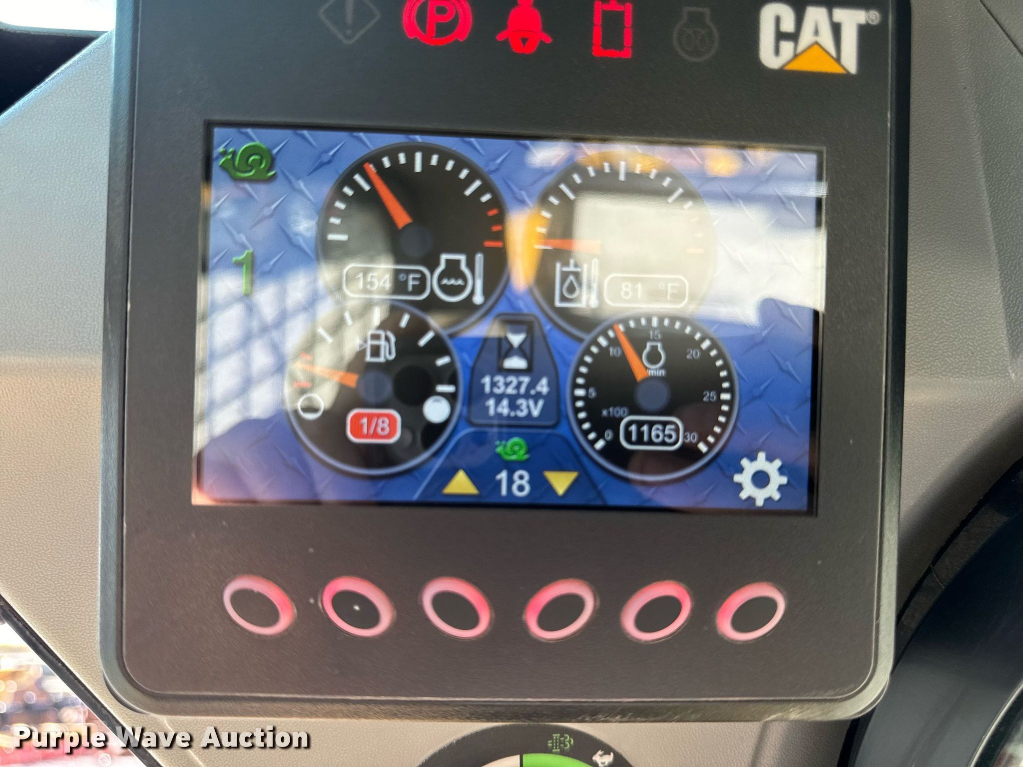 2021 Caterpillar 259D3 tracked skid steer loader. Hours: 1,327 on meter, Serial: CAT0259DVCW913232, Unit #: US00915. Engine Caterpillar C3.3B, Serial: 8ME8122, Displacement: 3.3L, Cylinders: 4, Fuel type: Diesel, HP: 75. Transmission Hydrostatic, Two speed travel. Operators station Enclosed cab, AC, Heat, Backup camera, Bucket control: Hand, Electronic Monitoring System panel. Features Auxiliary hydraulics, Auxiliary electrical outlet, Quick coupler: Hydraulic, Bucket Caterpillar 279-5376, Width: 80", Cutting edge: Bolt-on. Tracks Brand: Caterpillar, Width: 13". Caterpillar Dealer Equipment. Cedar Rapids, IA 52404
