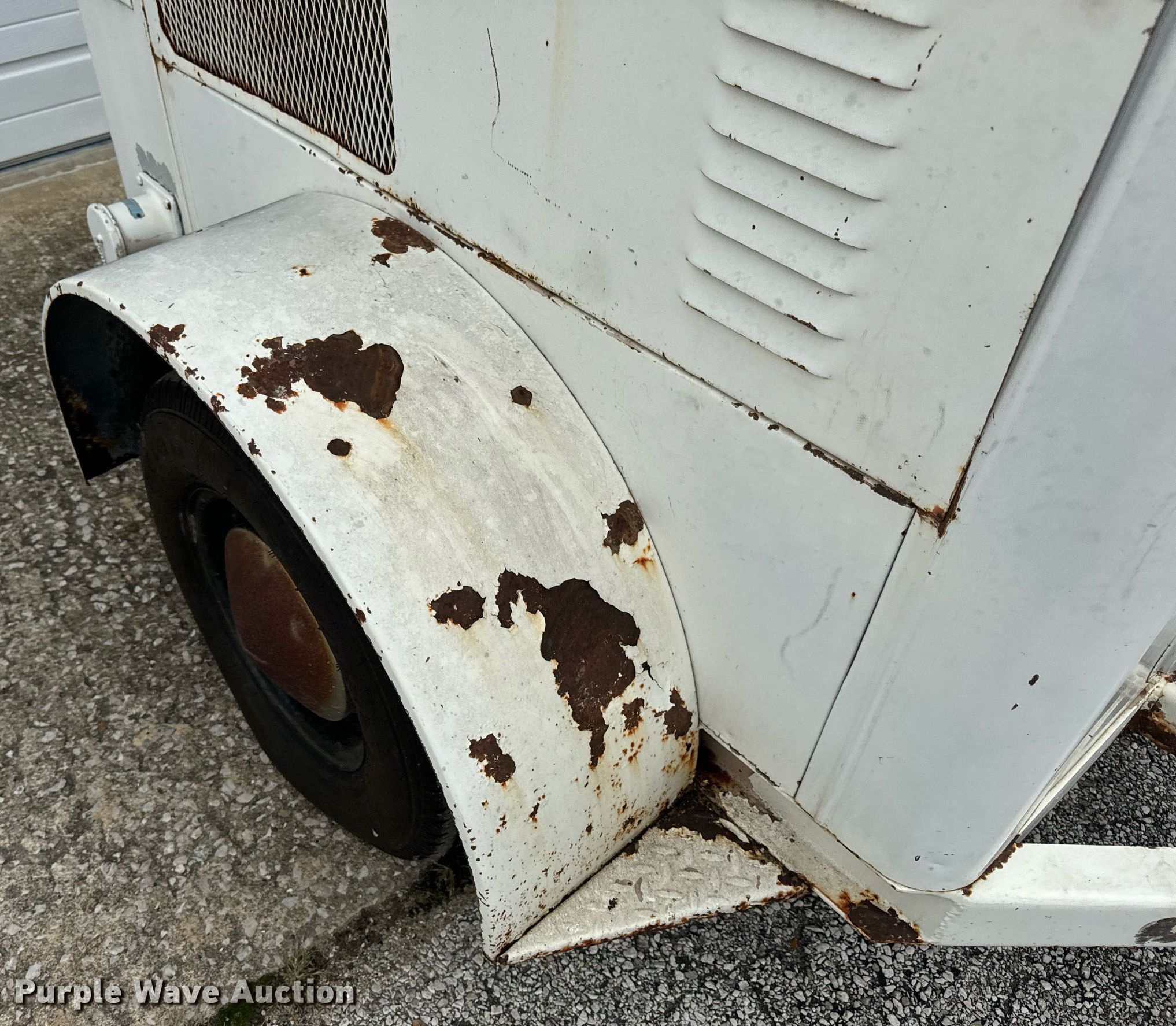 Katolight generator. Hours: 126 on meter, Serial: 60855-I, Unit #: X03935. Engine Wisconsin, Serial: 4169060, Cylinders: 4, Fuel type: Gas. Features Generator Katolight SR20MGW4E, Watts: 1,000, kVA: 20, kW: 20, Phase: Three, Electric start, Fuel tank. Trailer 7.1' L x 60" W, Axles: Single, Hitch: Pintle. Tires Tire size: ST205/75R14. Notes Engine issues, oil leak. Transfer of ownership documentation will be a bill of sale. Brightspeed. Perry, MO 63462
