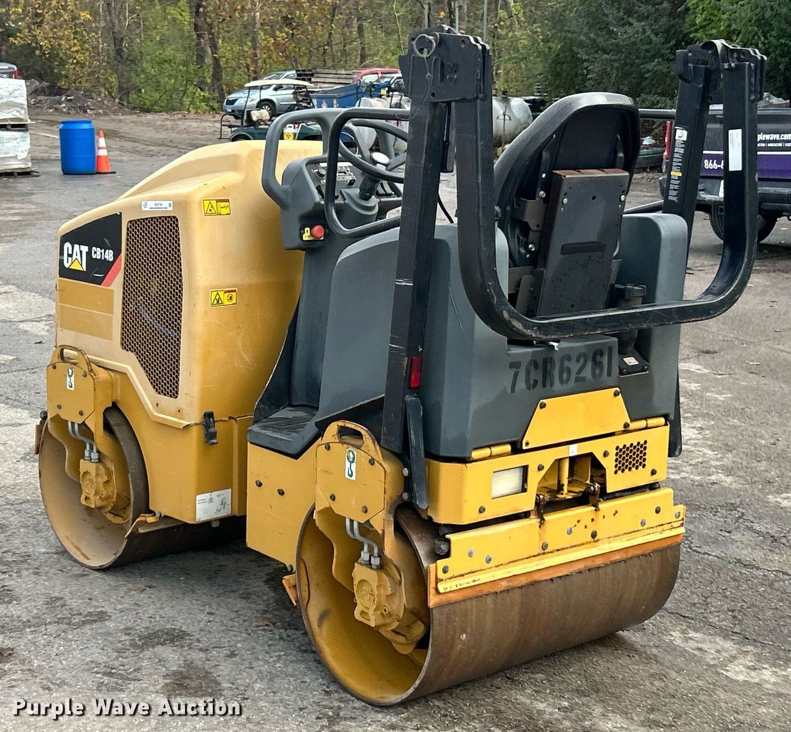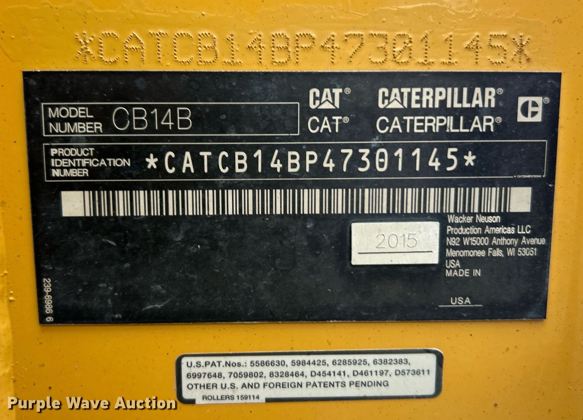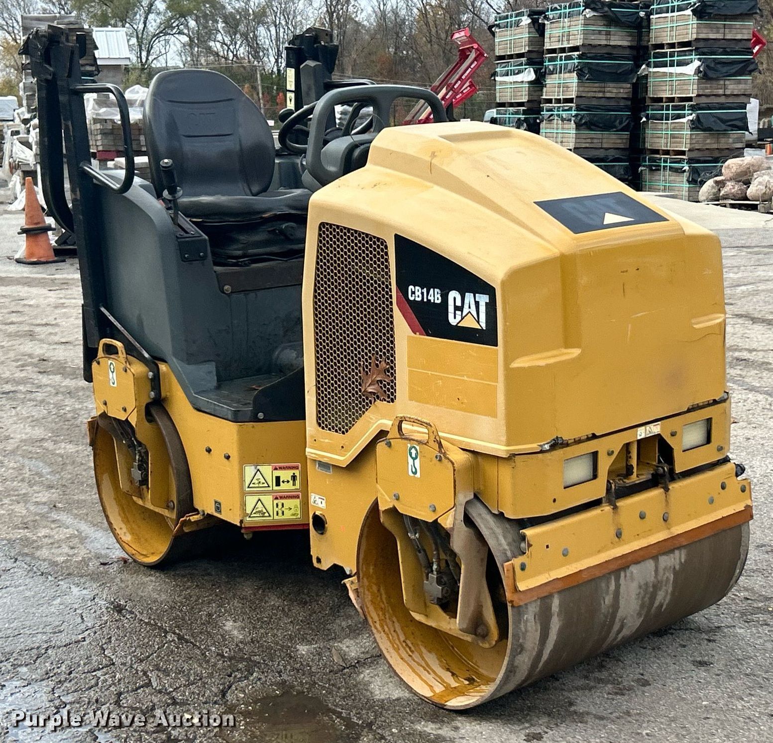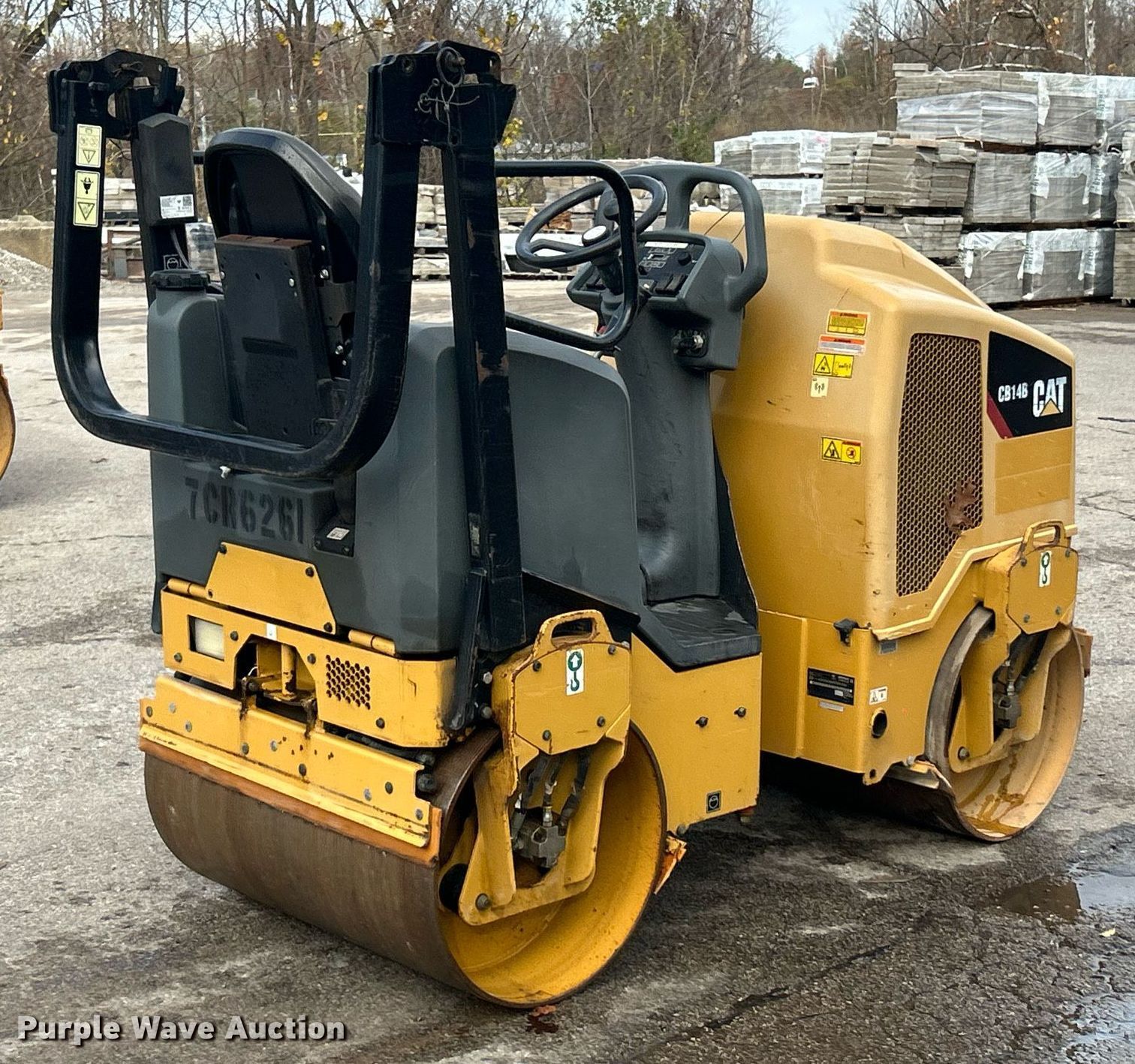 Purple Wave is selling a used Double Drum Roller Compactor in Illinois. This item is a 2016 Caterpillar CB14B double drum vibratory roller with the following: Hours: 927 on meter, Serial: CATCB14BP47301145