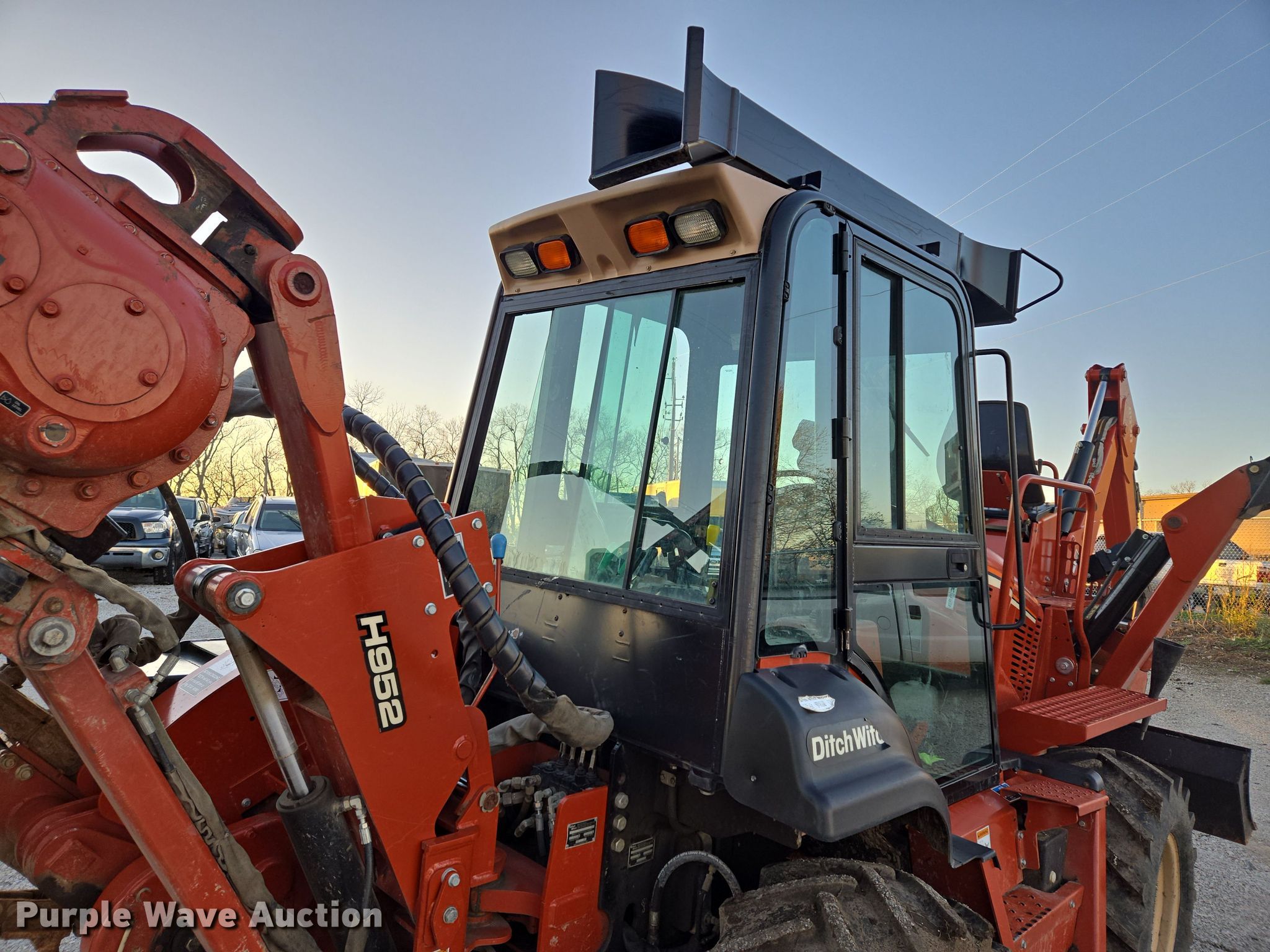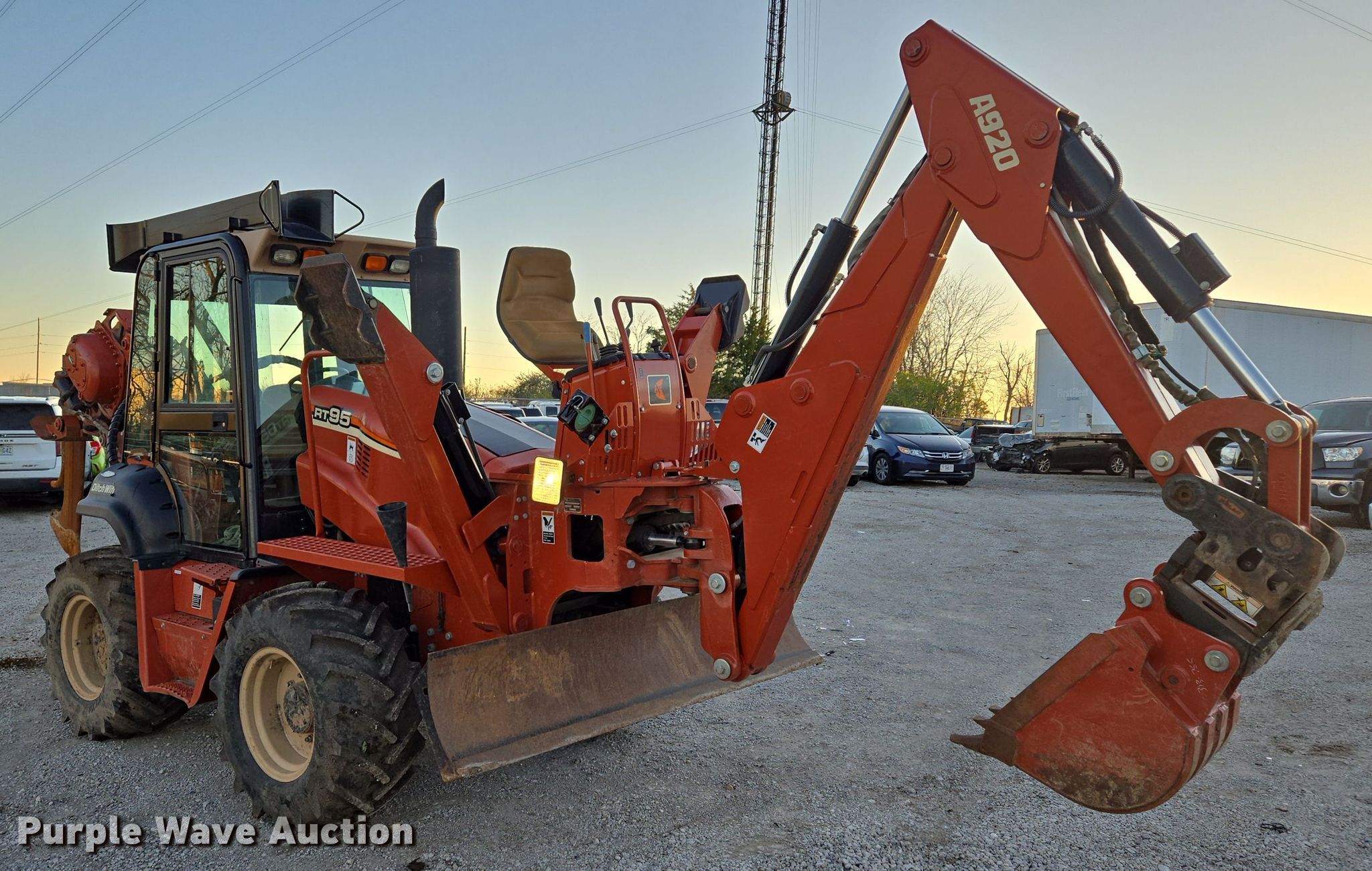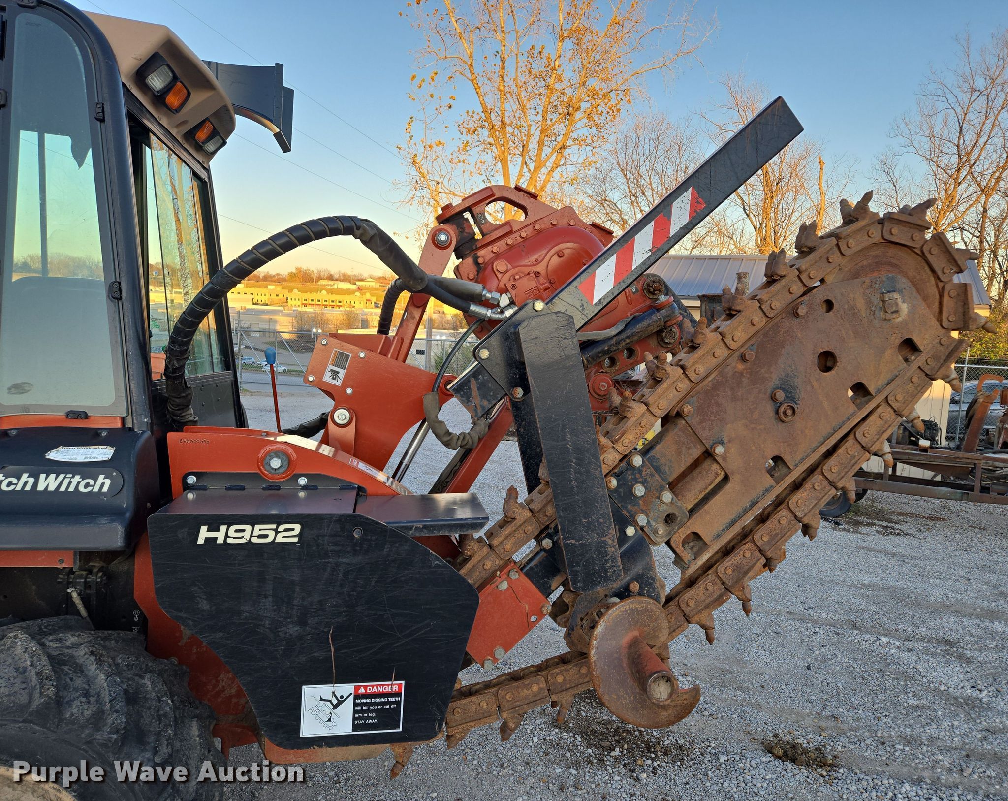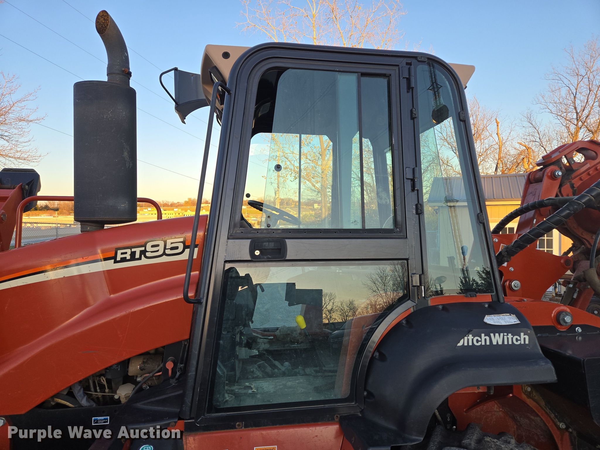 2006 Ditch Witch RT95 cable plow. Hours: 888 on meter, Serial: CMWRT95HT60000065. Engine John Deere PowerTech, Displacement: 4.5L, Cylinders: 4, Fuel type: Diesel. Transmission Hydrostatic, Two speed travel, Four wheel drive, Differential lock, Four wheel steer. Operators station Enclosed cab, AC, Heat. Features Combination unit, Trencher Model: H952, Serial: E60000059, Wheel diameter: 20", Cutting width: 8", Teeth: Rock, Crumber, Vibratory plow Model: H952, Serial: CMWH952XE60000059, Backhoe Model: A920, Serial: CMWA920XJ60000055, Bucket width: 18", Backfill blade Width: 80". Tires Size: 38x18.00-20. Notes Missing floor panel in cab. Lucky's Tow Service LLC. Liberty, MO 64068