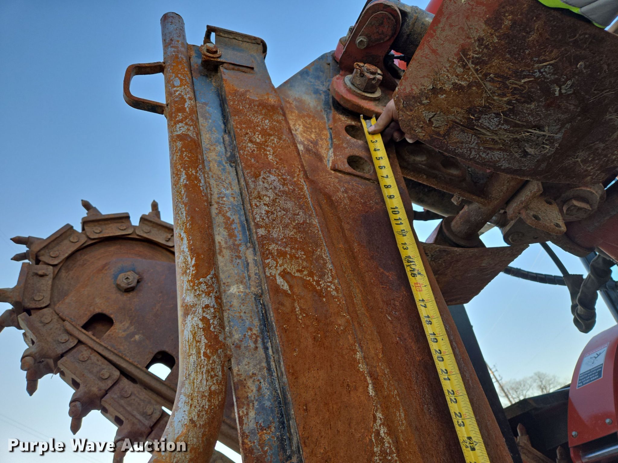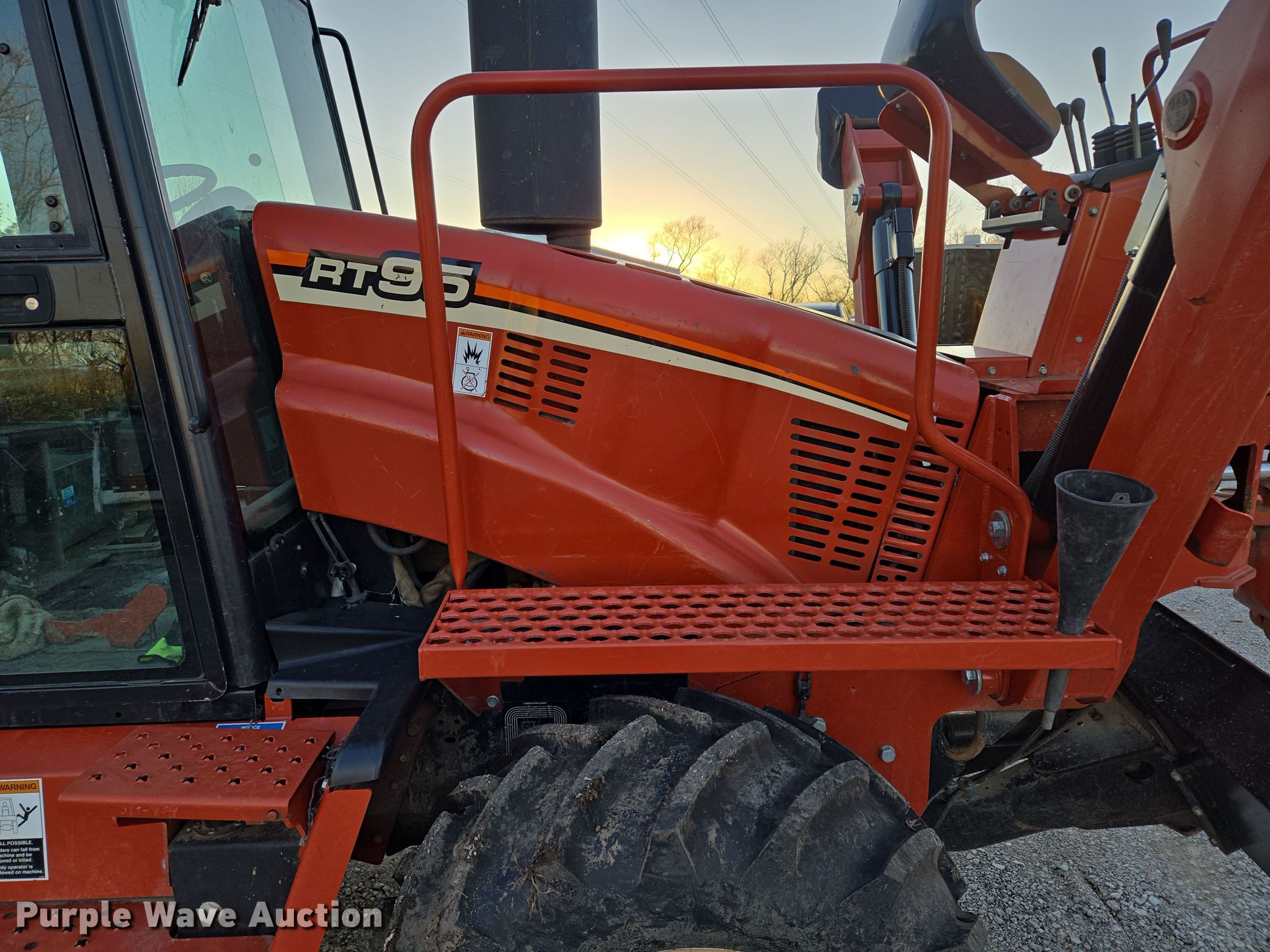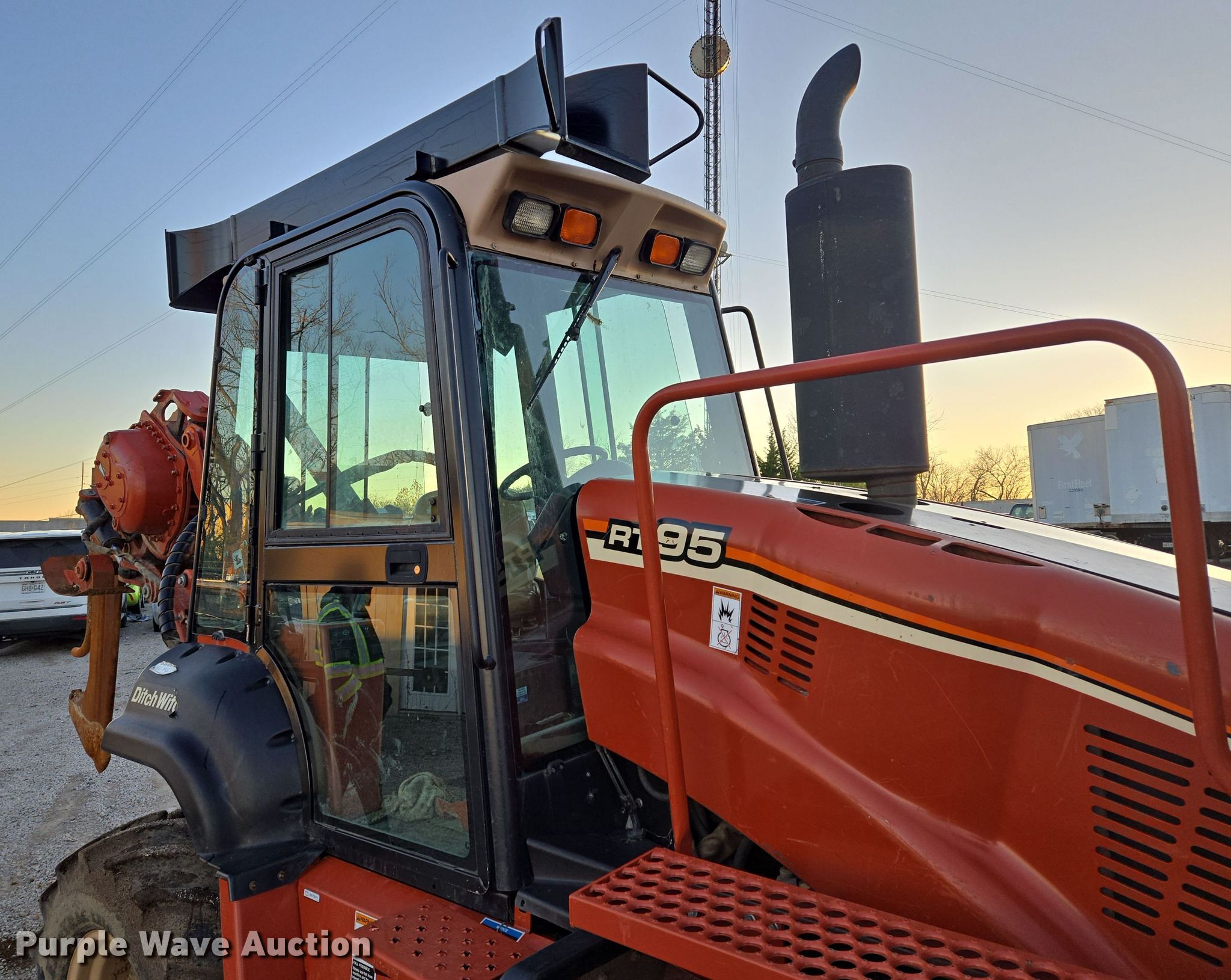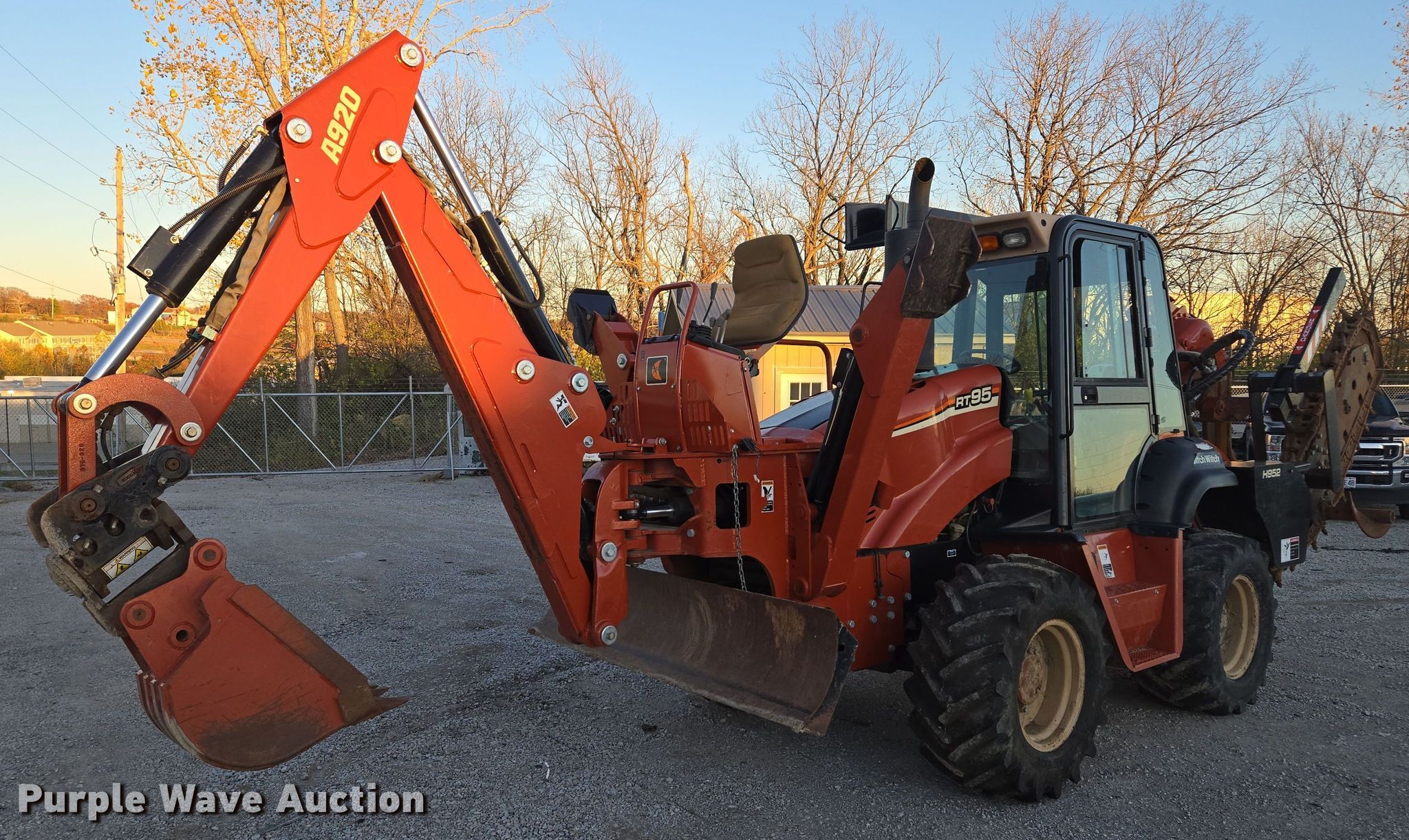 2006 Ditch Witch RT95 cable plow. Hours: 888 on meter, Serial: CMWRT95HT60000065. Engine John Deere PowerTech, Displacement: 4.5L, Cylinders: 4, Fuel type: Diesel. Transmission Hydrostatic, Two speed travel, Four wheel drive, Differential lock, Four wheel steer. Operators station Enclosed cab, AC, Heat. Features Combination unit, Trencher Model: H952, Serial: E60000059, Wheel diameter: 20", Cutting width: 8", Teeth: Rock, Crumber, Vibratory plow Model: H952, Serial: CMWH952XE60000059, Backhoe Model: A920, Serial: CMWA920XJ60000055, Bucket width: 18", Backfill blade Width: 80". Tires Size: 38x18.00-20. Notes Missing floor panel in cab. Lucky's Tow Service LLC. Liberty, MO 64068